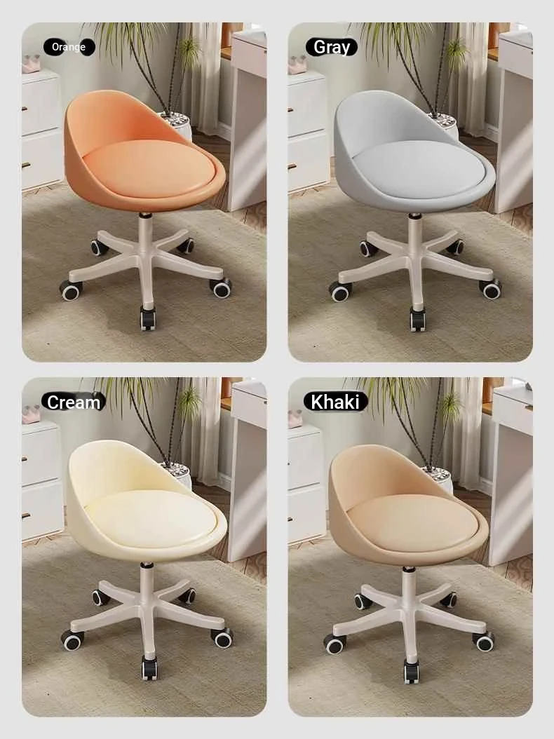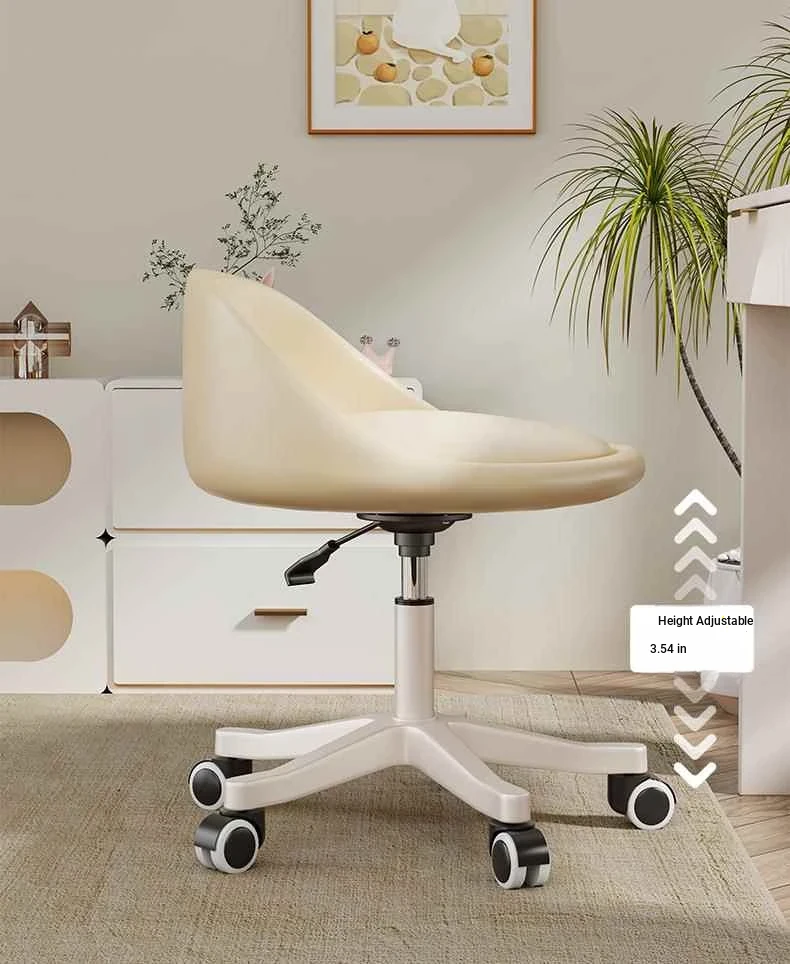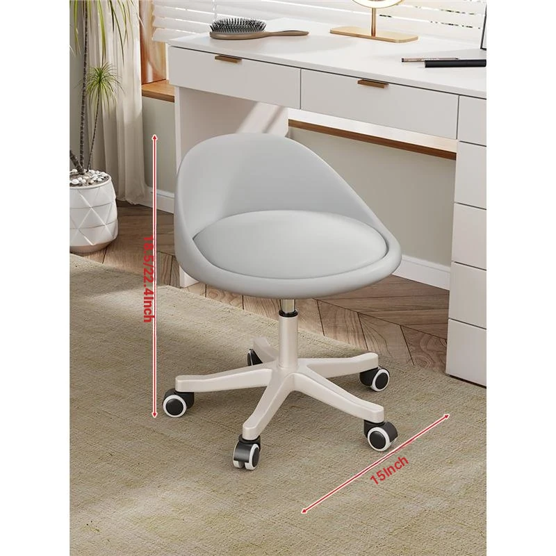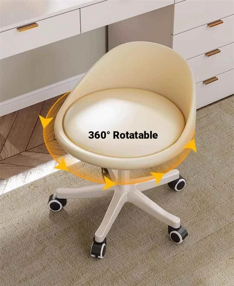 Elegant Vanity Stool for Home Use - Stylish Makeup Chair with Creamy Aesthetic, Perfect for Beauty and Nail Treatments. Features Smooth-Gliding Wheels for Easy Mobility in Your Bedroom. Ideal for the Trendy Influencer Look!