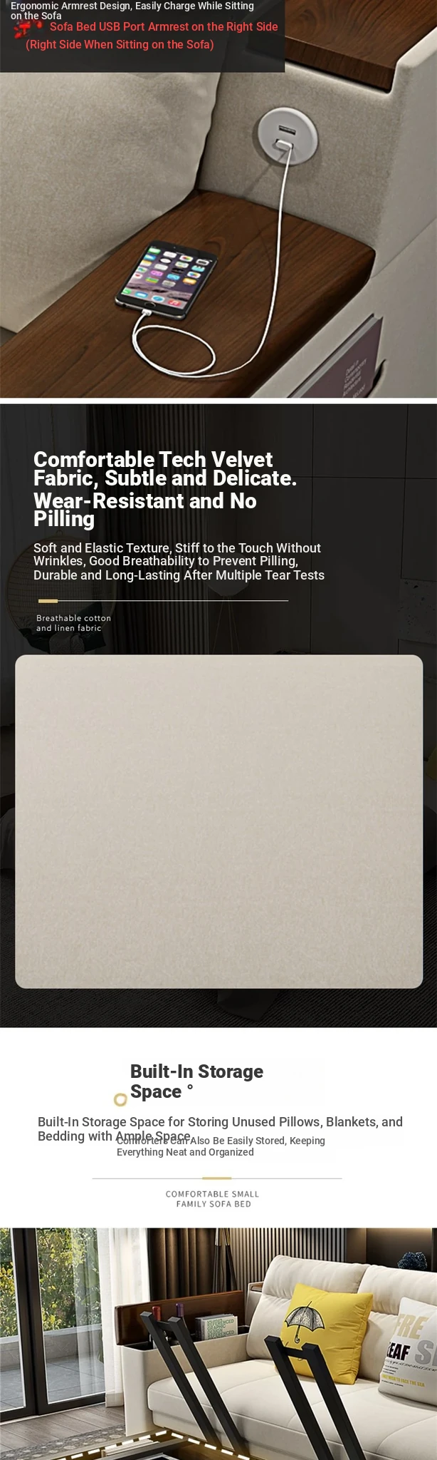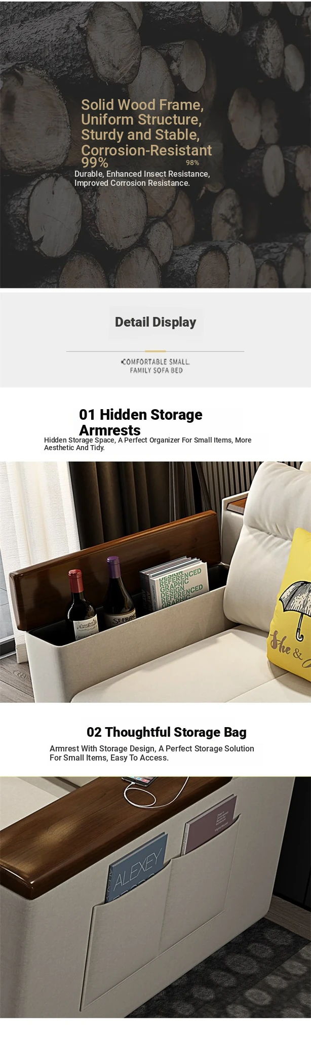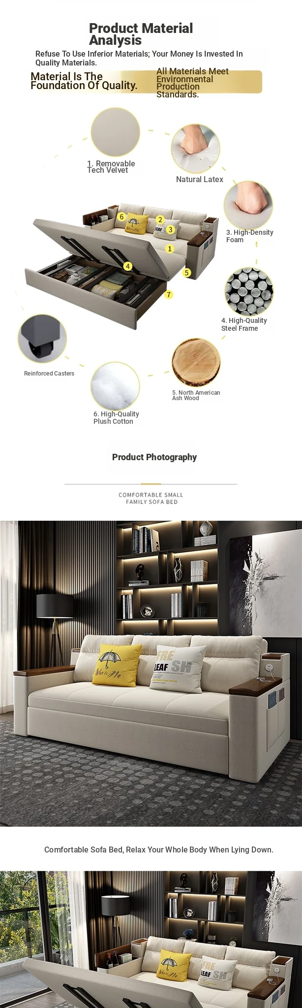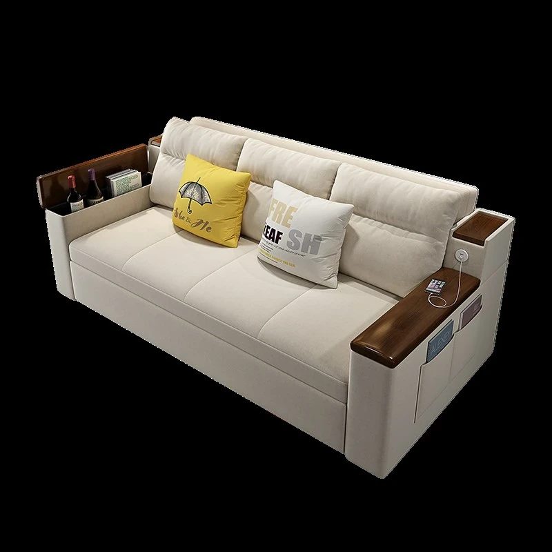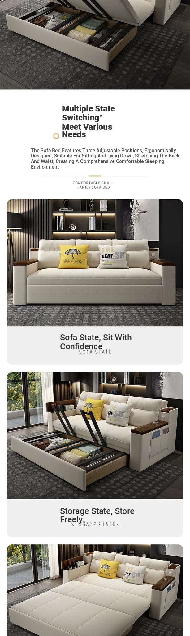 Foldable Solid Wood Sofa Bed with Storage - Multi-functional, Dual-use, Expandable, and Pull-out Design Perfect for Balconies and Small Spaces.