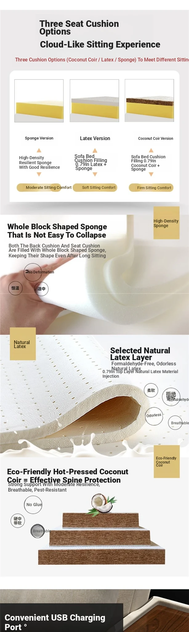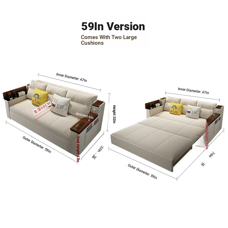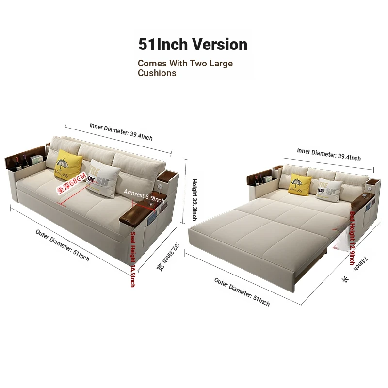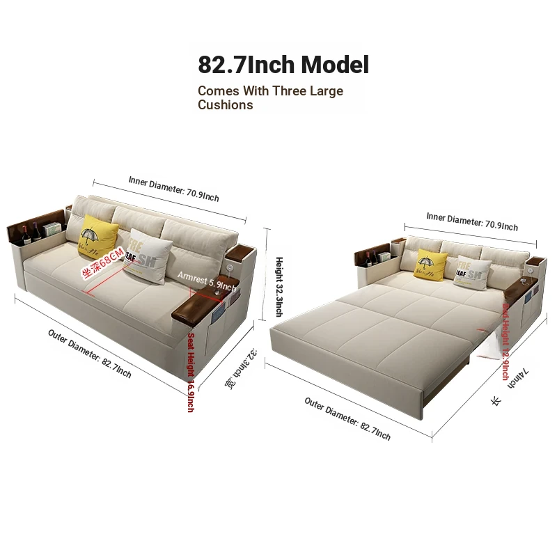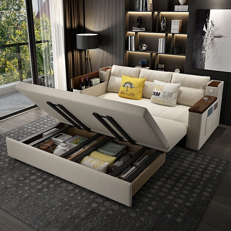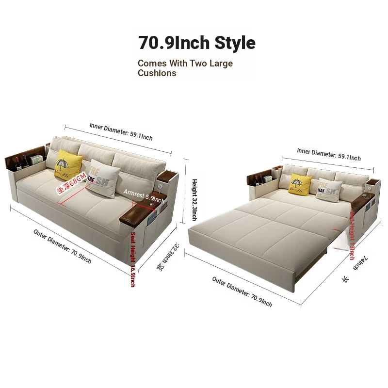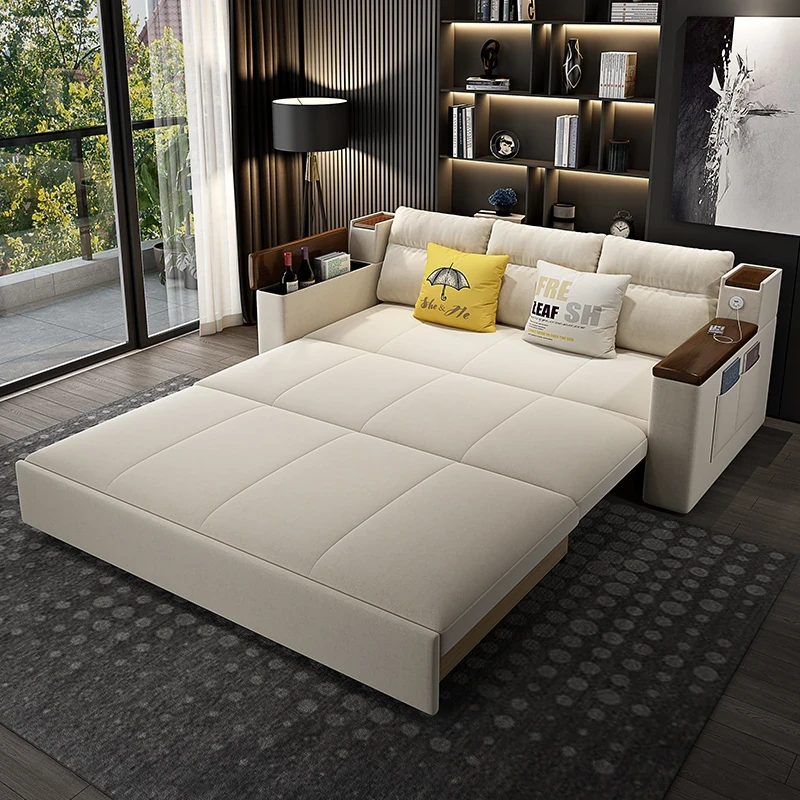 Foldable Solid Wood Sofa Bed with Storage - Multi-functional, Dual-use, Expandable, and Pull-out Design Perfect for Balconies and Small Spaces.
