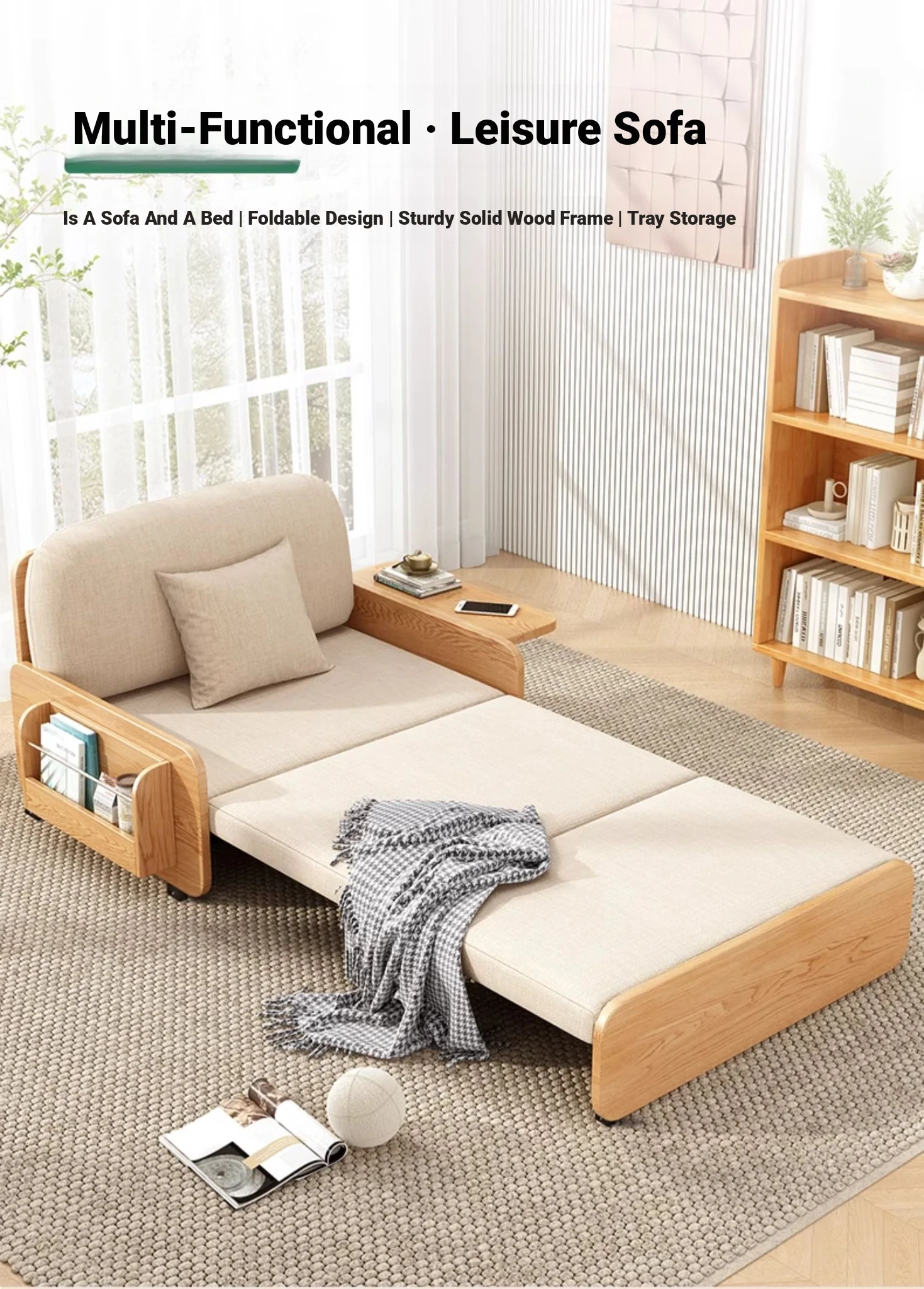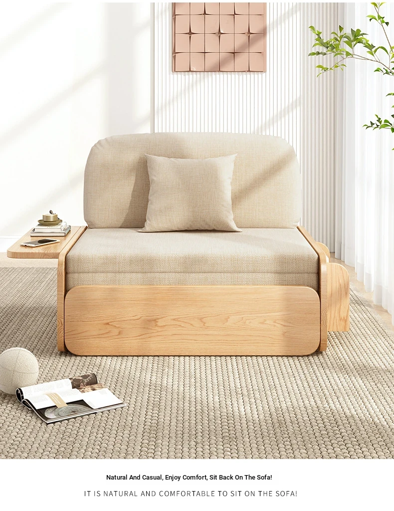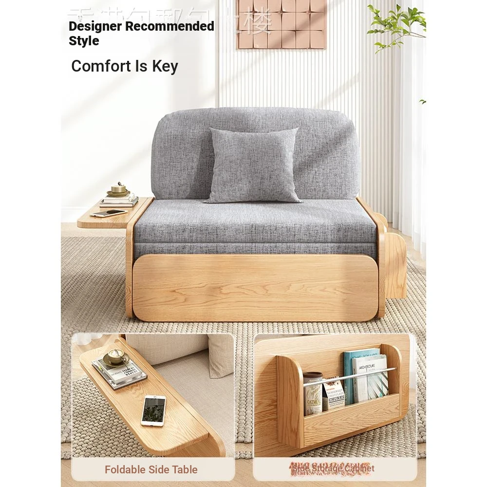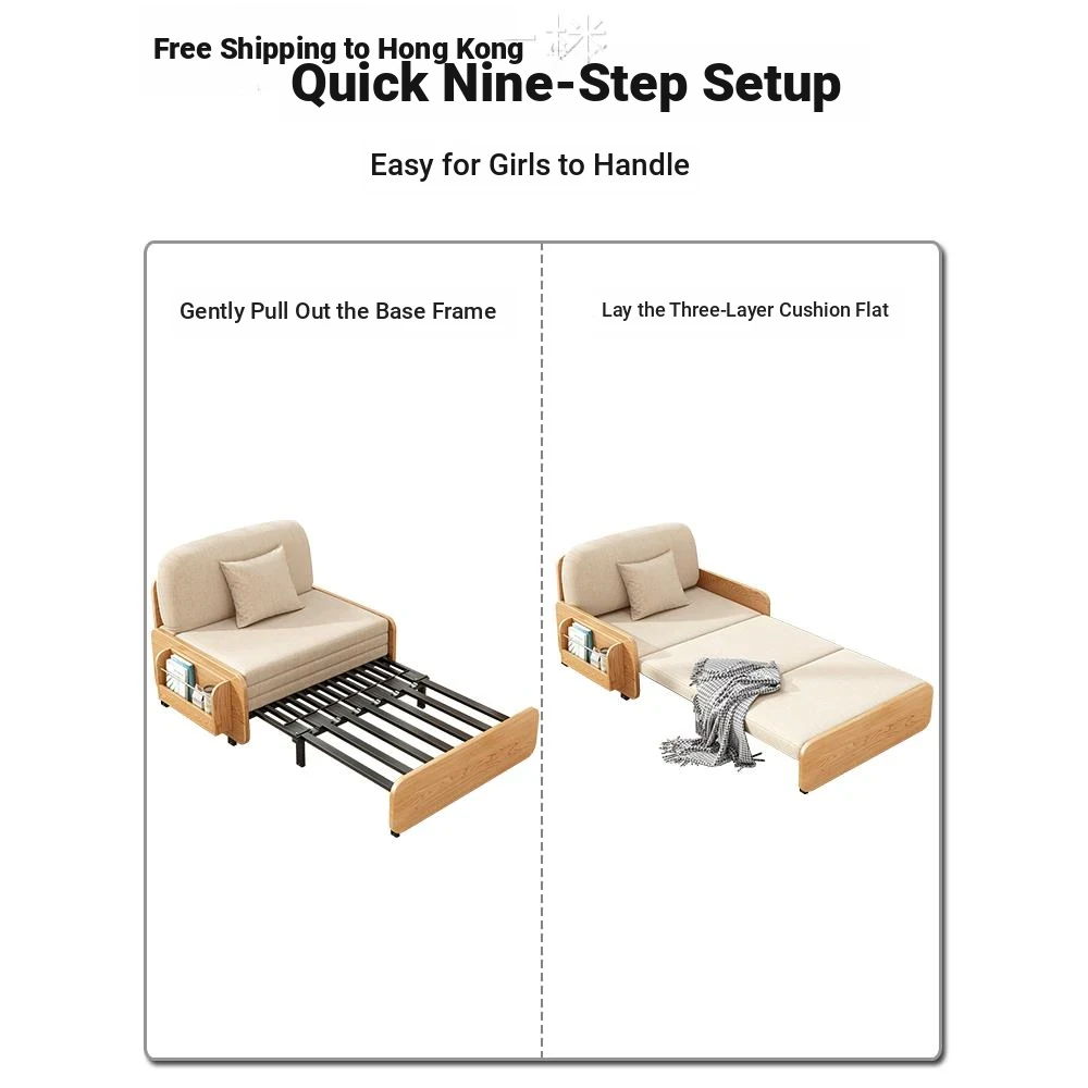 【Free Shipping in Hong Kong】Stylish Solid Wood Sofa Bed - Versatile Folding Design for Small Spaces, Perfect for Living Rooms and Balconies, Trendy Multi-Functional Furniture