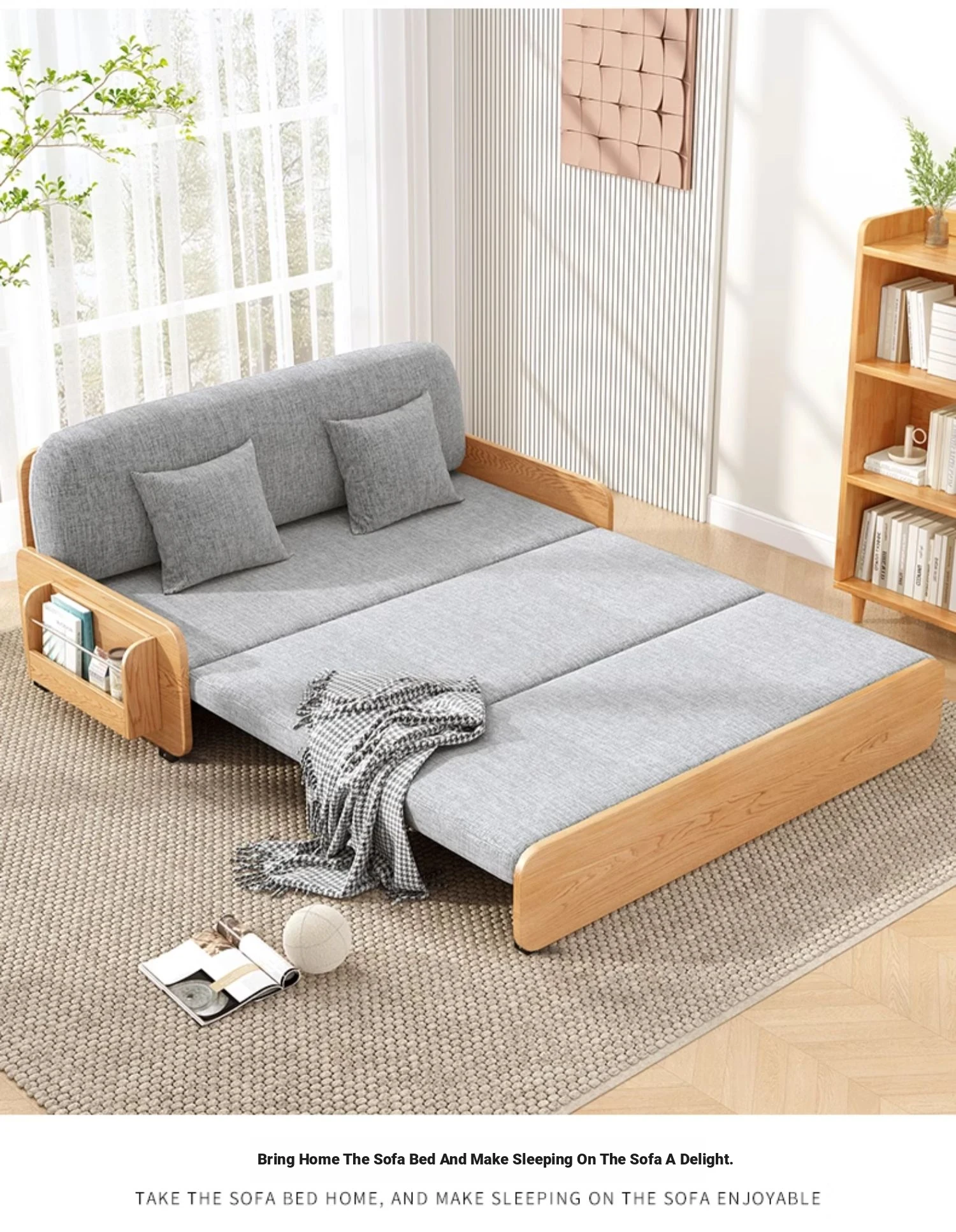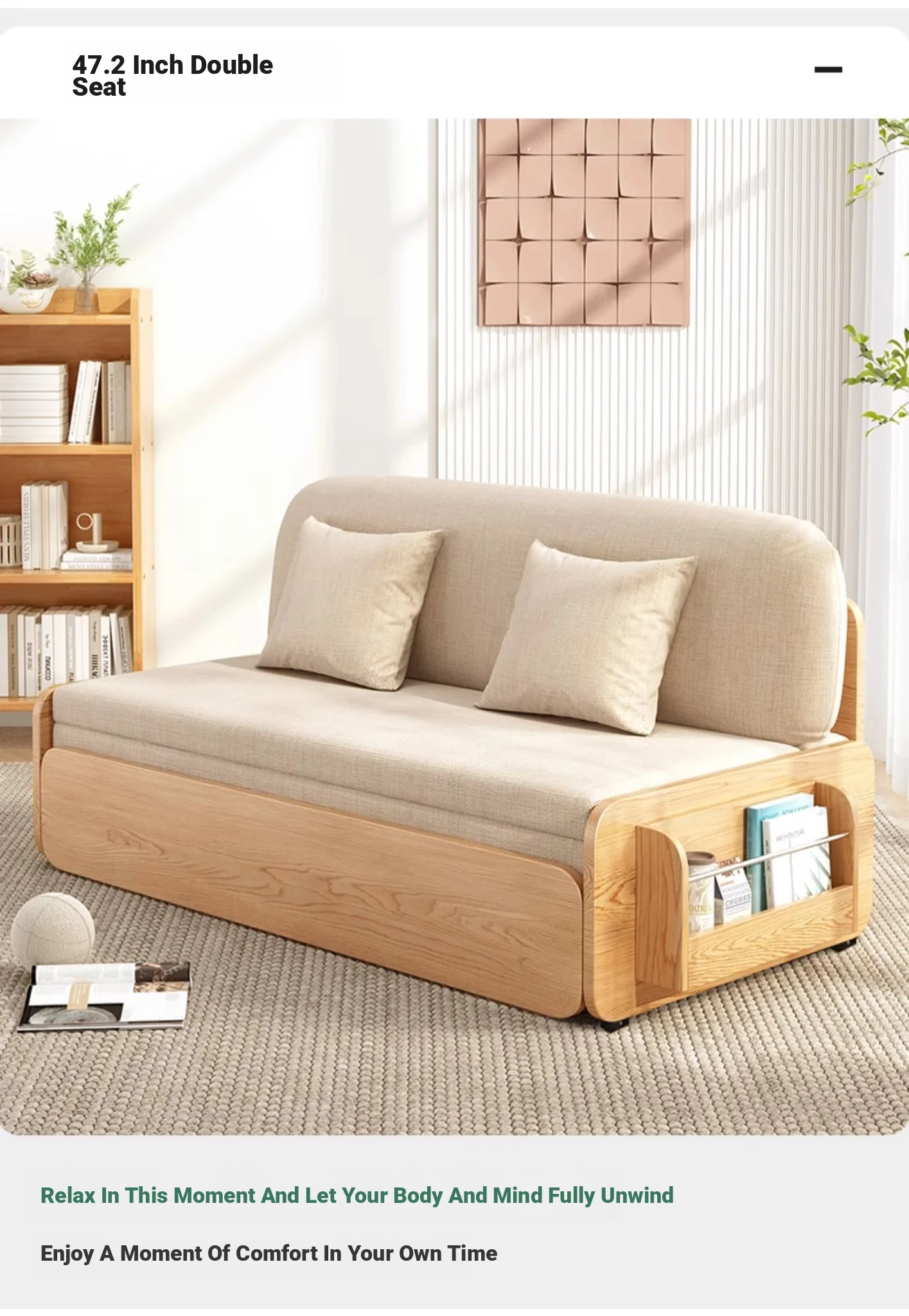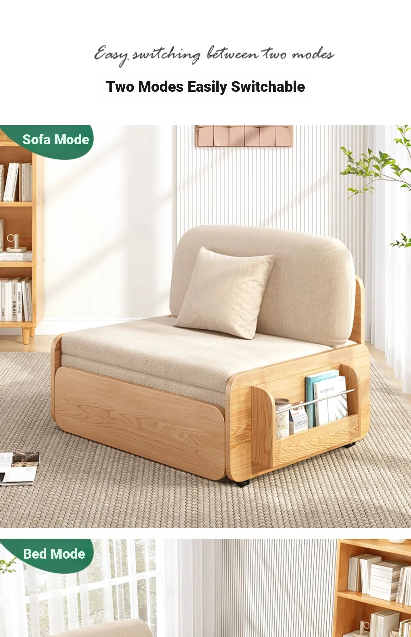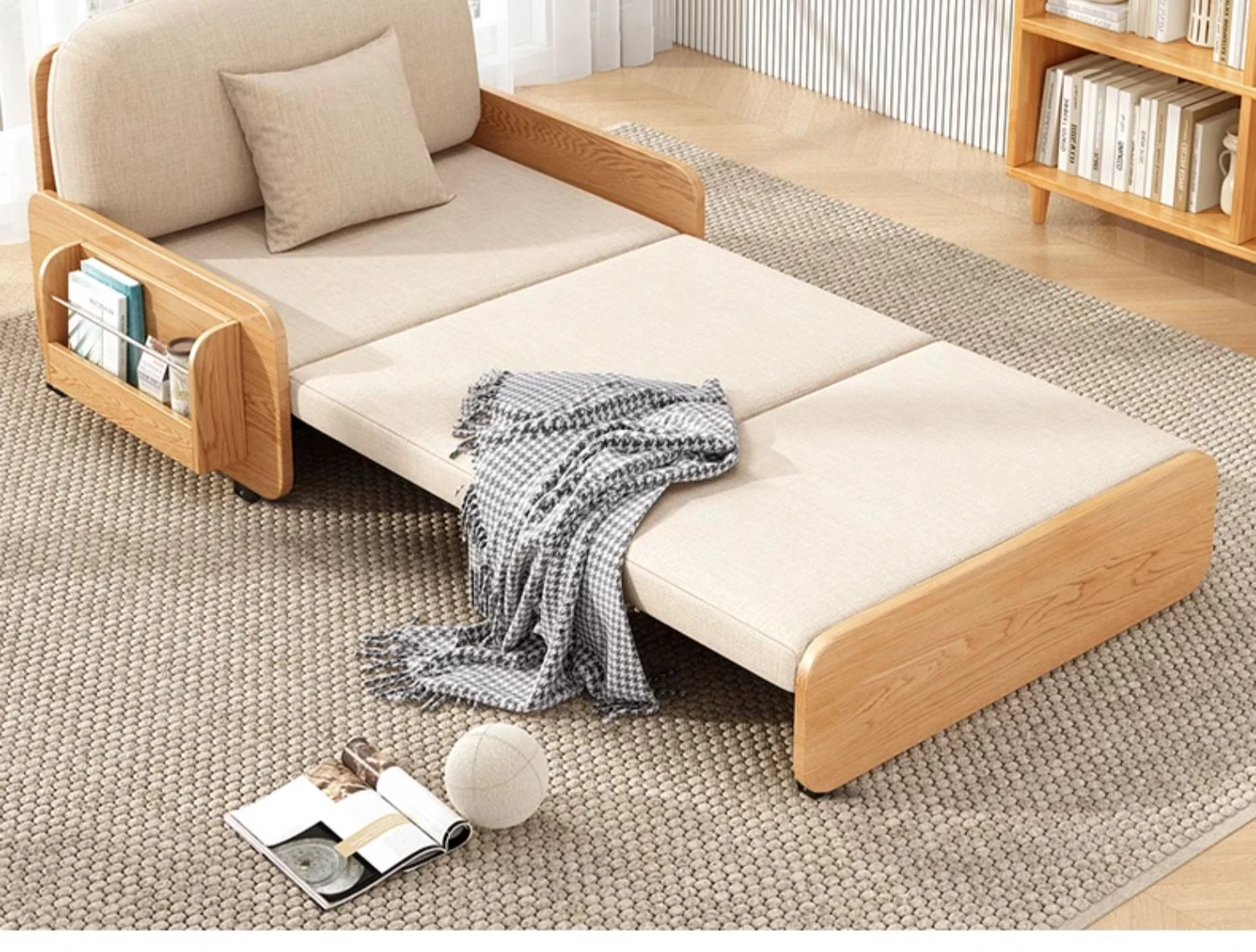 【Free Shipping in Hong Kong】Stylish Solid Wood Sofa Bed - Versatile Folding Design for Small Spaces, Perfect for Living Rooms and Balconies, Trendy Multi-Functional Furniture
