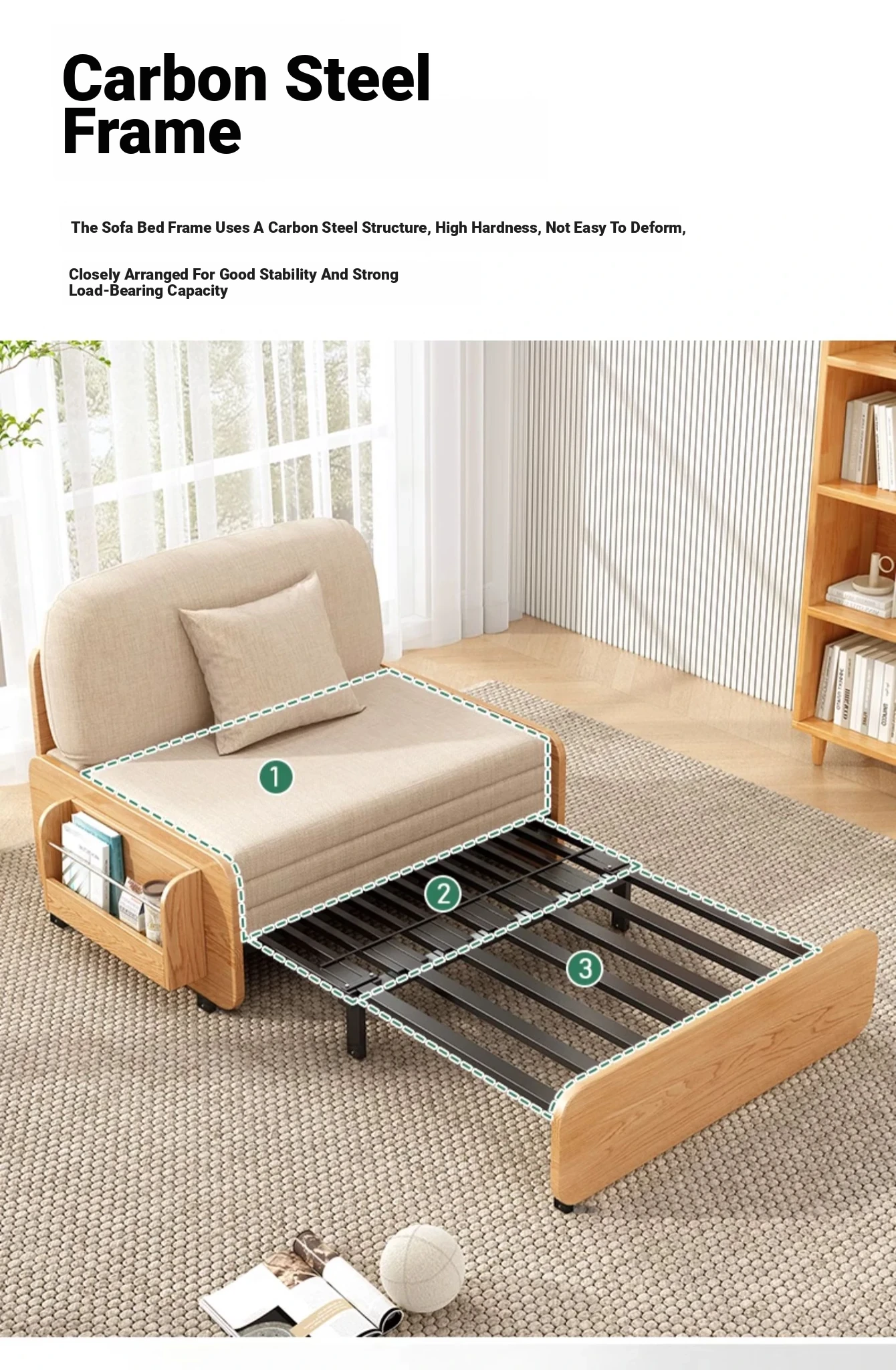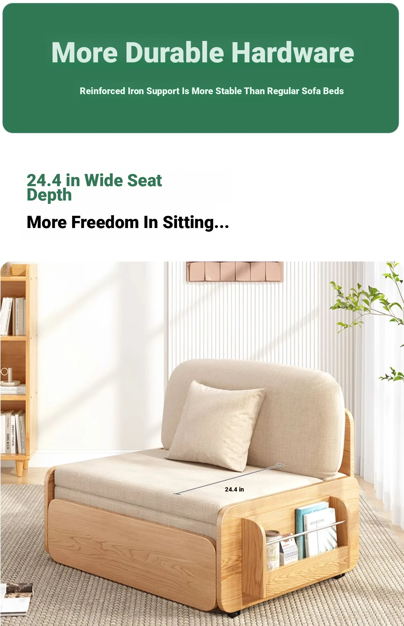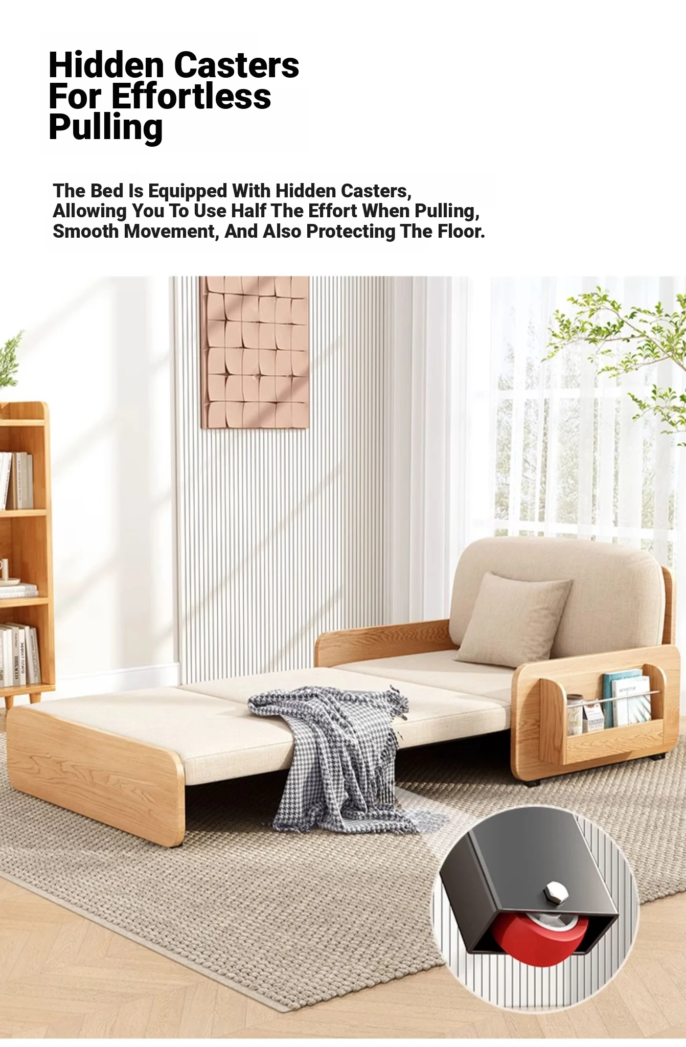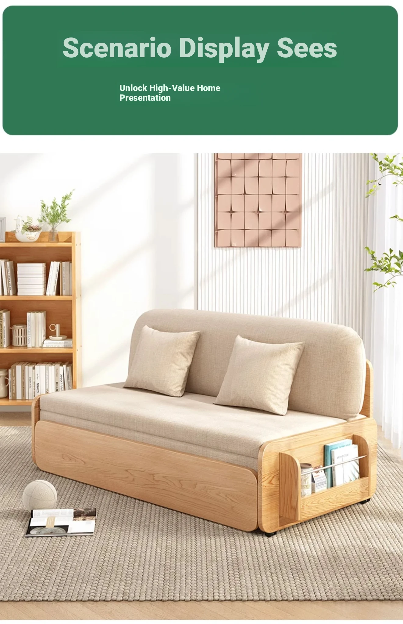 【Free Shipping in Hong Kong】Stylish Solid Wood Sofa Bed - Versatile Folding Design for Small Spaces, Perfect for Living Rooms and Balconies, Trendy Multi-Functional Furniture