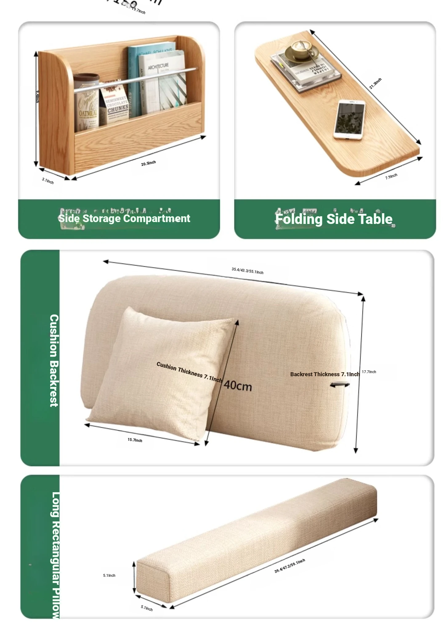 Solid Wood 39.37 in 1.97in sponge +0.79in latex to send matching pillow