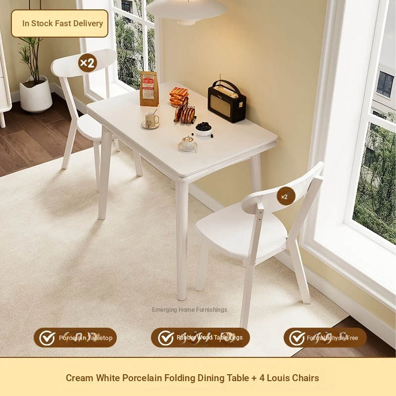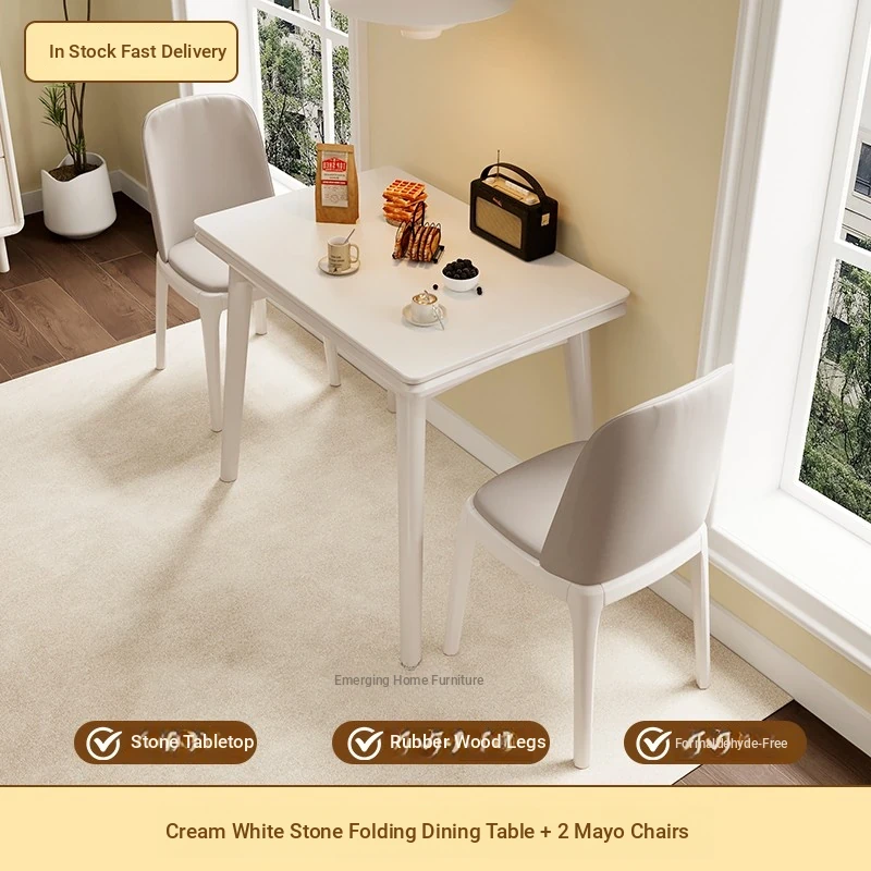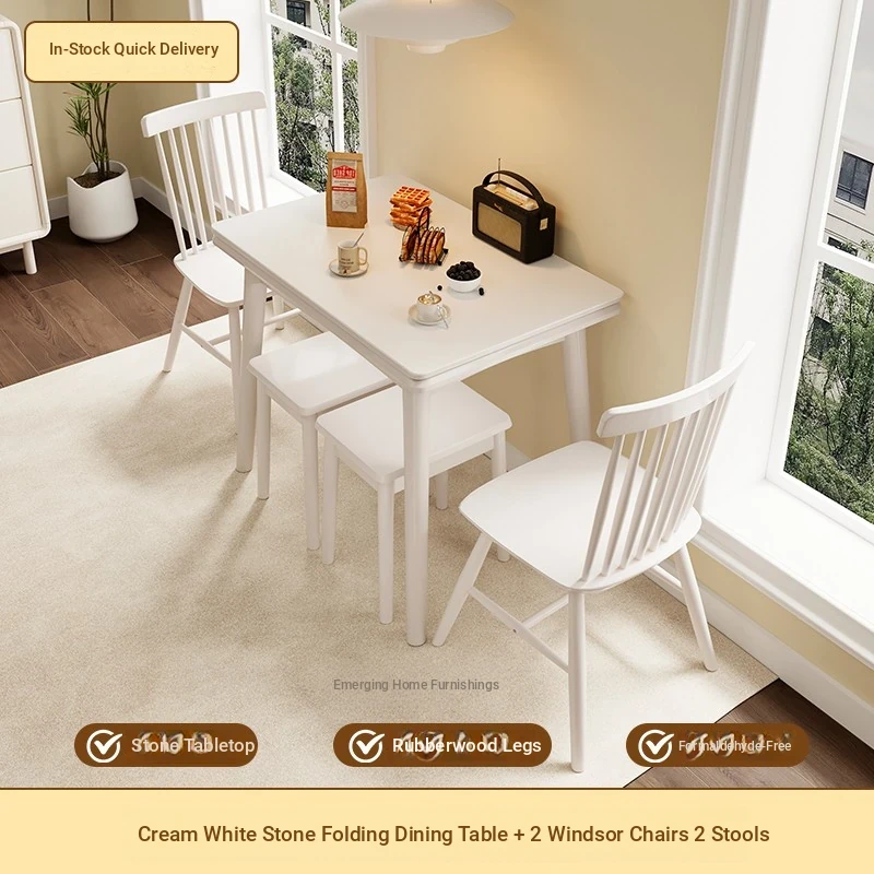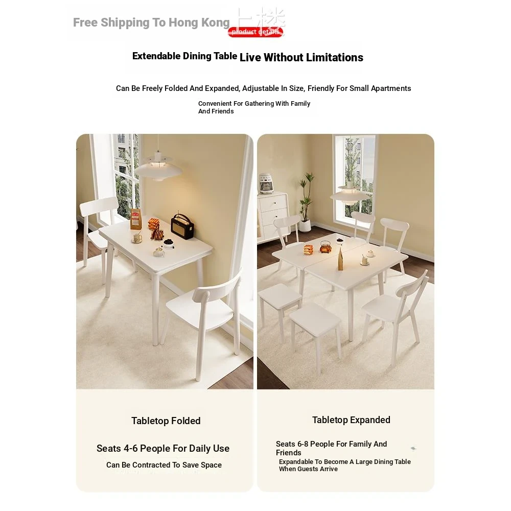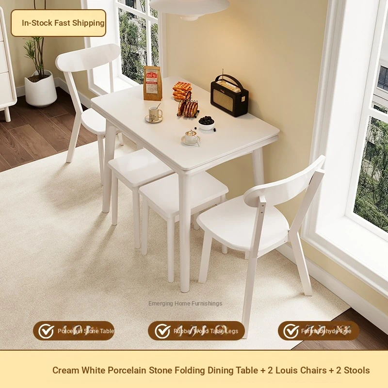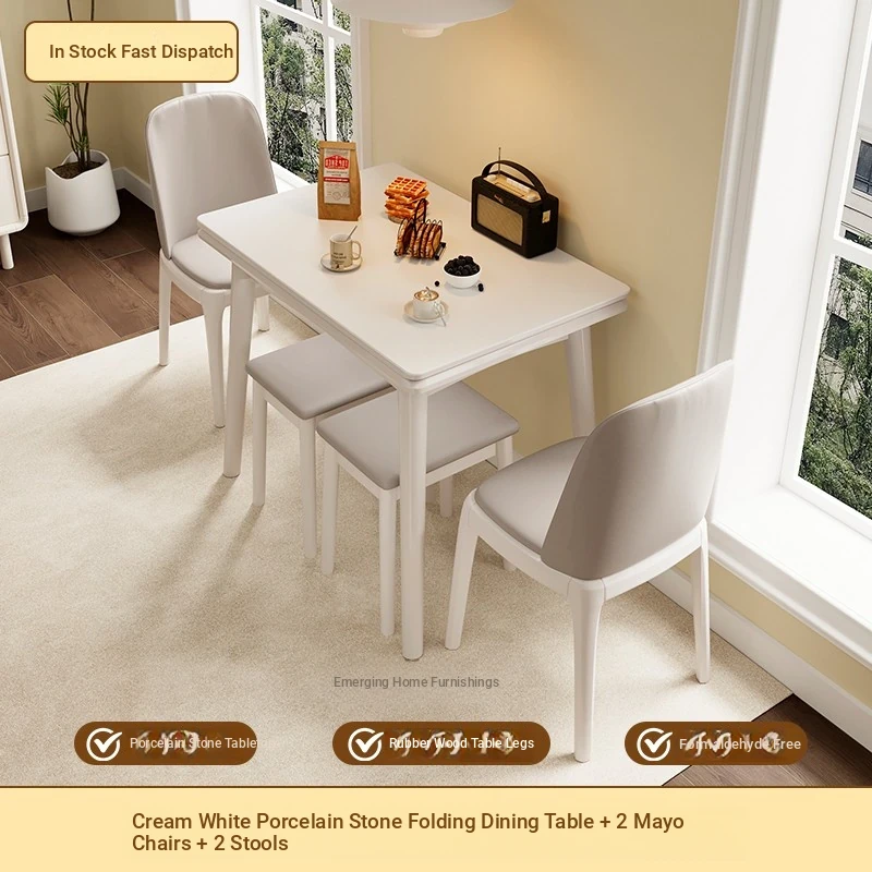 【Free Shipping to Hong Kong】Modern Minimalist Rock Plate Dining Table for Small Spaces - Scandinavian Style Foldable and Expandable Dining Table Set with Chairs