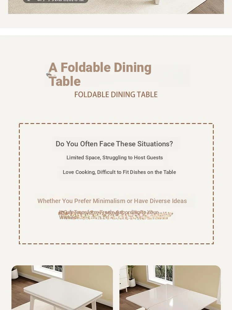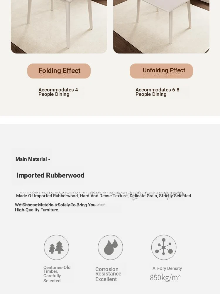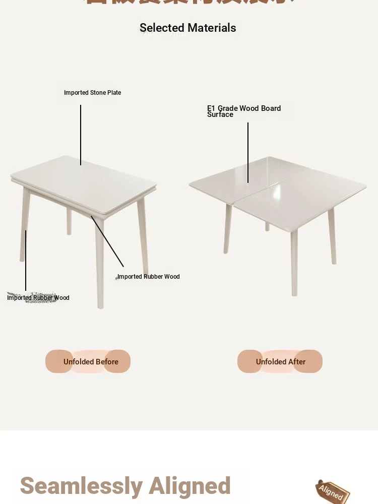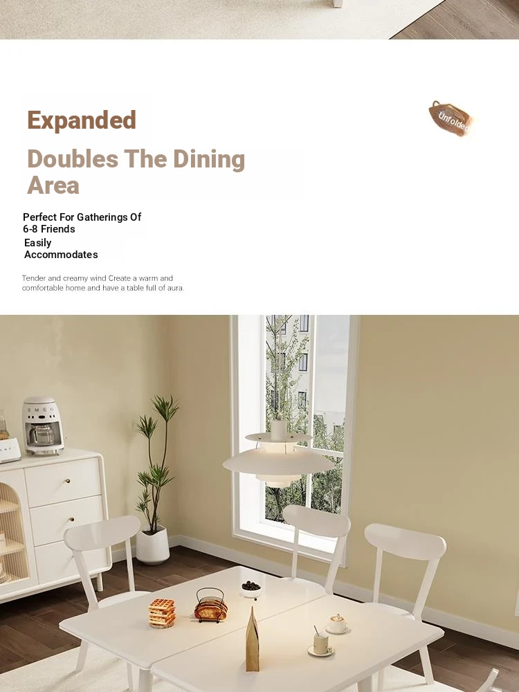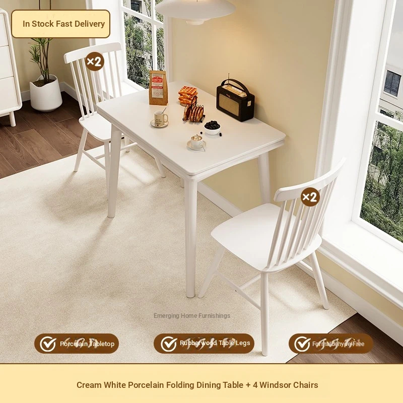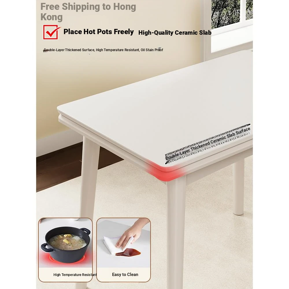 【Free Shipping to Hong Kong】Modern Minimalist Rock Plate Dining Table for Small Spaces - Scandinavian Style Foldable and Expandable Dining Table Set with Chairs