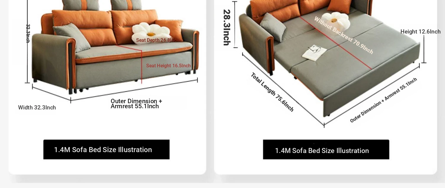 【Free Shipping to Hong Kong】Versatile Folding Sofa Bed with Tech Fabric - Trendy Space-Saving Solution for Small Living Rooms, Perfect for Modern Homes!
