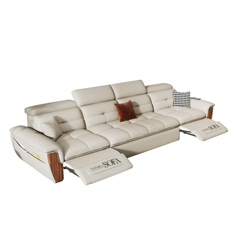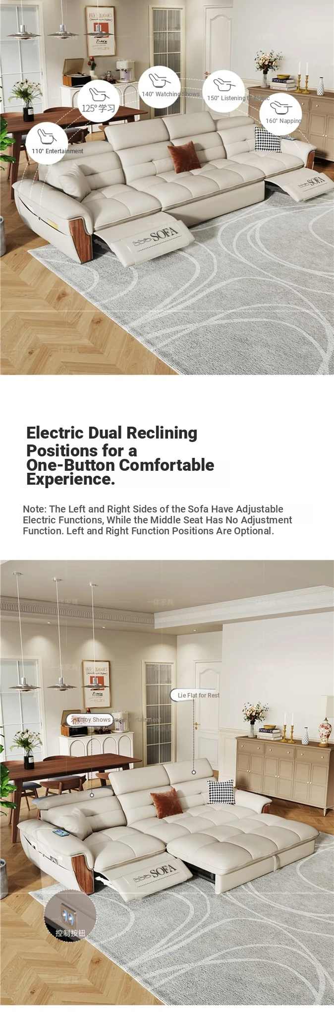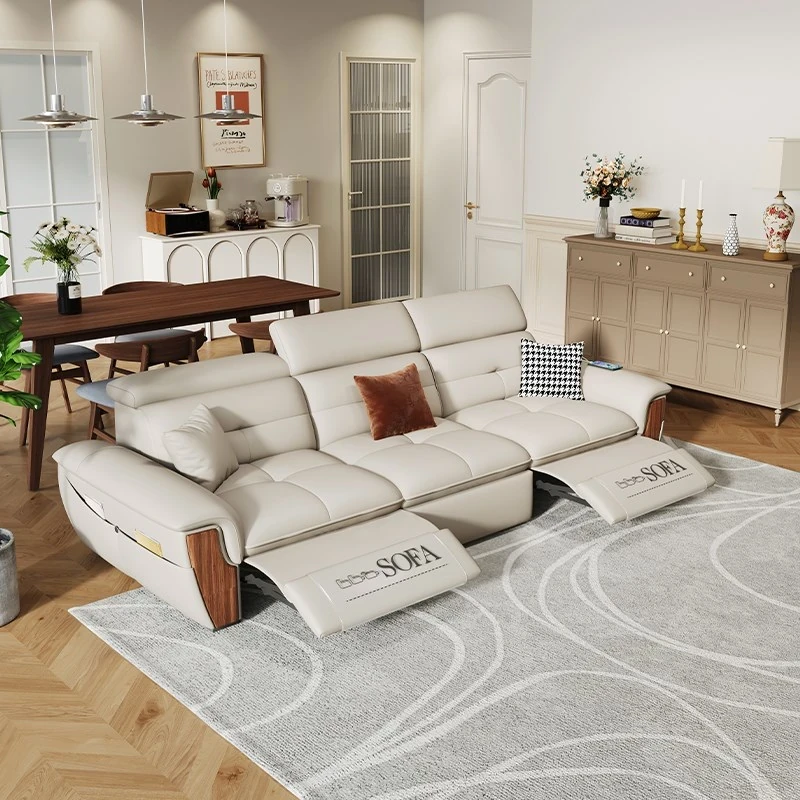 Genuine Leather Electric Reclining Sofa - Adjustable Home Theater Couch for Living Room, Space-Saving Zero Wall Three-Seater with Sleek Design