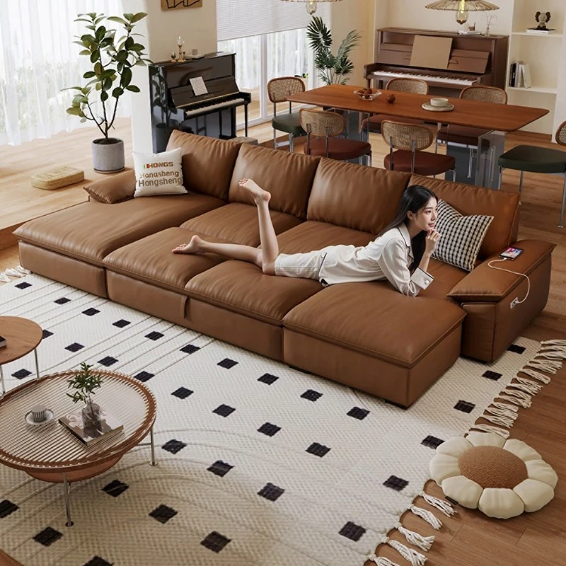 [Flagship Edition, Cloud Sitting Sense] 2.65-meter Single Electric Function + Three-person Position [Small Yellow Cowhide on Contact Surface]]