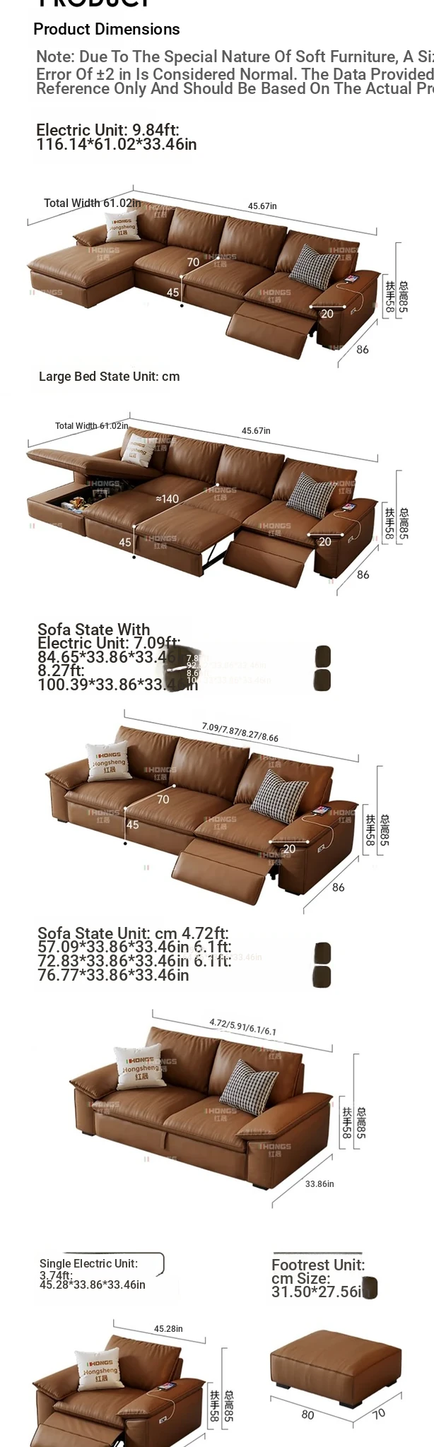 Hongsheng Multifunctional Electric Sofa - Vintage American Style, Space-Saving Sofa Bed for Small Living Rooms, 2024 New Model, Foldable and Versatile