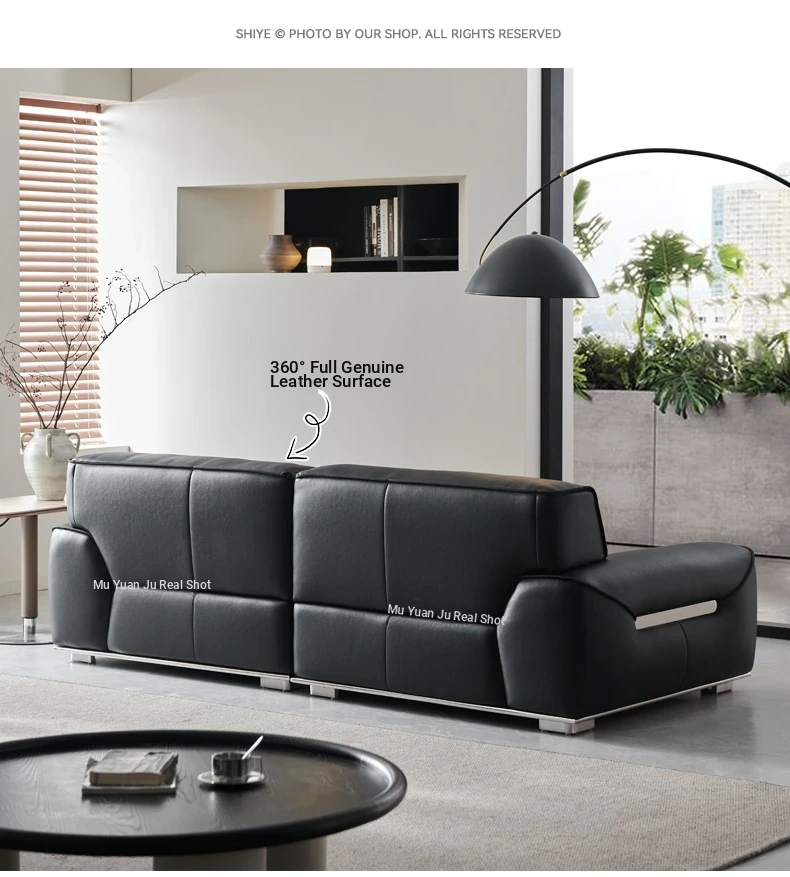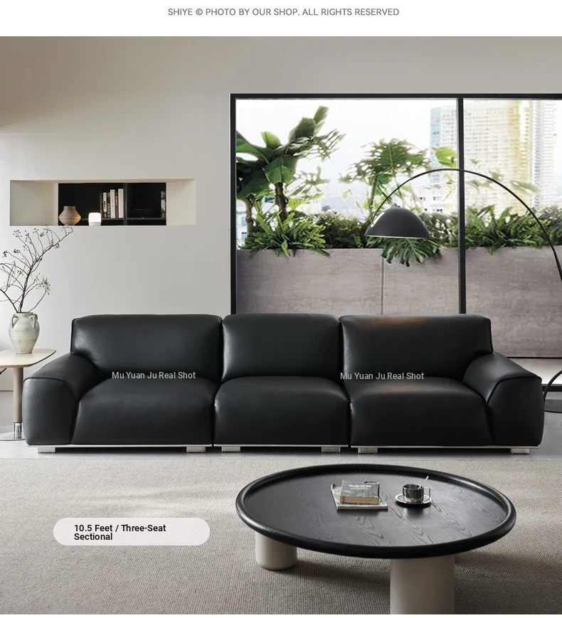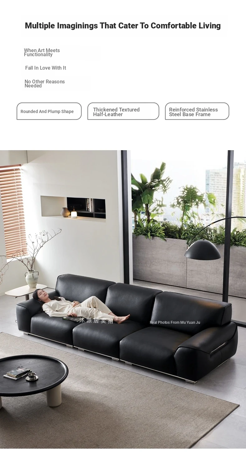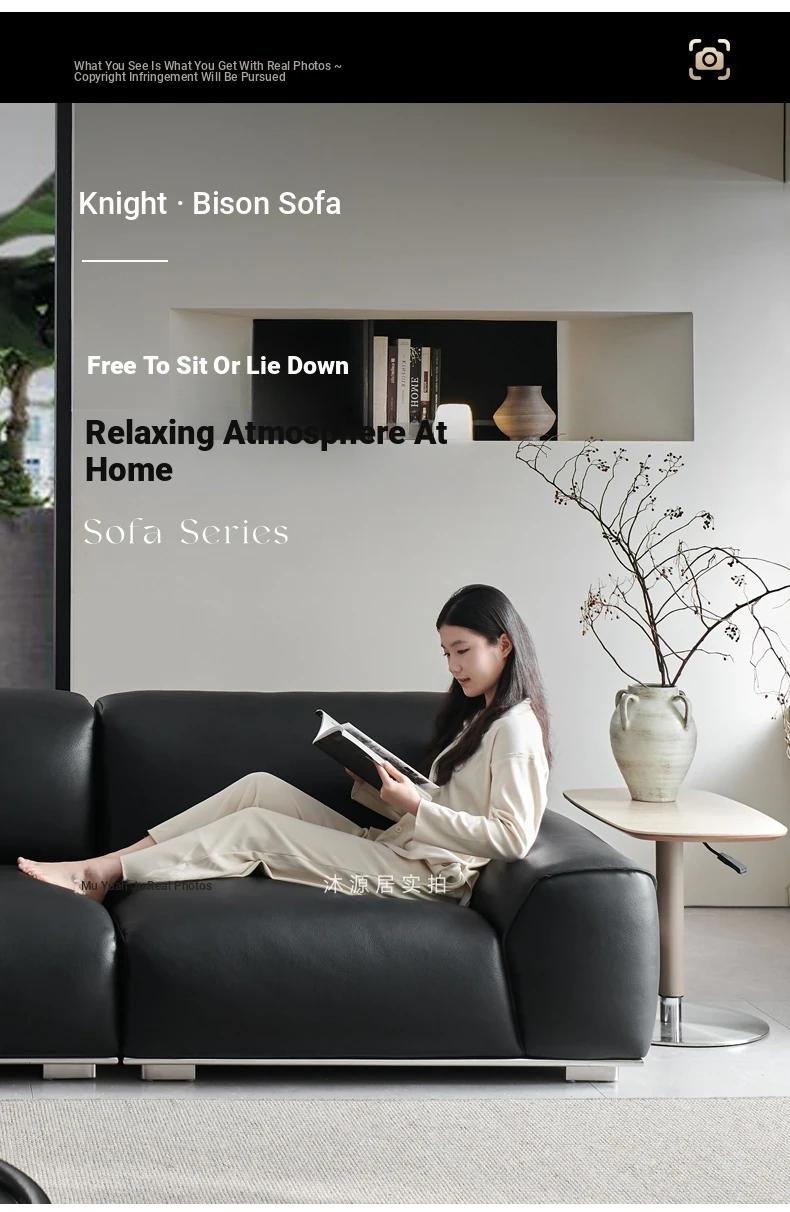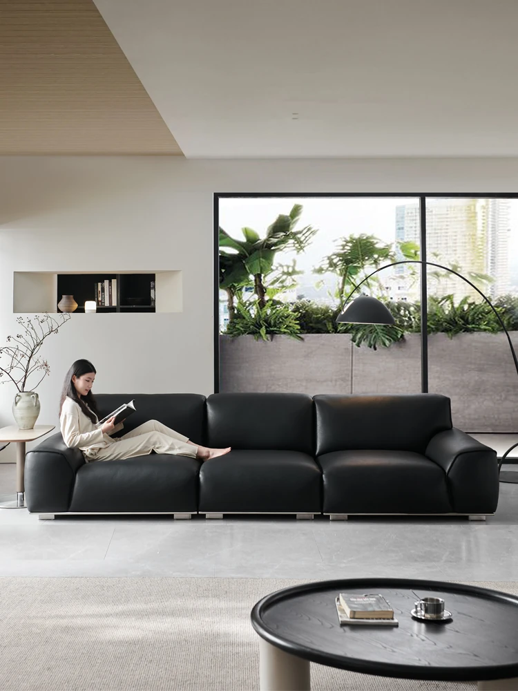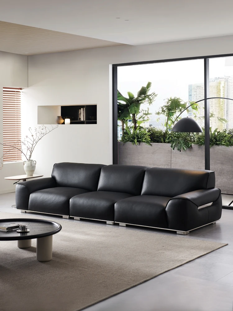 Italian Luxury Black Buffalo Leather Sofa – Designer's Choice for Living Room, Made with Premium Top Grain Leather, Sleek and Stylish Straight-Line Design. Perfect for Modern Interiors.