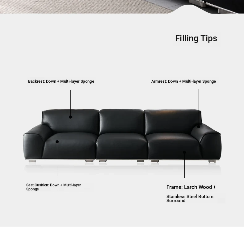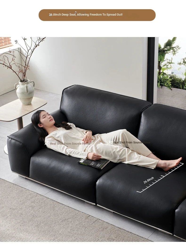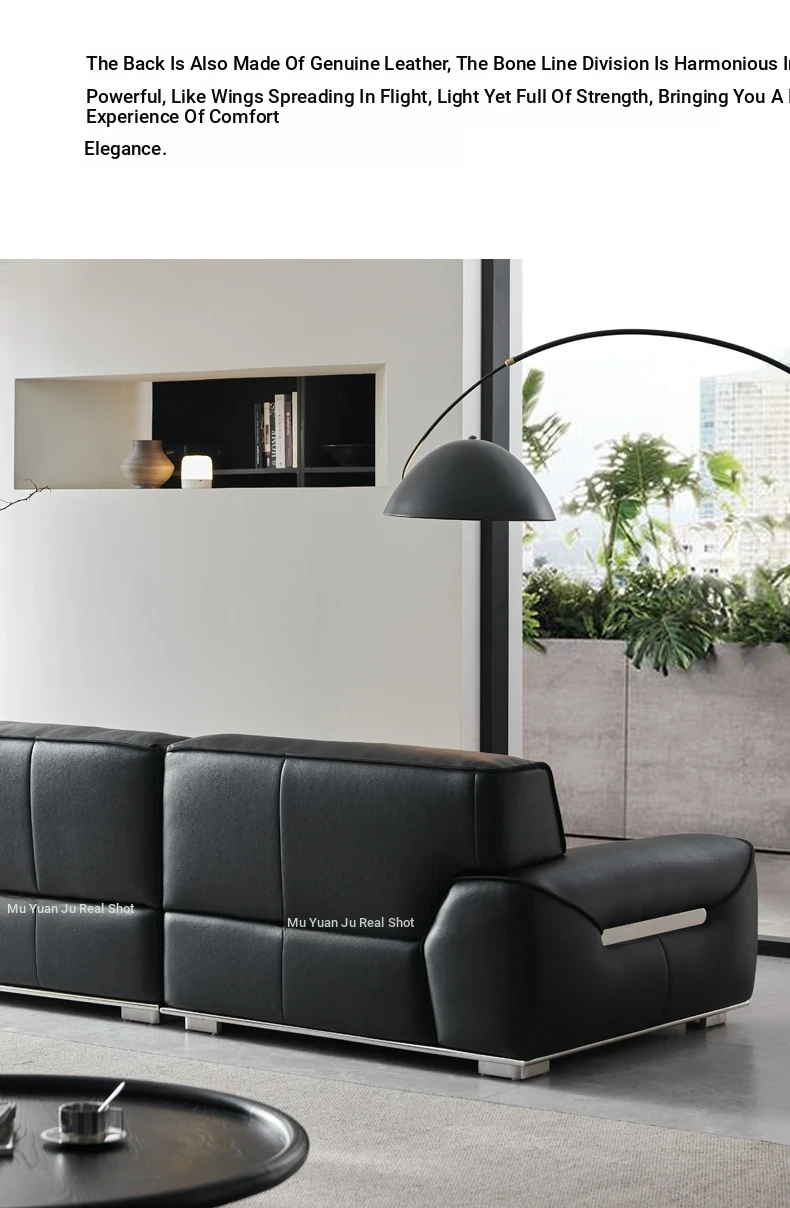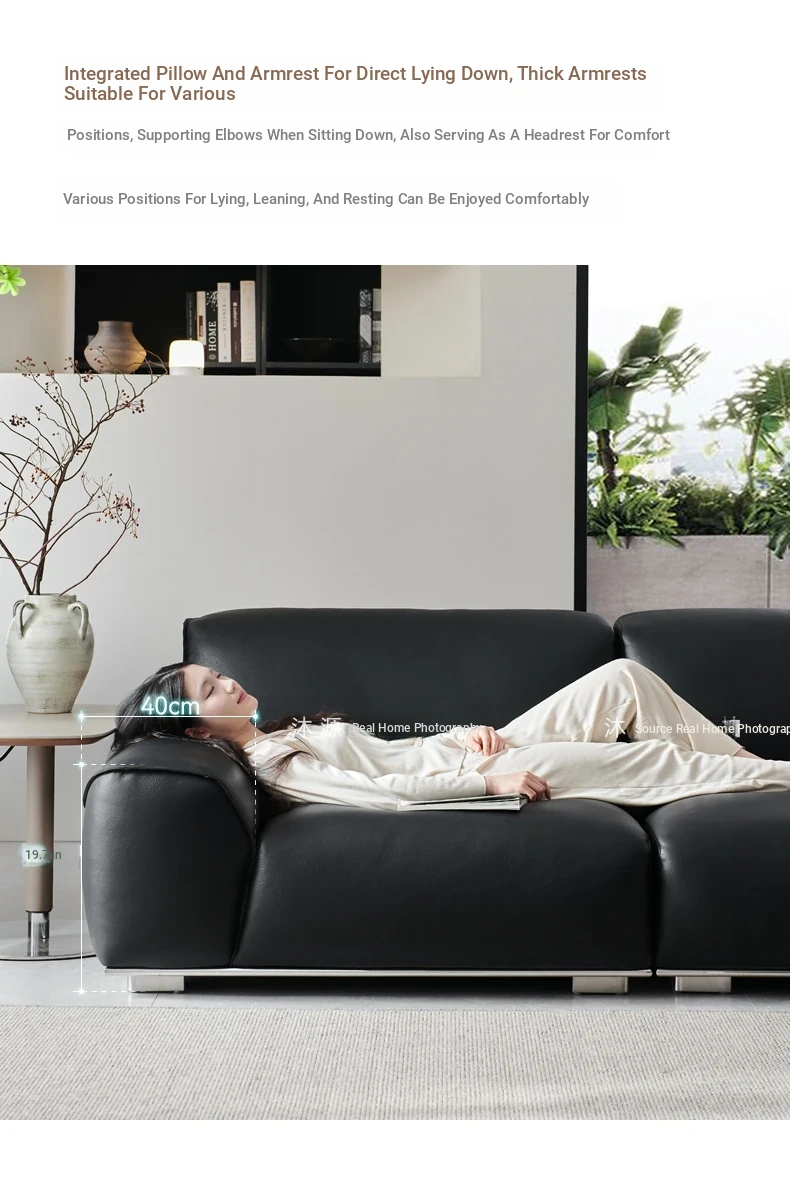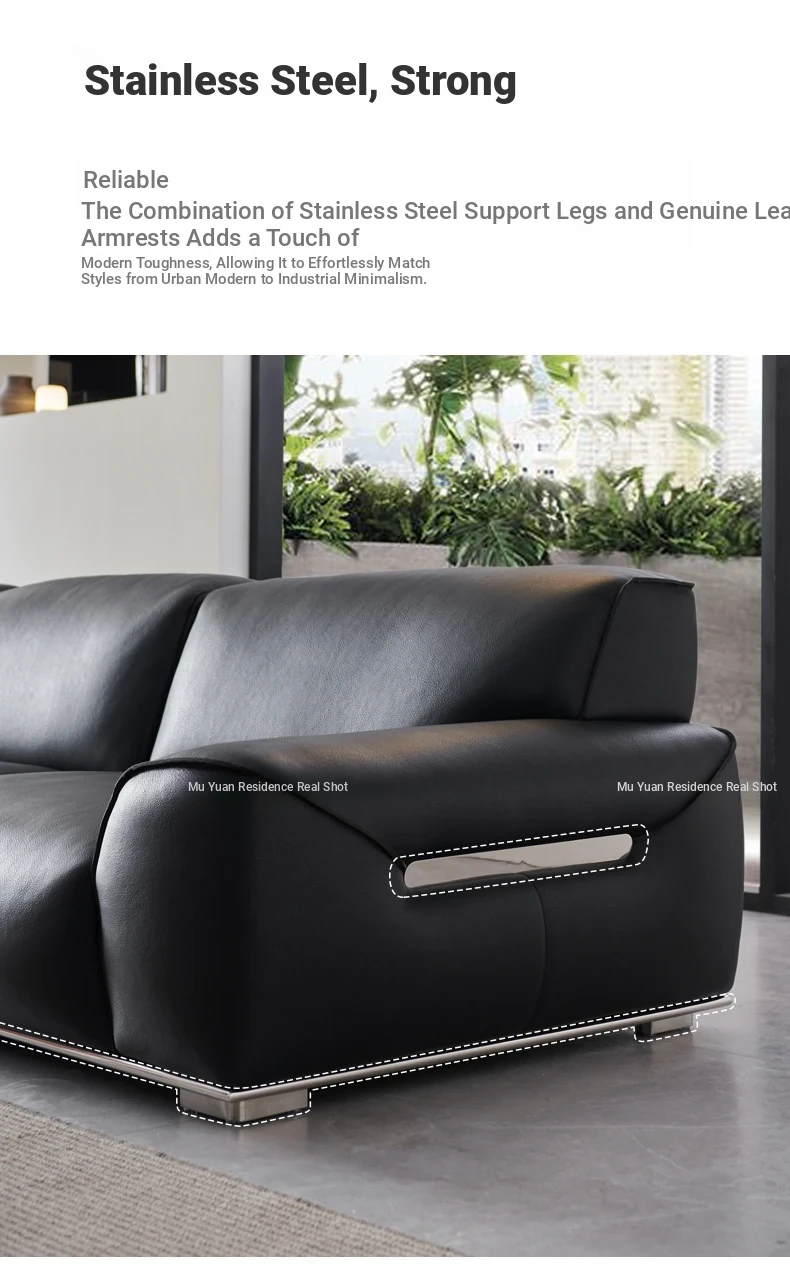 Italian Luxury Black Buffalo Leather Sofa – Designer's Choice for Living Room, Made with Premium Top Grain Leather, Sleek and Stylish Straight-Line Design. Perfect for Modern Interiors.