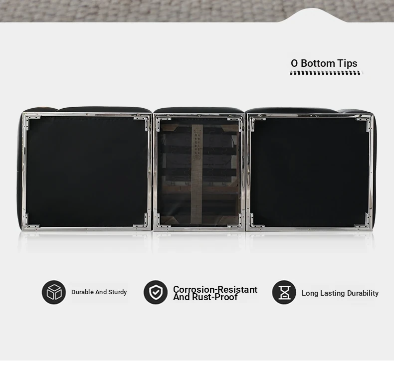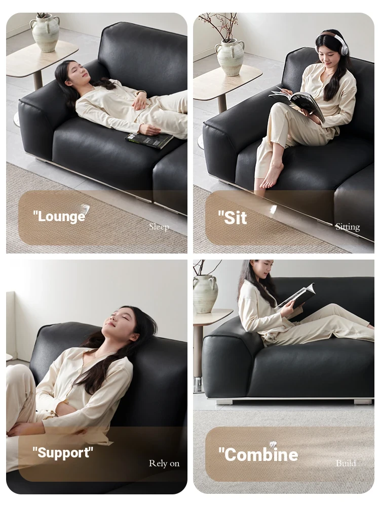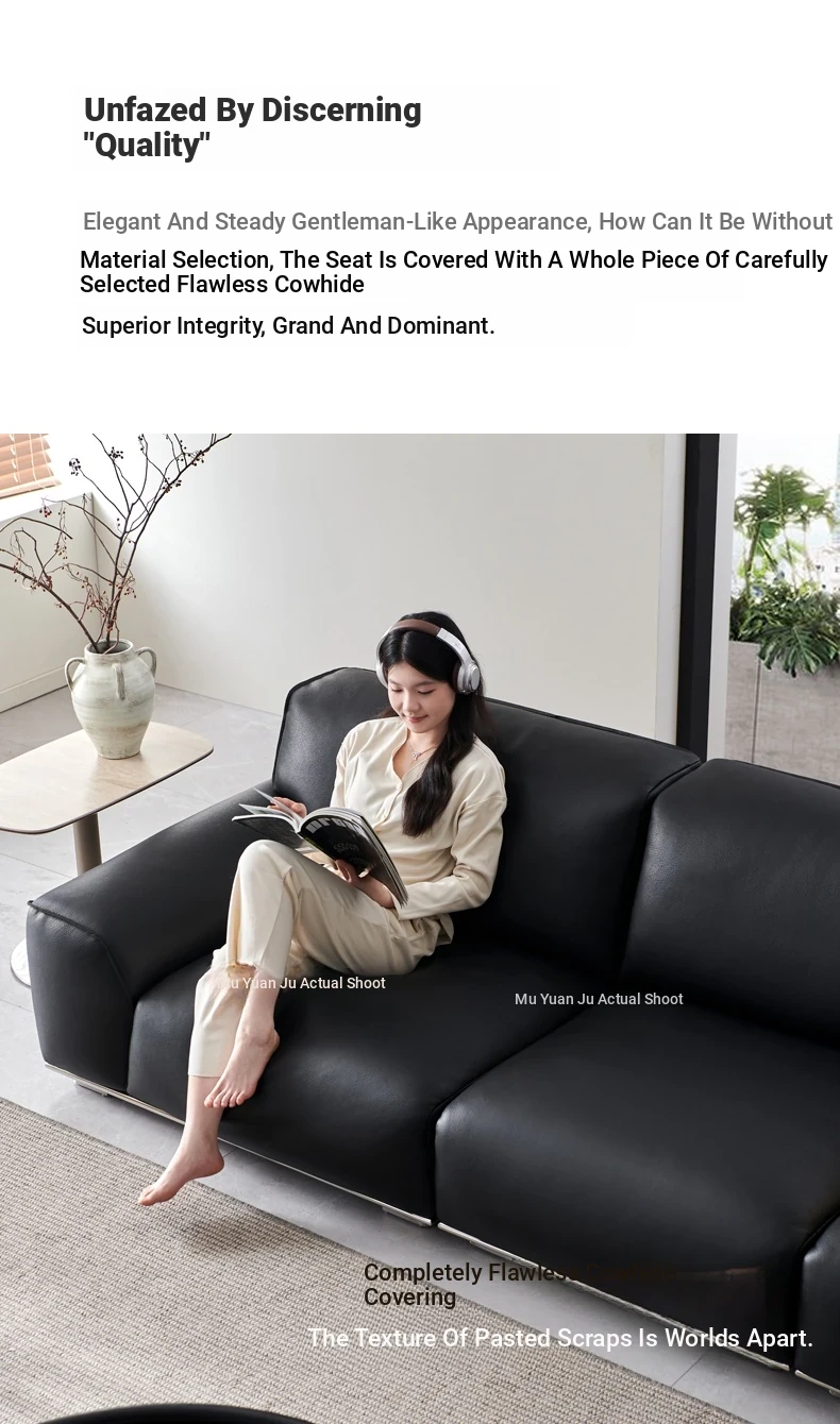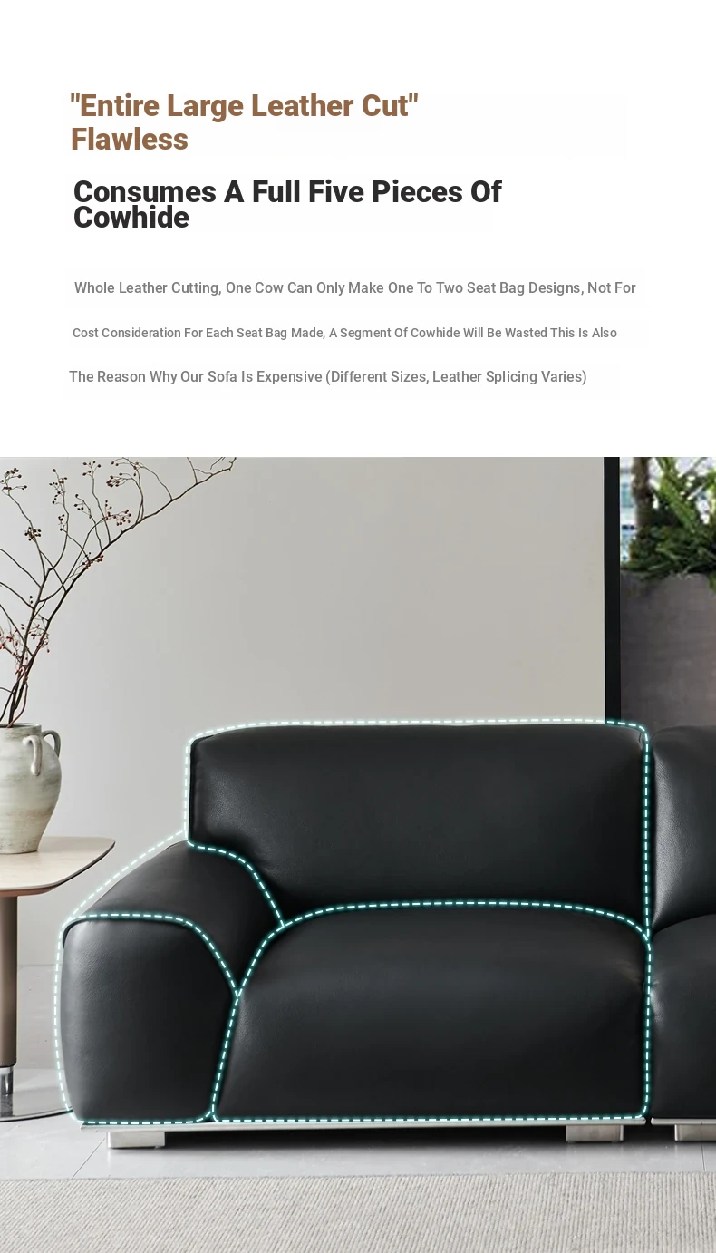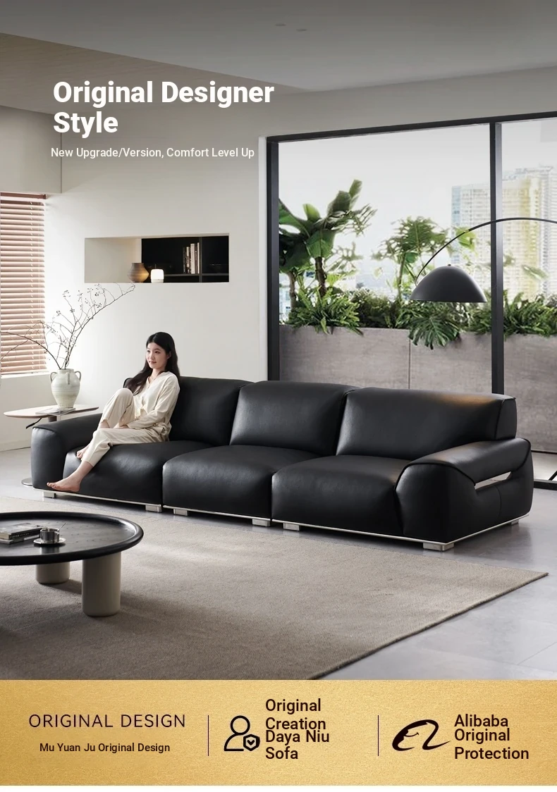 Italian Luxury Black Buffalo Leather Sofa – Designer's Choice for Living Room, Made with Premium Top Grain Leather, Sleek and Stylish Straight-Line Design. Perfect for Modern Interiors.