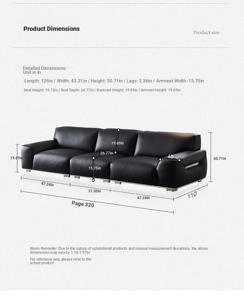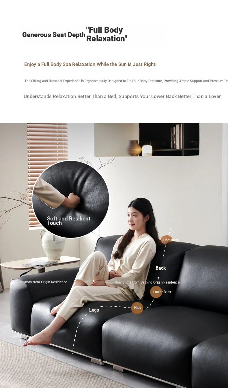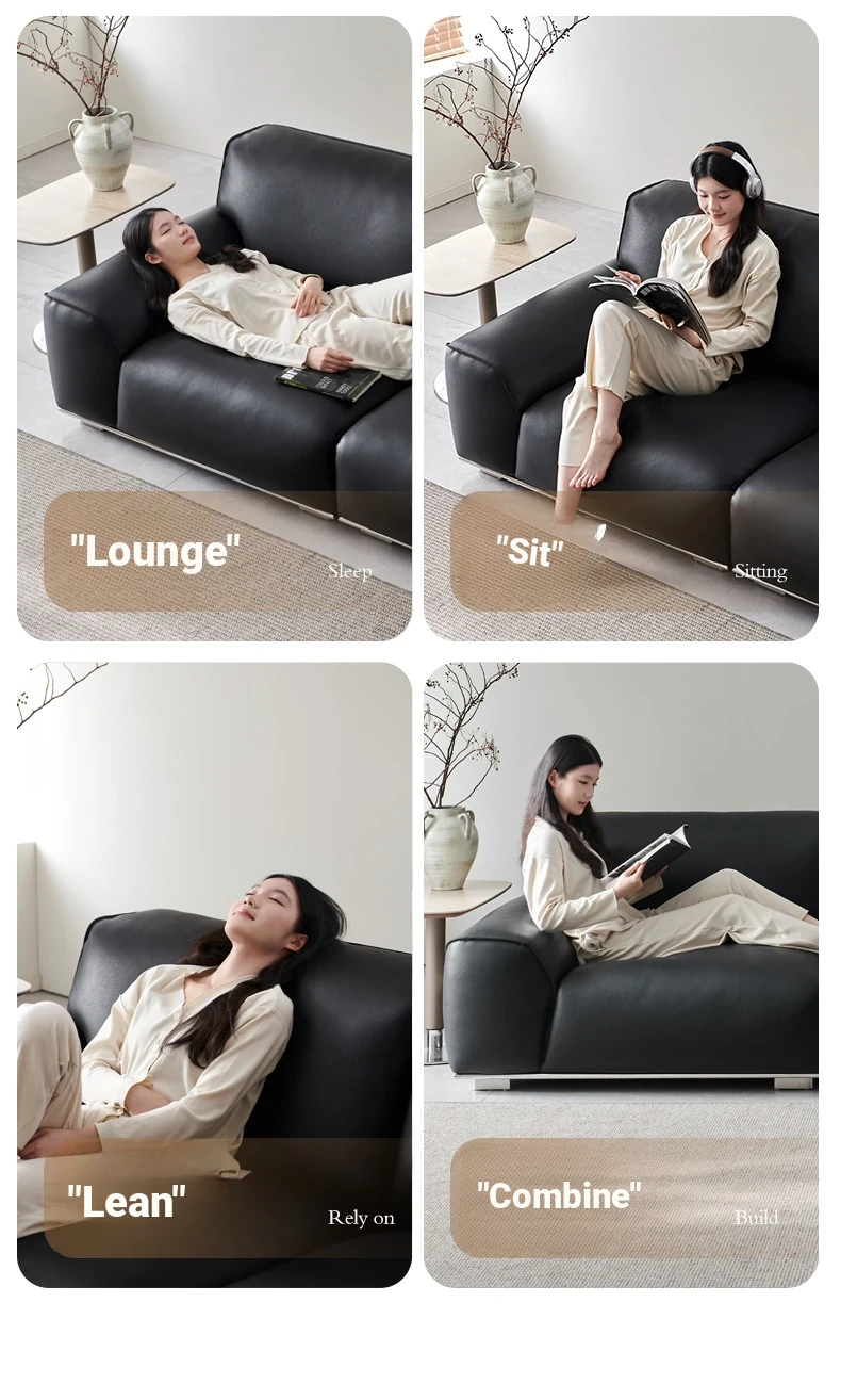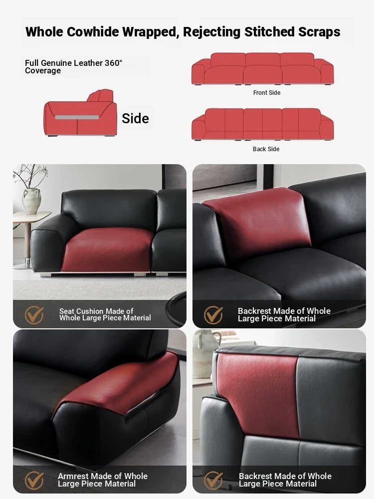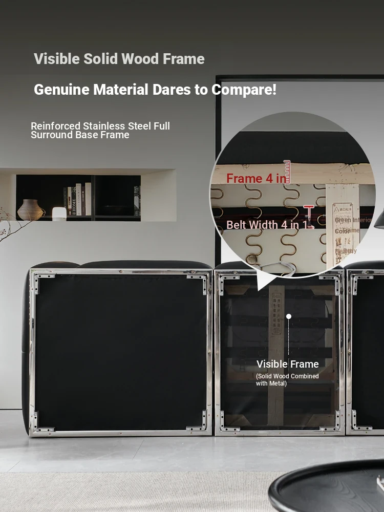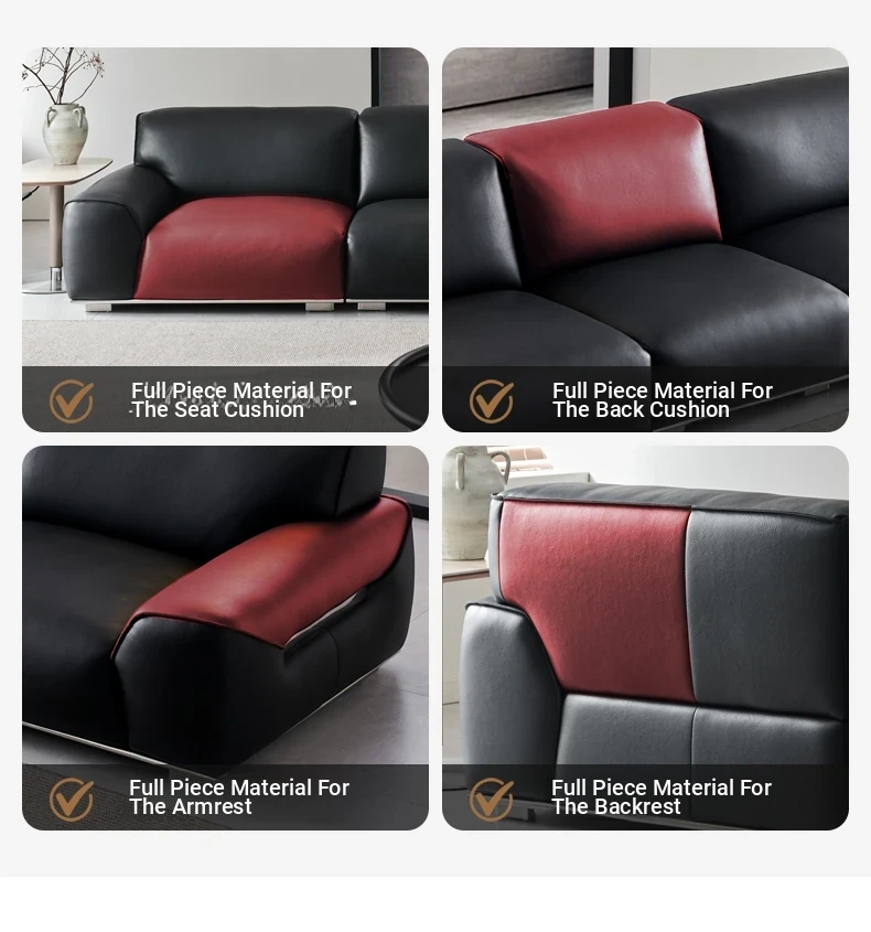 Italian Luxury Black Buffalo Leather Sofa – Designer's Choice for Living Room, Made with Premium Top Grain Leather, Sleek and Stylish Straight-Line Design. Perfect for Modern Interiors.