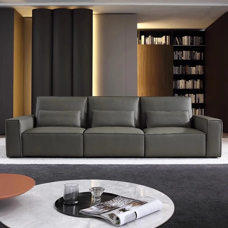 Italian Minimalist Genuine Leather Sofa - Modern Luxury with High Back and Chunky Design for Living Room, Premium Top-Grain Leather, Perfect for Stylish Comfort