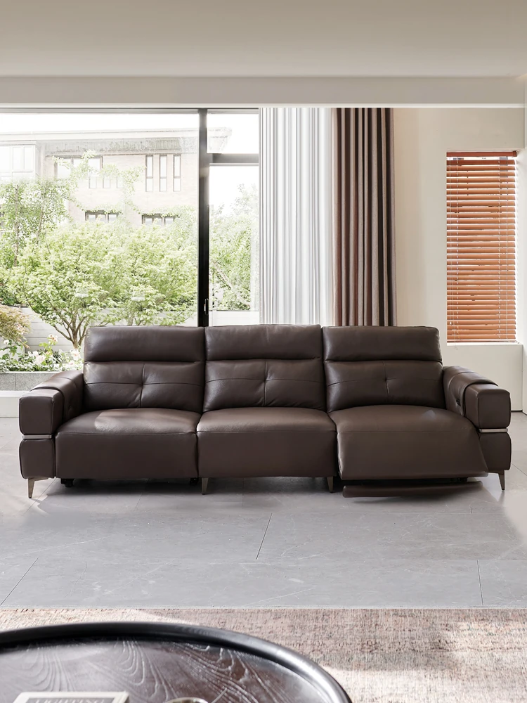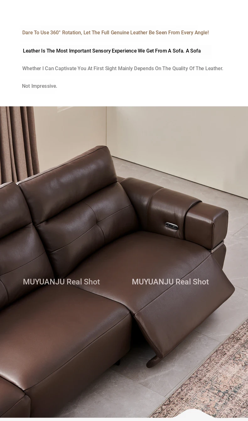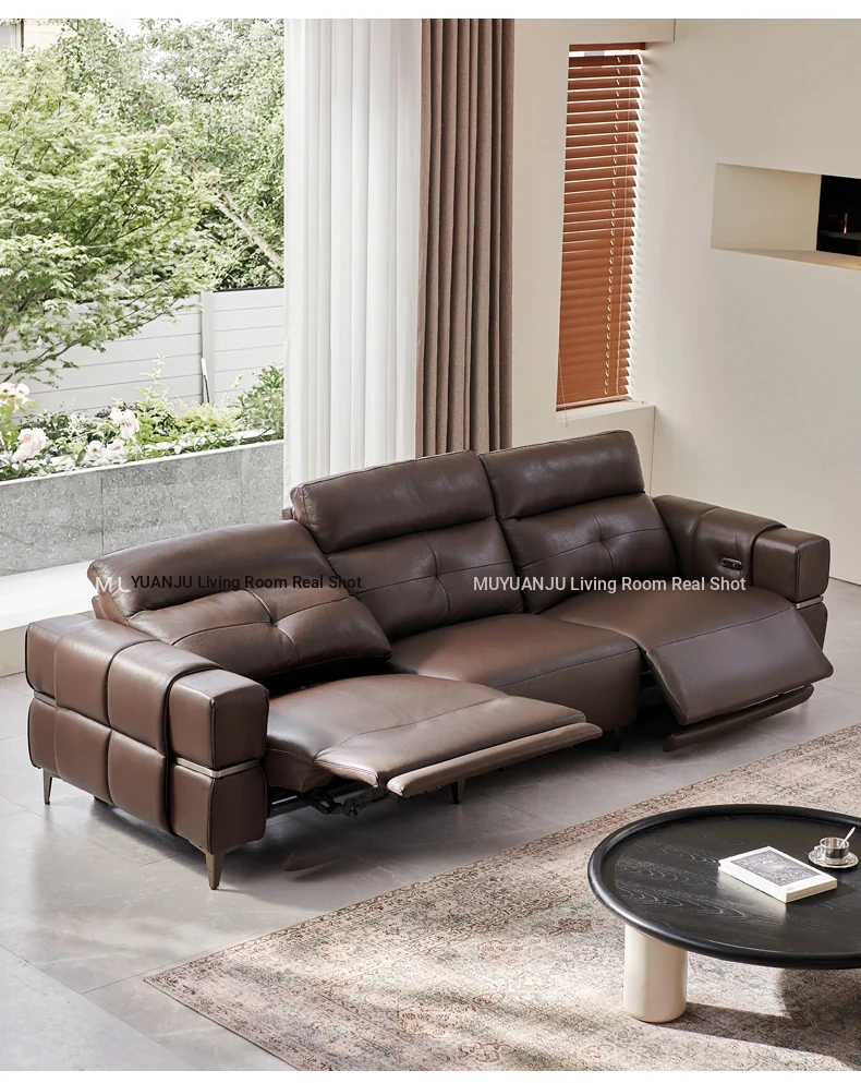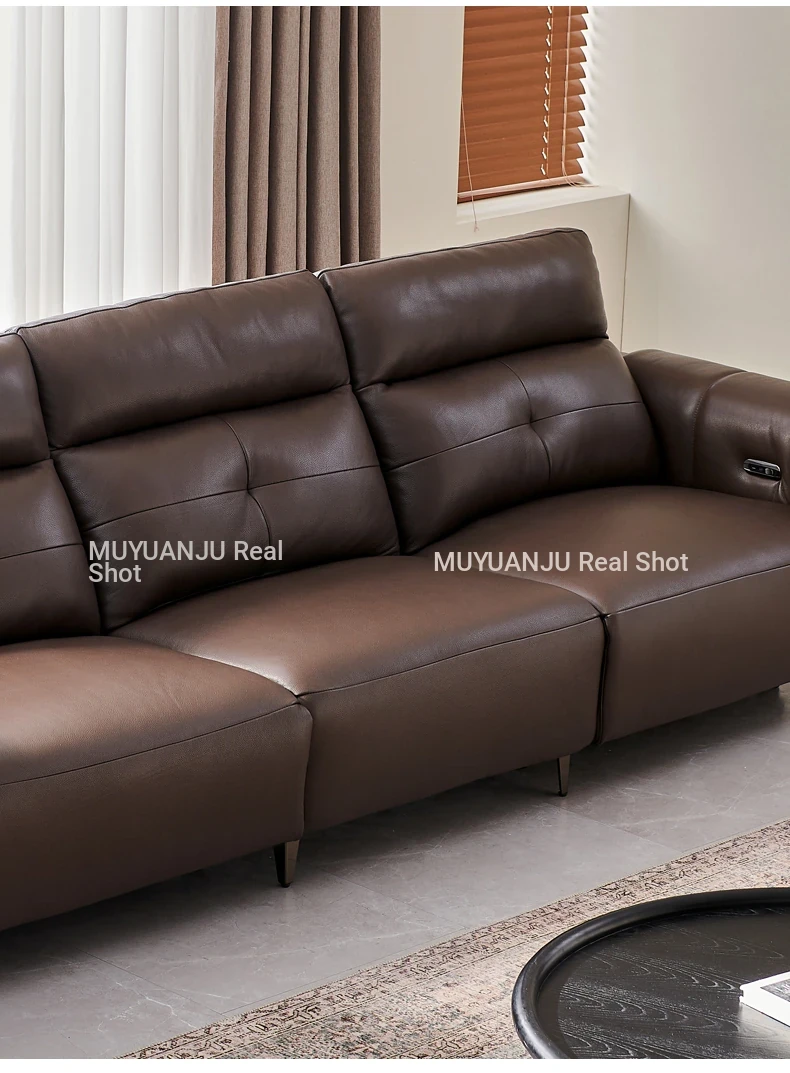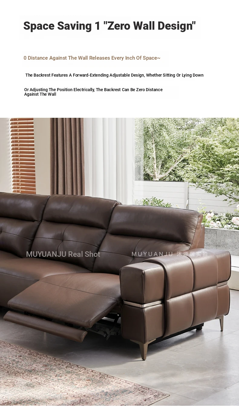 Italian Style Mid-Century Modern Wall-Hugging Electric Recliner Sofa with Adjustable Headrest – Versatile Leather Sofa Perfect for Living Rooms, Comfortable for Sitting and Sleeping.