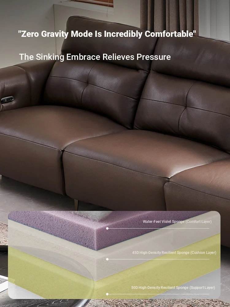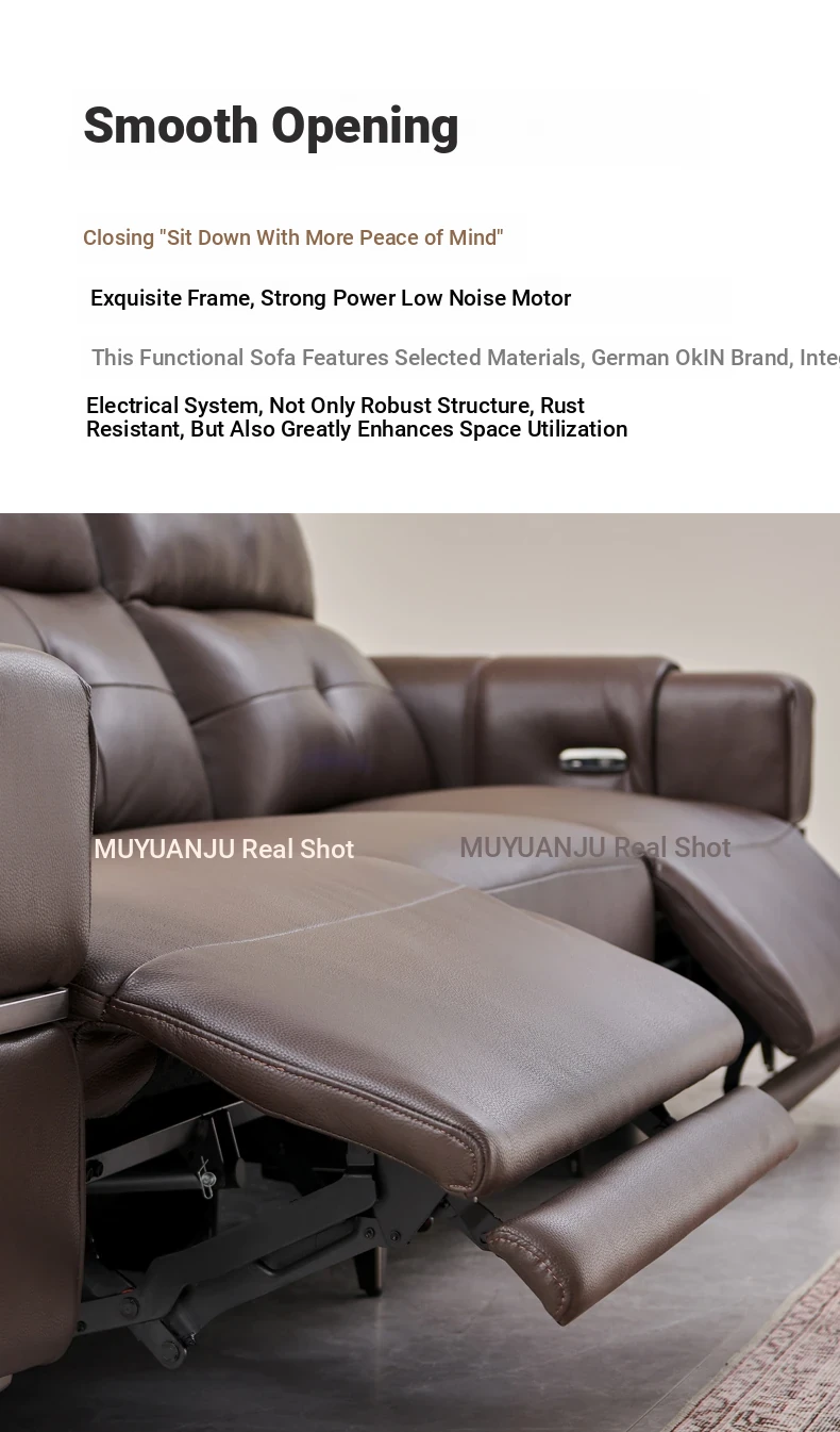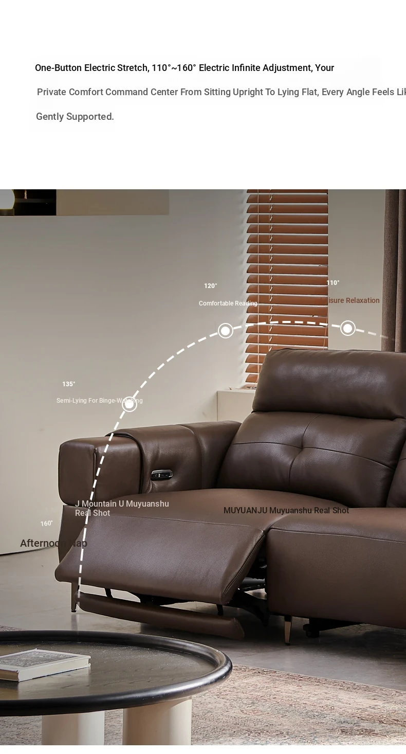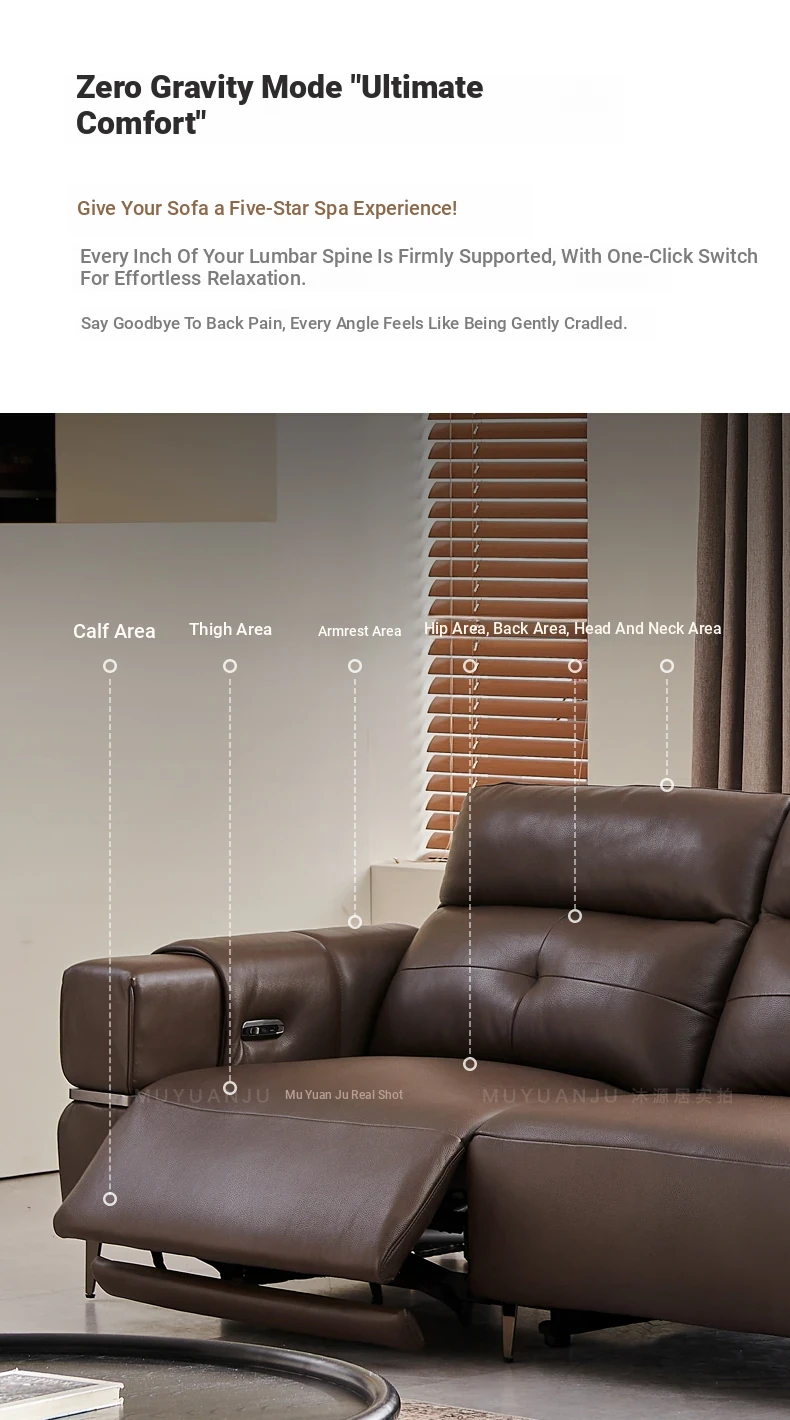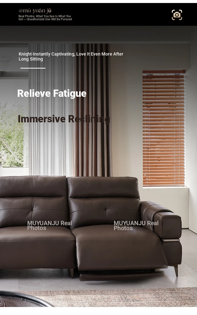 Italian Style Mid-Century Modern Wall-Hugging Electric Recliner Sofa with Adjustable Headrest – Versatile Leather Sofa Perfect for Living Rooms, Comfortable for Sitting and Sleeping.