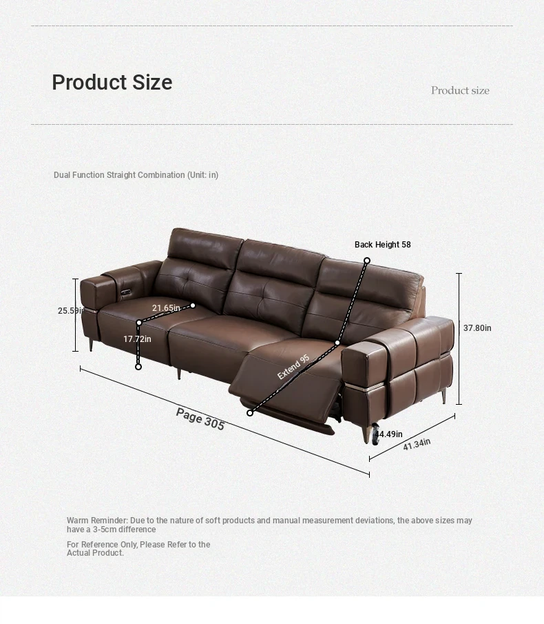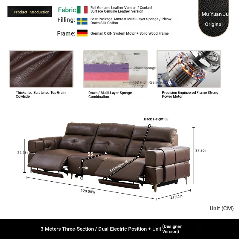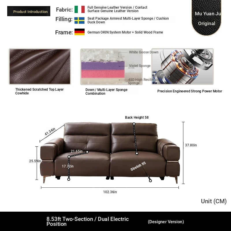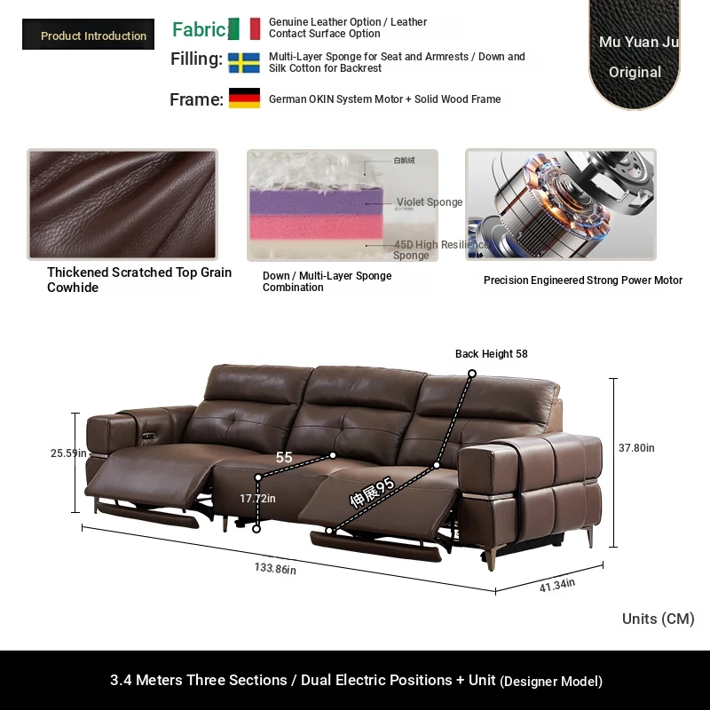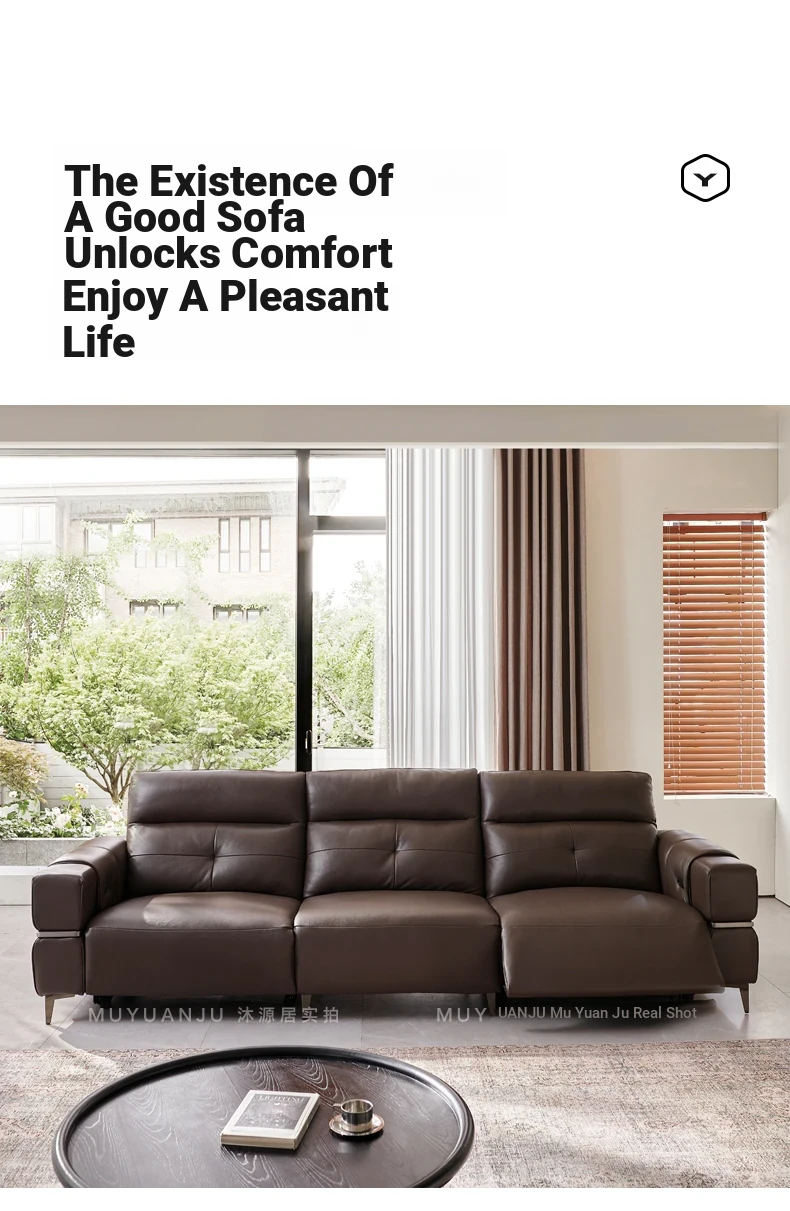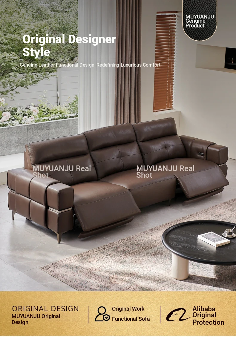 Italian Style Mid-Century Modern Wall-Hugging Electric Recliner Sofa with Adjustable Headrest – Versatile Leather Sofa Perfect for Living Rooms, Comfortable for Sitting and Sleeping.
