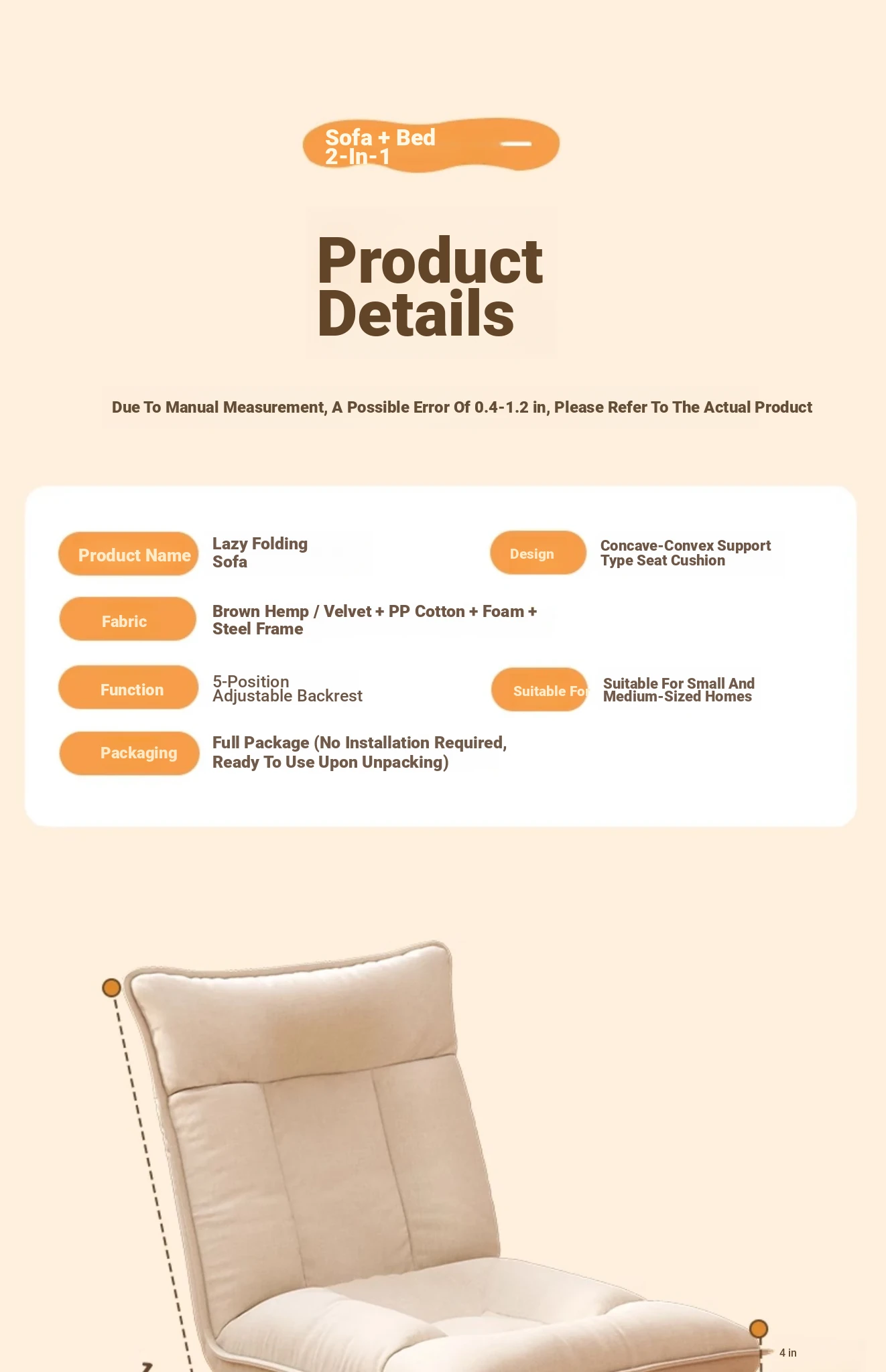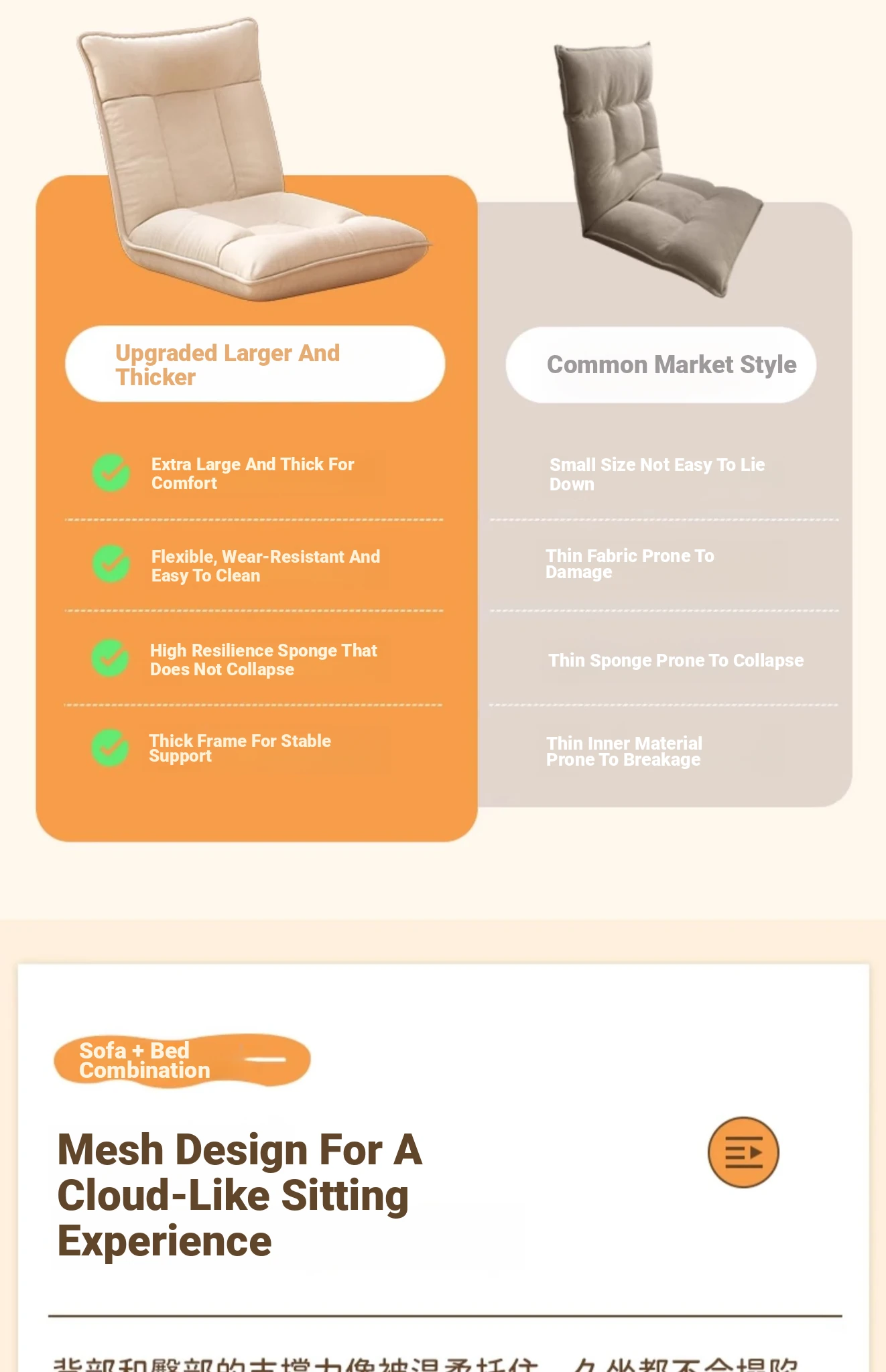 Japanese Style Folding Single Lazy Sofa Cushion for Bedroom, Window Seat, or Dorm – Compact Tatami Chair with Backrest for Ultimate Comfort