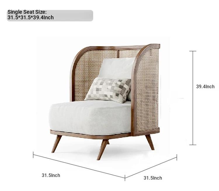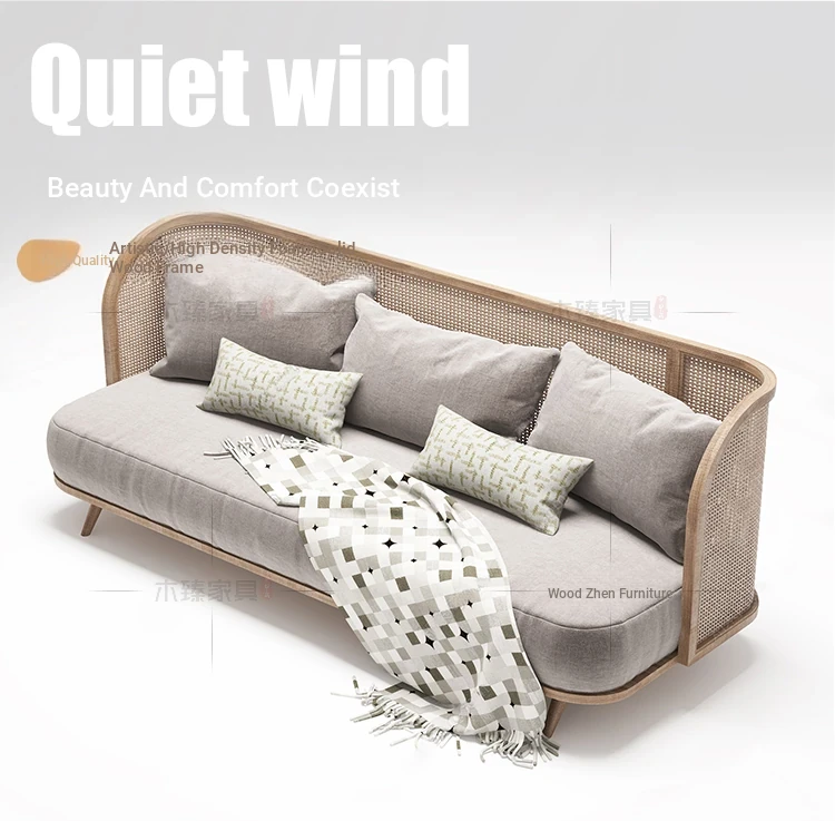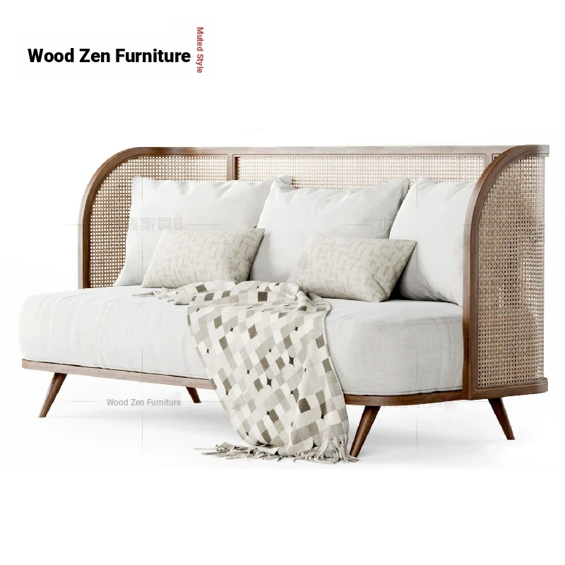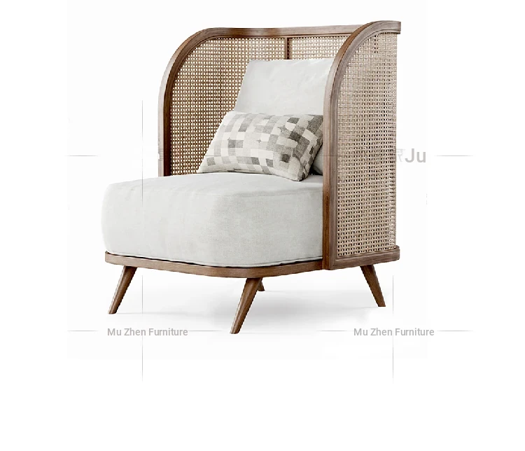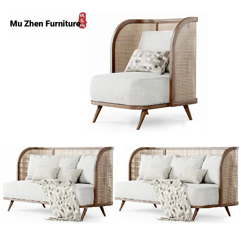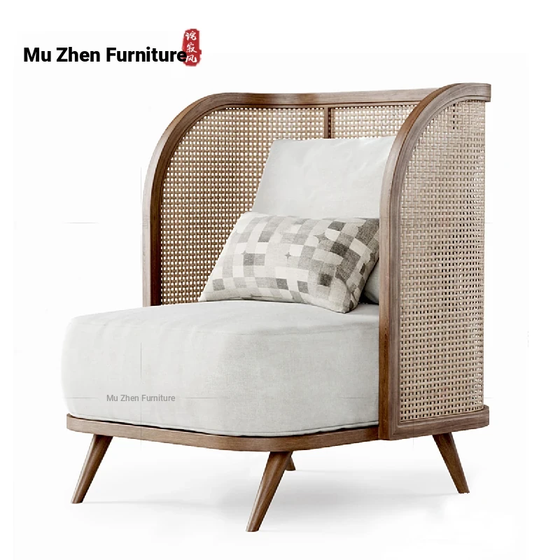 Japanese Woven Rattan Solid Wood Sofa Set - Wabi-Sabi High Back Rattan Chair for New Chinese Style Hotels and Guesthouses - Perfect for Relaxation in Your Room