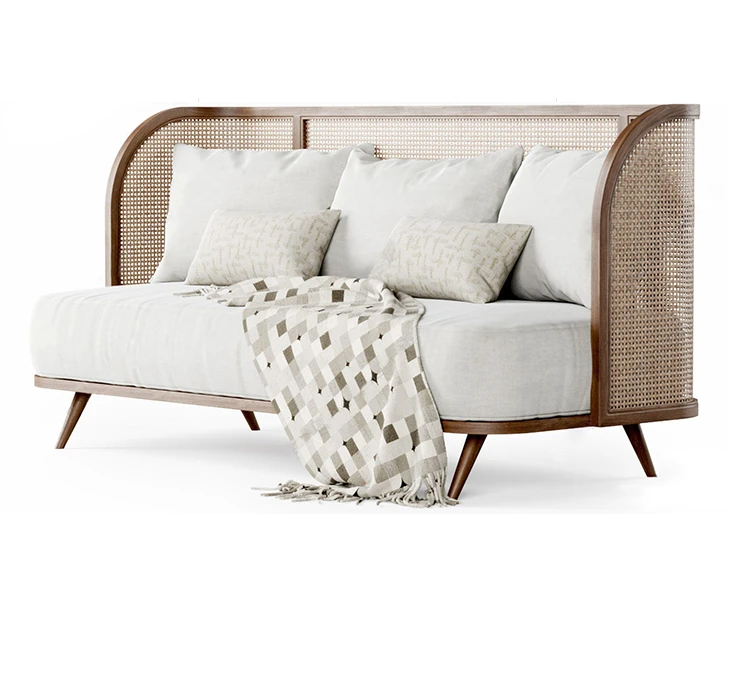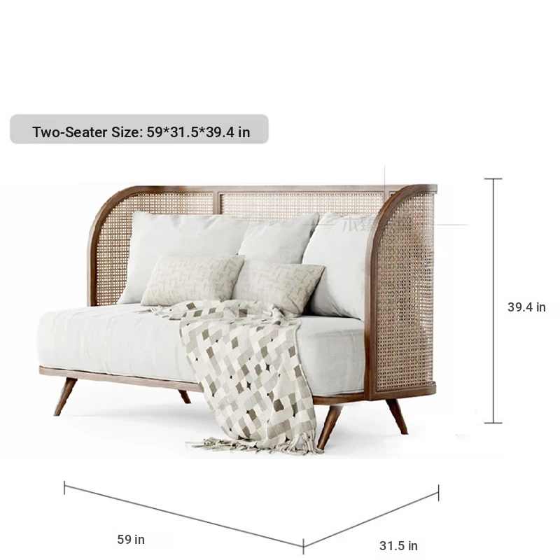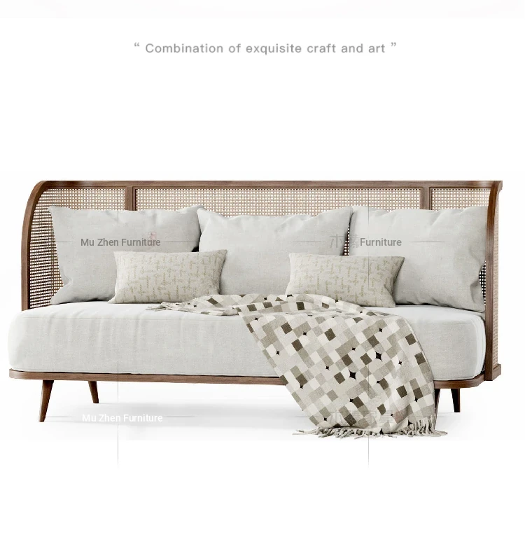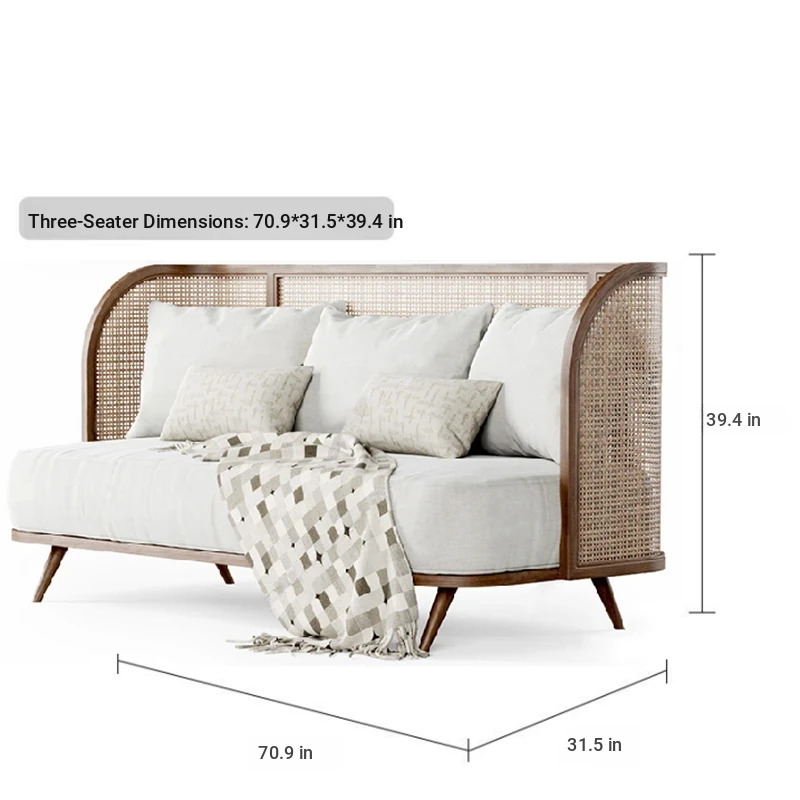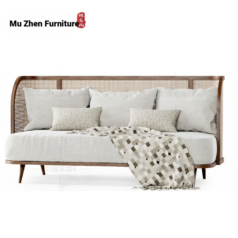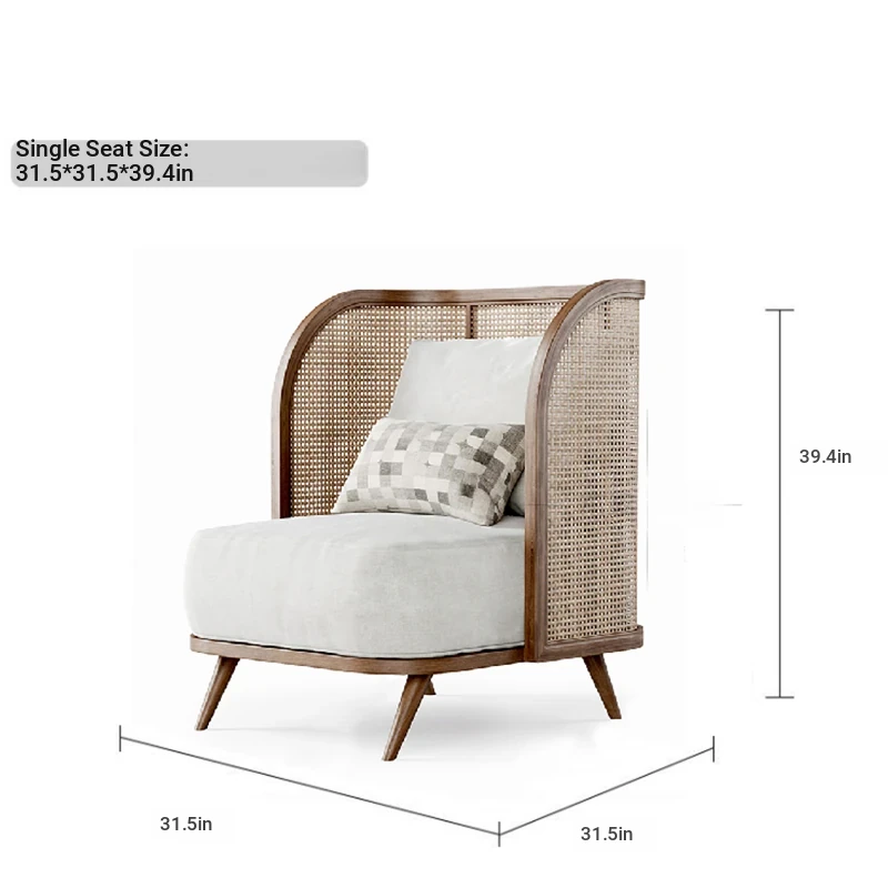 Japanese Woven Rattan Solid Wood Sofa Set - Wabi-Sabi High Back Rattan Chair for New Chinese Style Hotels and Guesthouses - Perfect for Relaxation in Your Room
