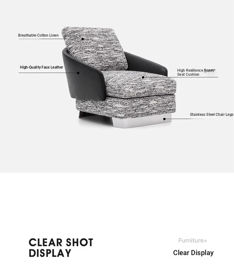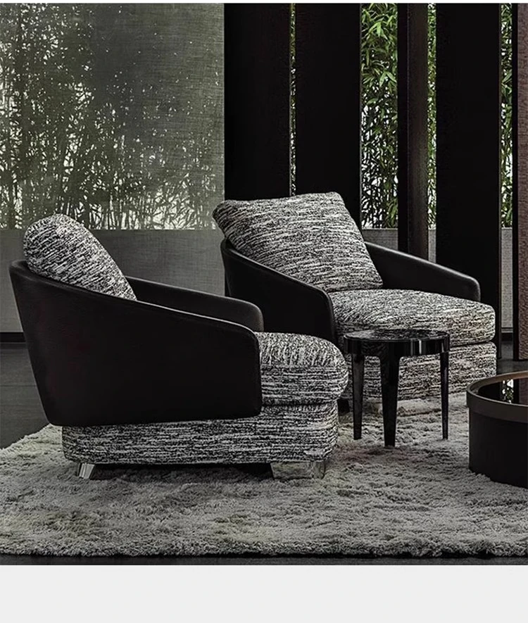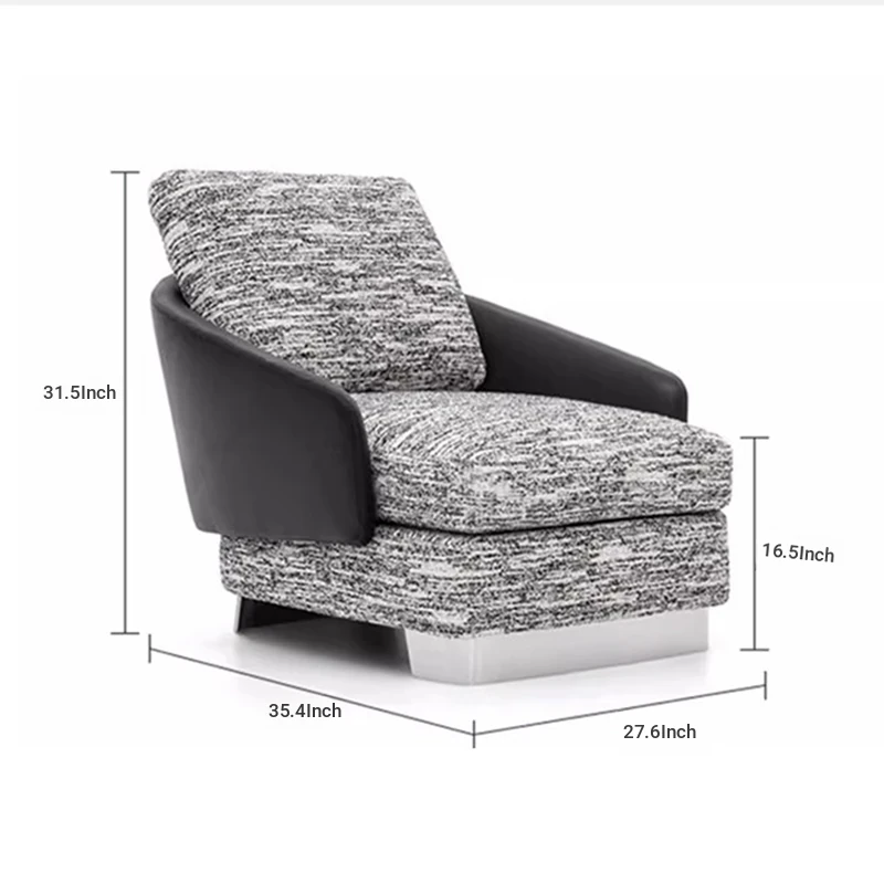 Jun Yuan Italian Minimalist Balcony Lounge Chair with Stainless Steel Legs - Elegant Leisure Chair for Relaxation and Conversations. Perfect for Modern Living Spaces!