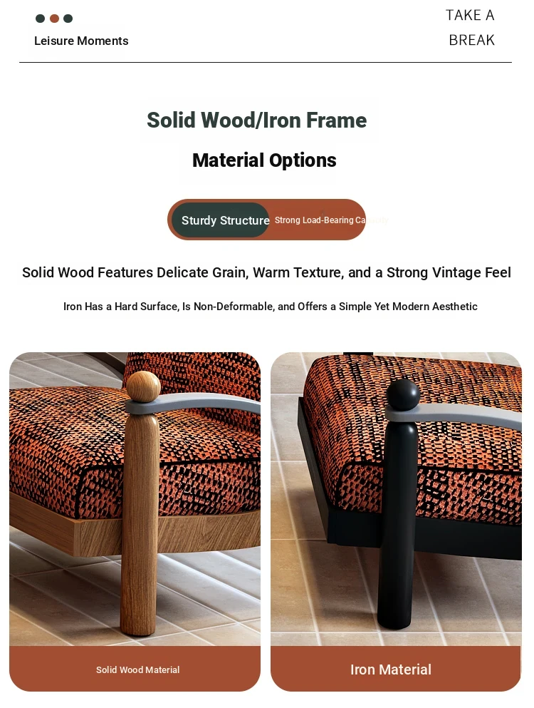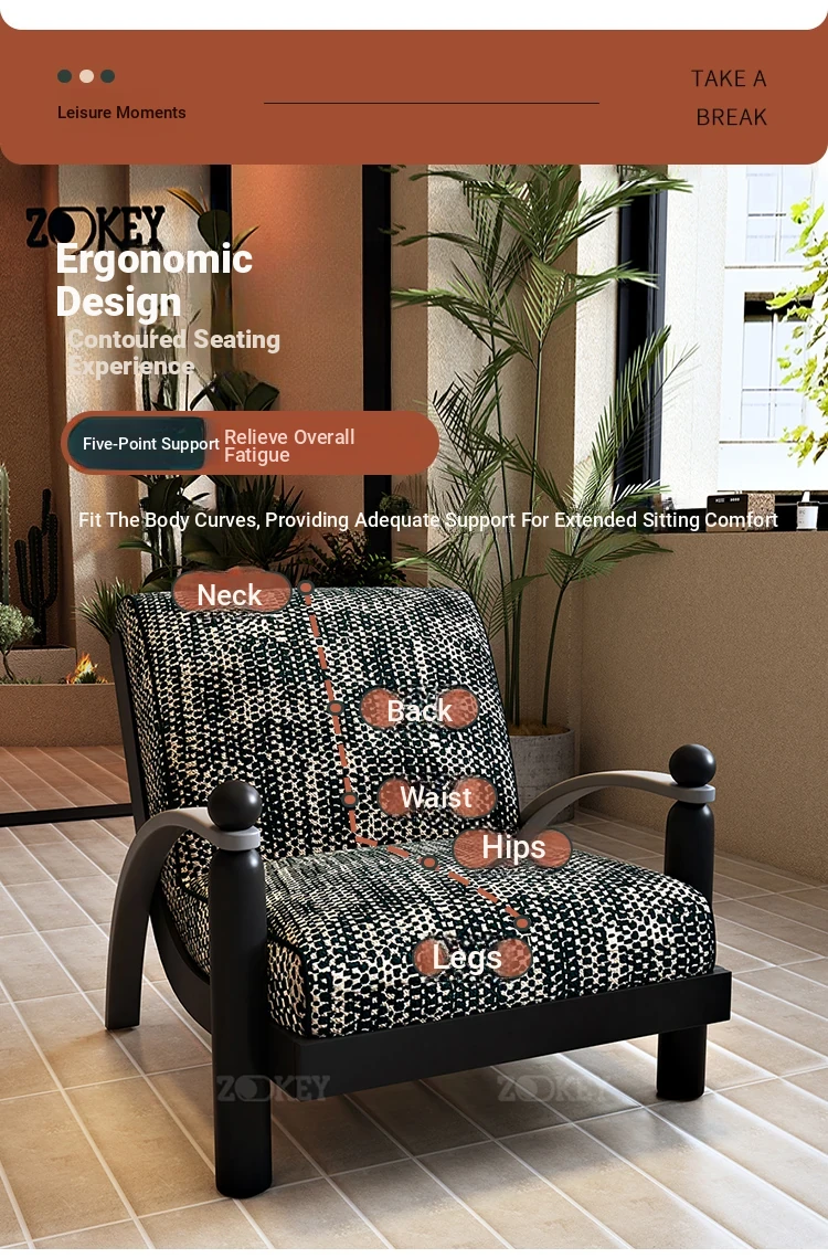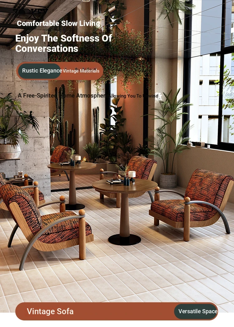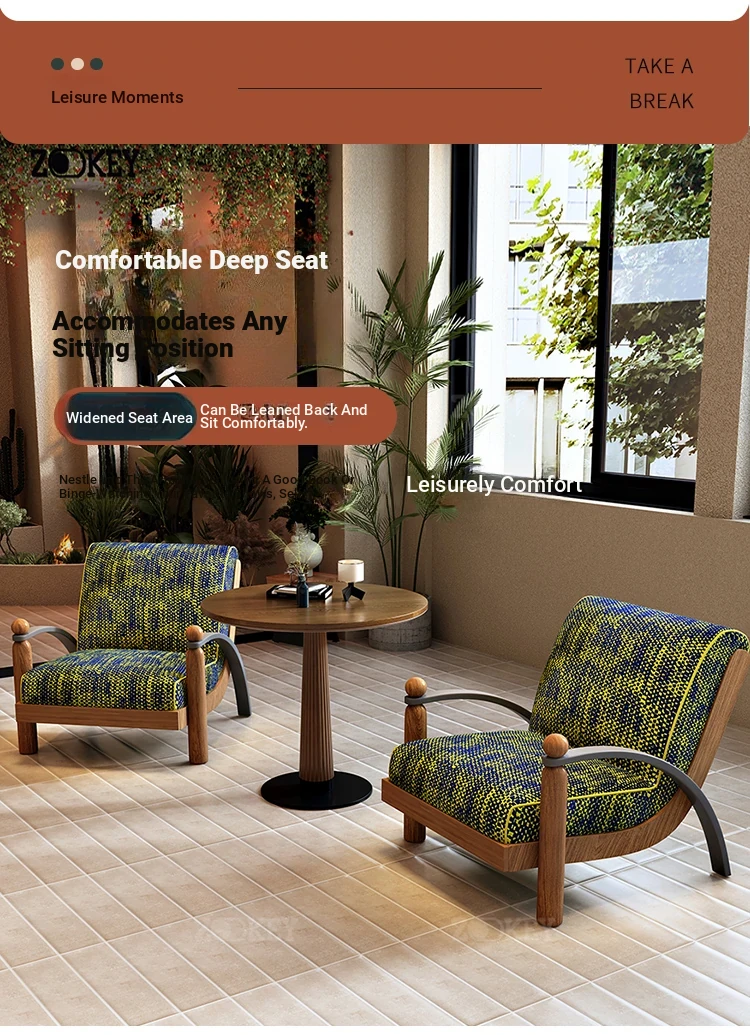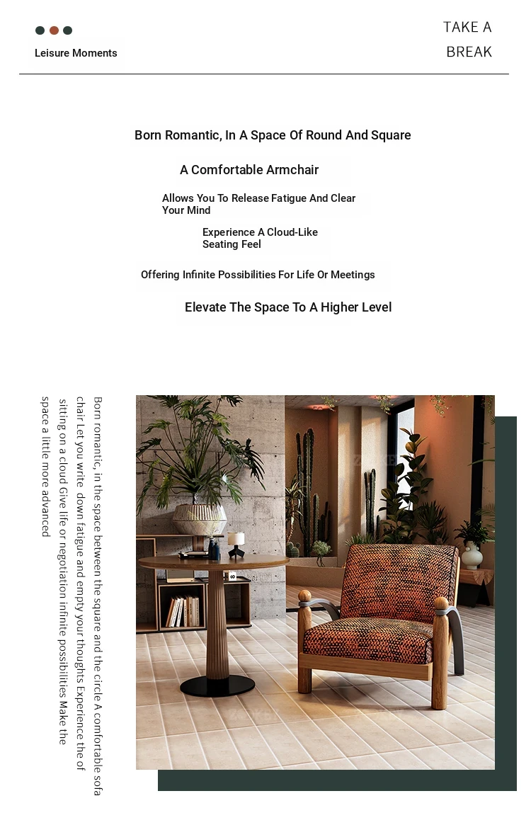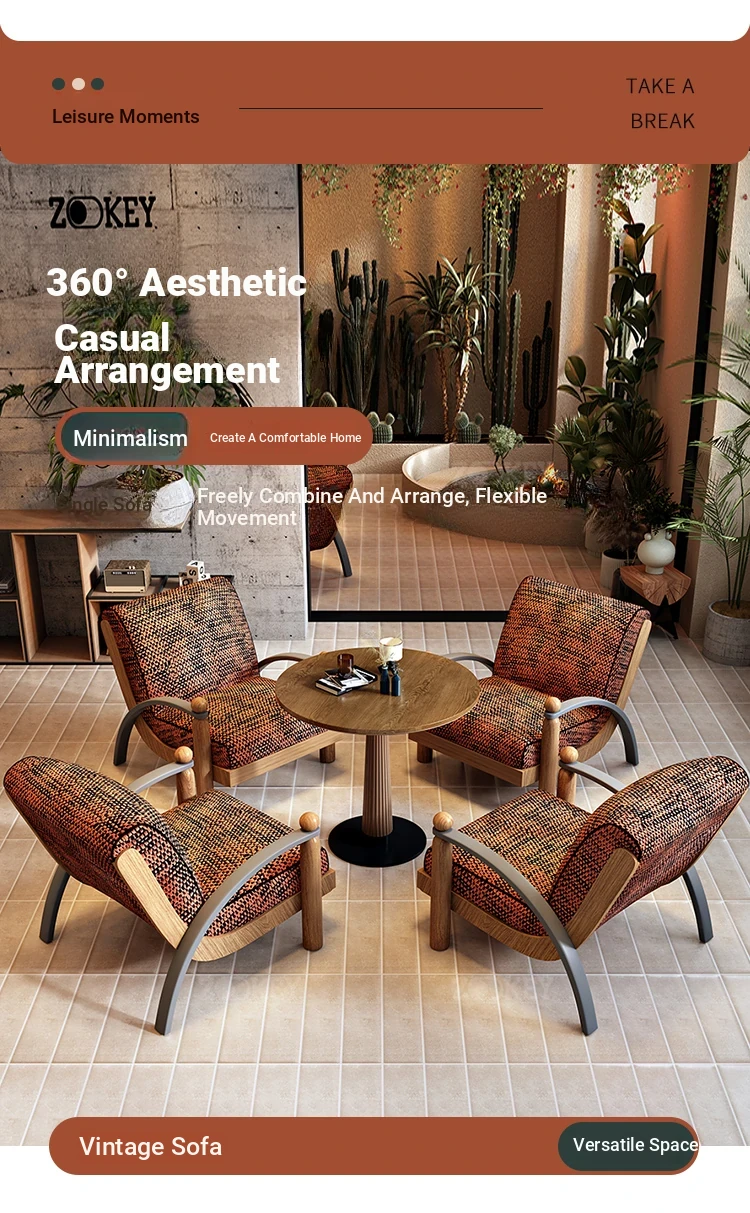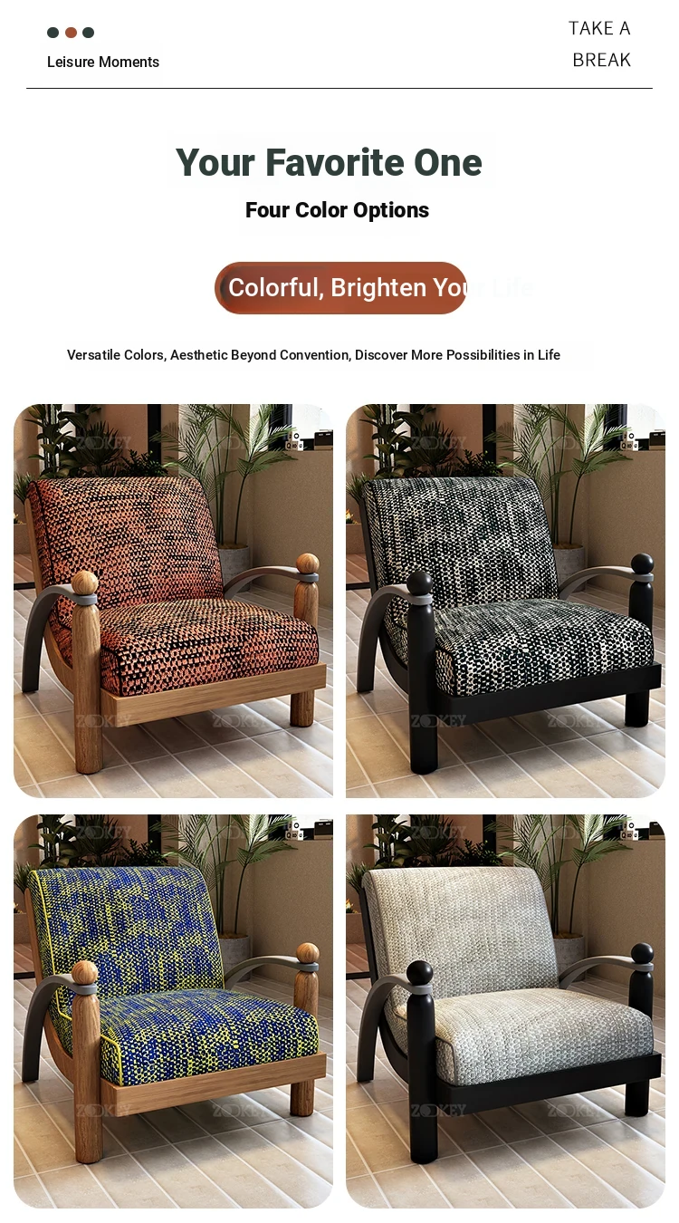 JunYuan Retro Single Sofa Chair - Compact Rotating Lounge Chair for Small Spaces, Ideal for Living Room and Bedroom, Minimalist Design Perfect for Casual Conversations