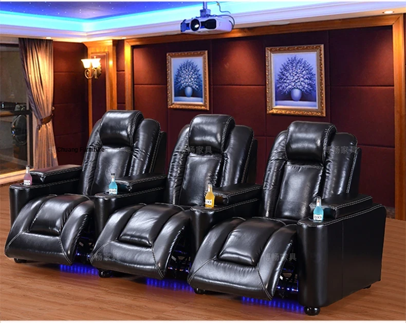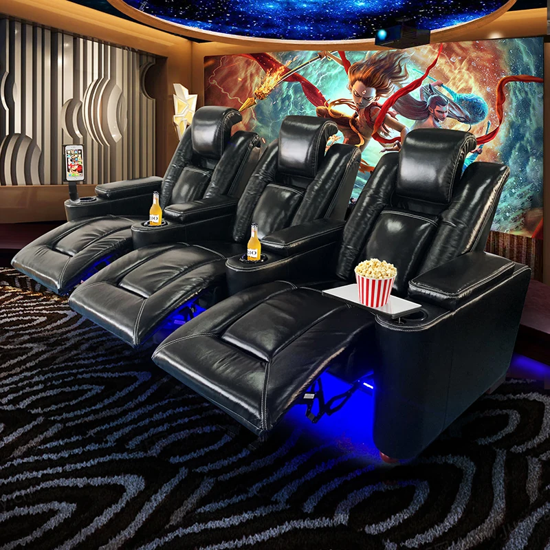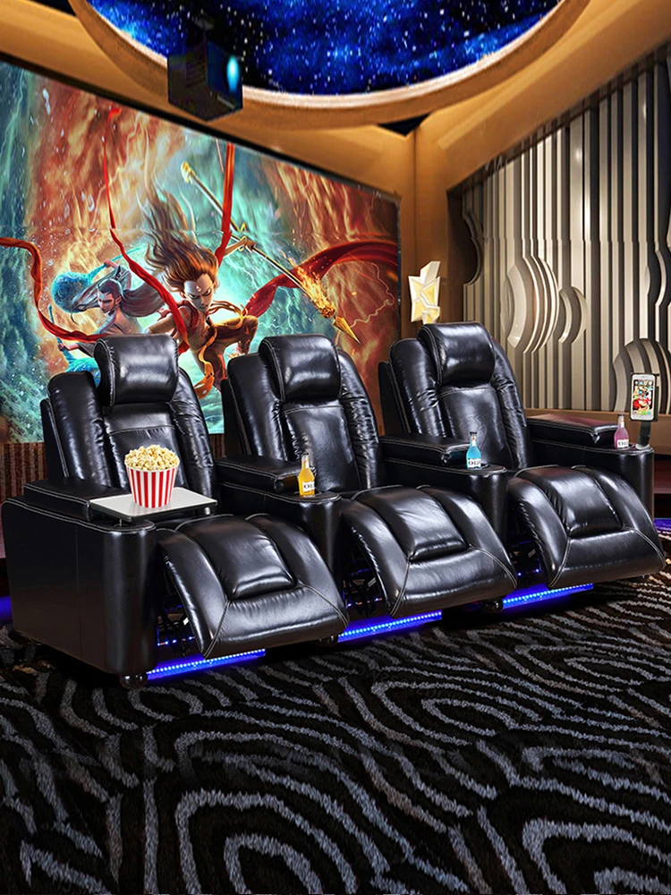 Luxury Electric Reclining Sofa for Home Theater - Premium Leather, Multi-Functional Cabin Design for Villas and Private Cinemas, Perfect for Ultimate Movie Experiences!