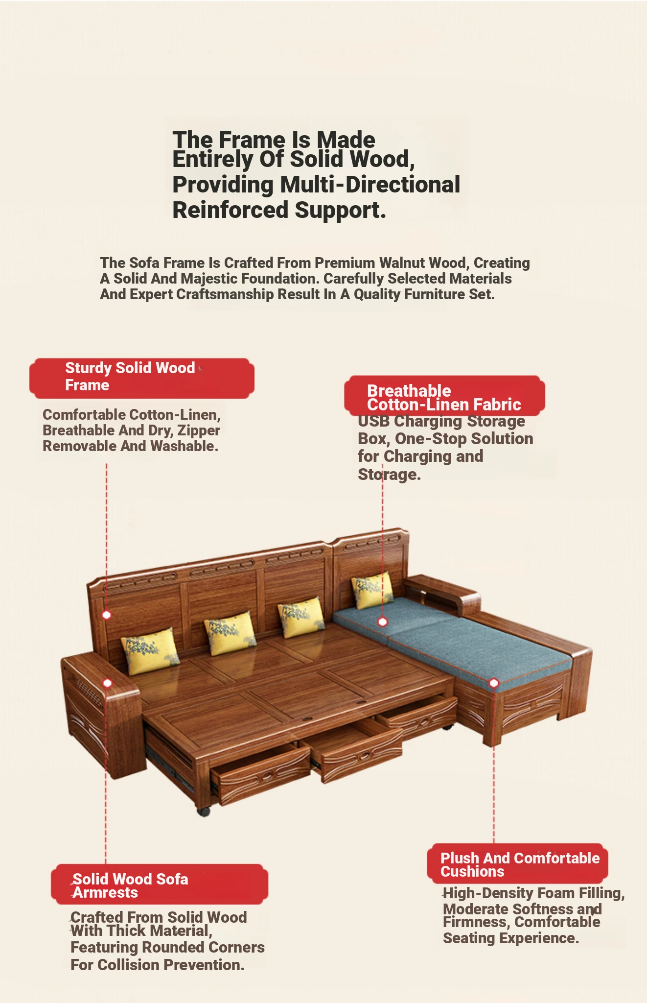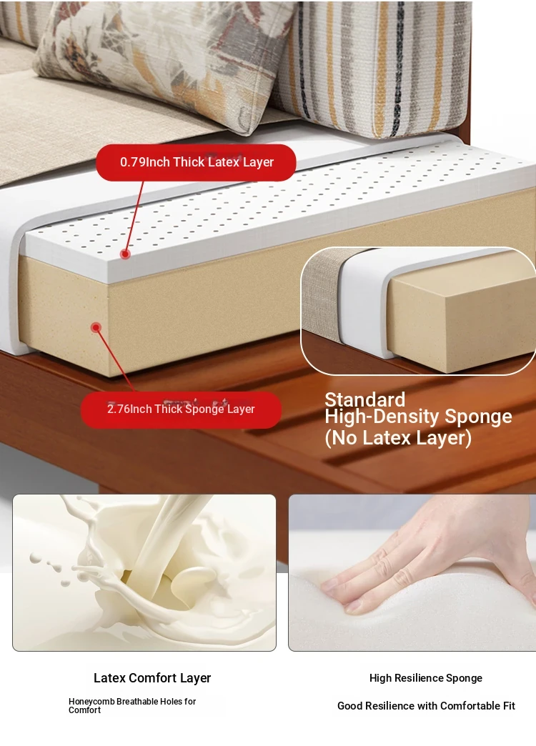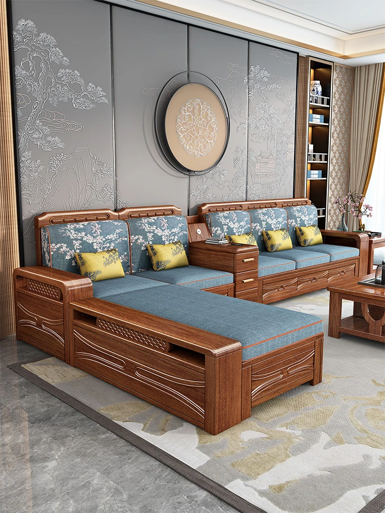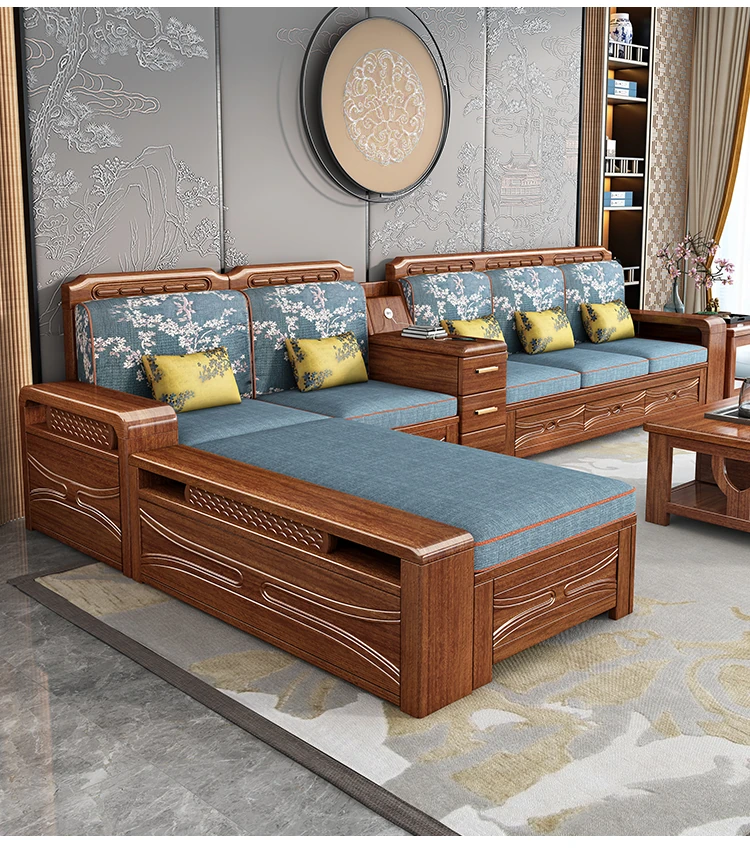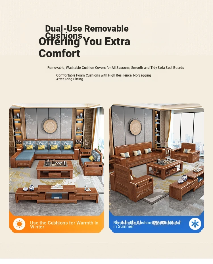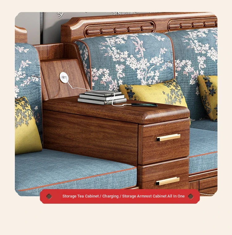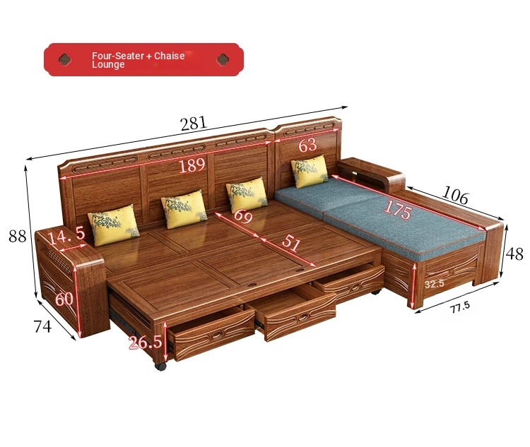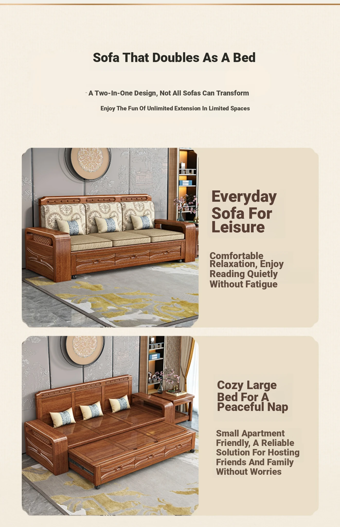 Luxury Foldable Sofa Bed in Golden Walnut Wood - Multi-functional Space-Saving Solution for Small Living Rooms - Stylish New Chinese Design with Ample Storage