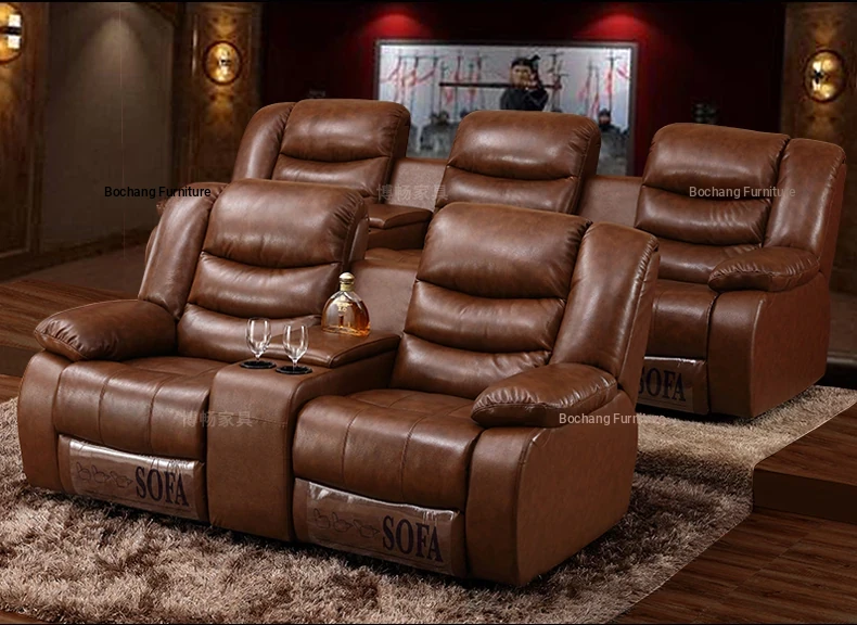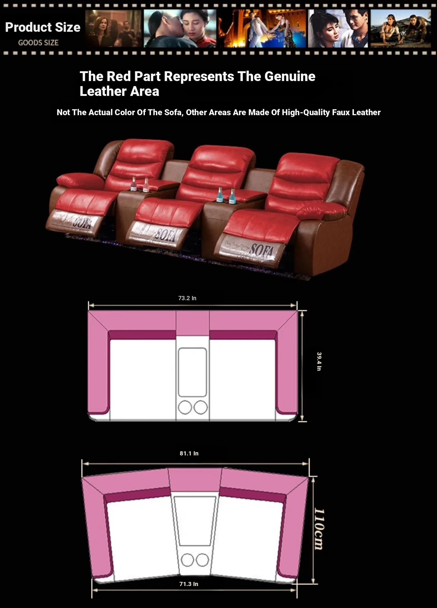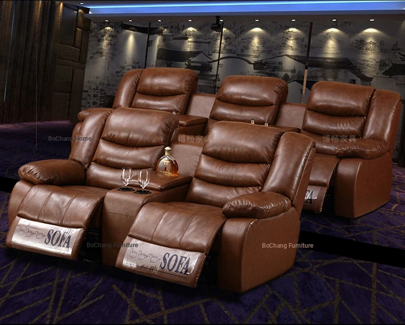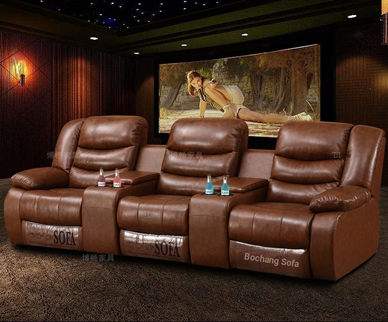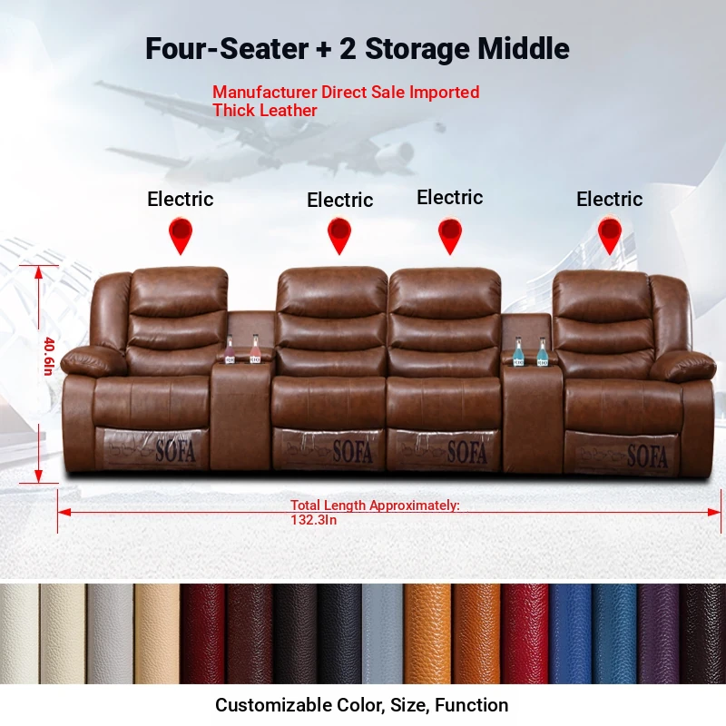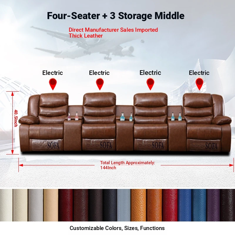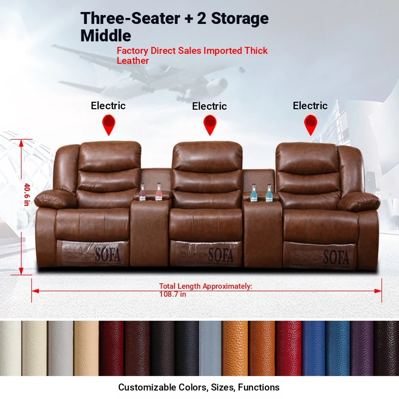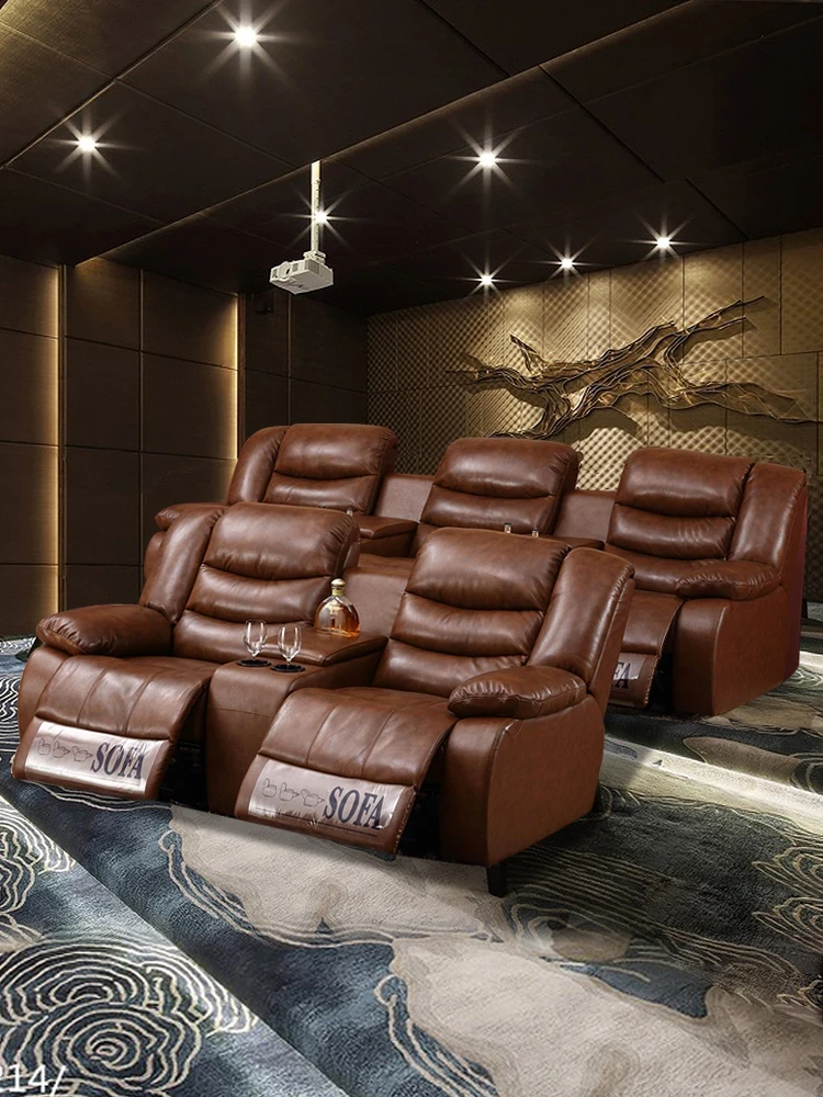 Luxury Home Theater Sofa - Premium Leather Electric Recliner for Multimedia Rooms, Featuring Space-Saving Design and Multi-Functional Comfort. Perfect for Movie Lovers!