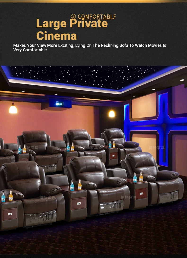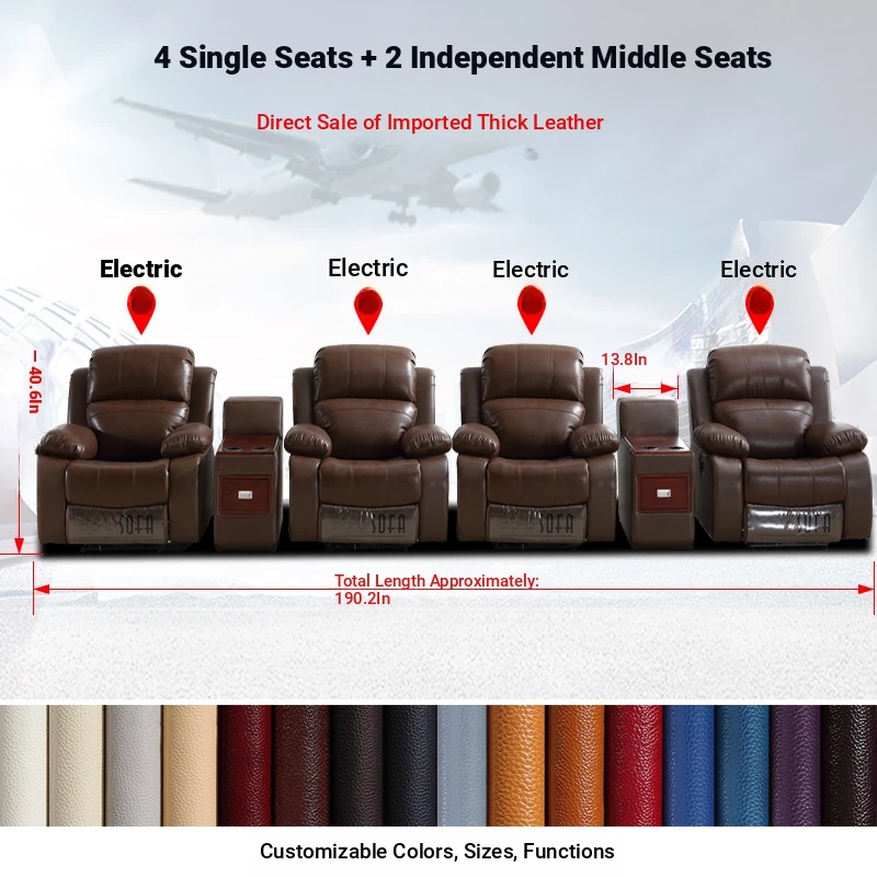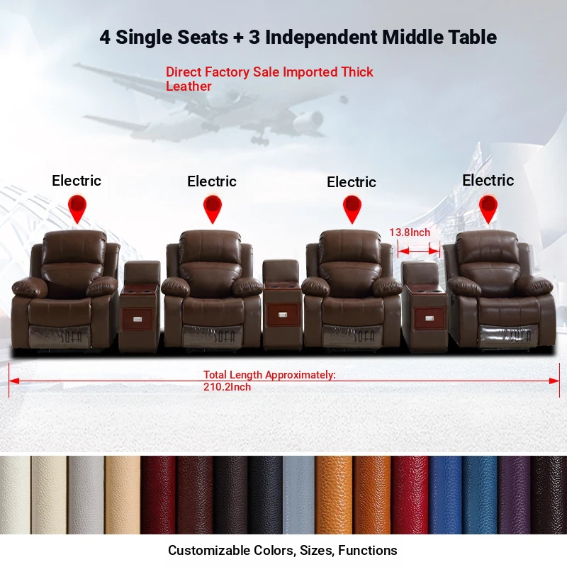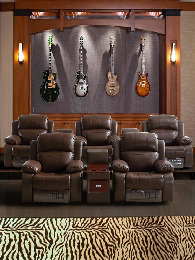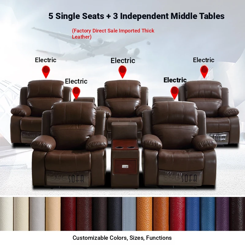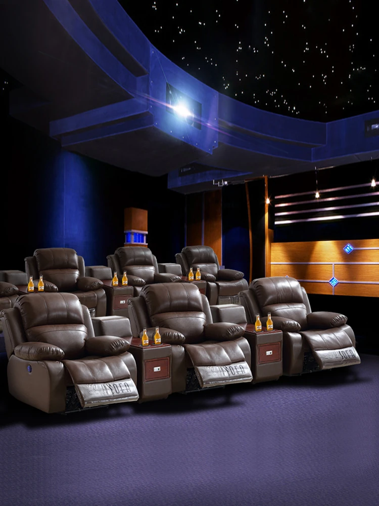 Luxury Leather Home Theater Sofa - Electric Multi-Functional Space Pod for Villa Media Room - Premium Top-Grain Cowhide for Ultimate Comfort and Style
