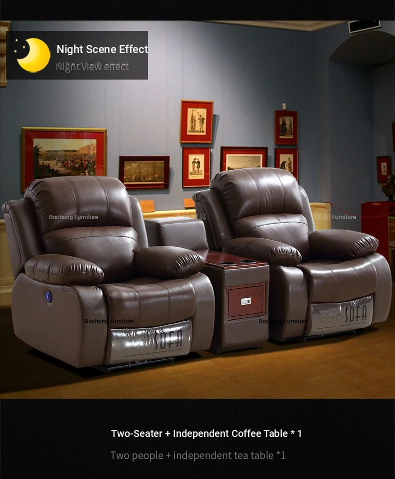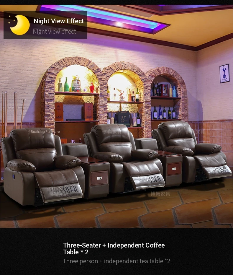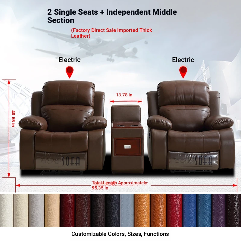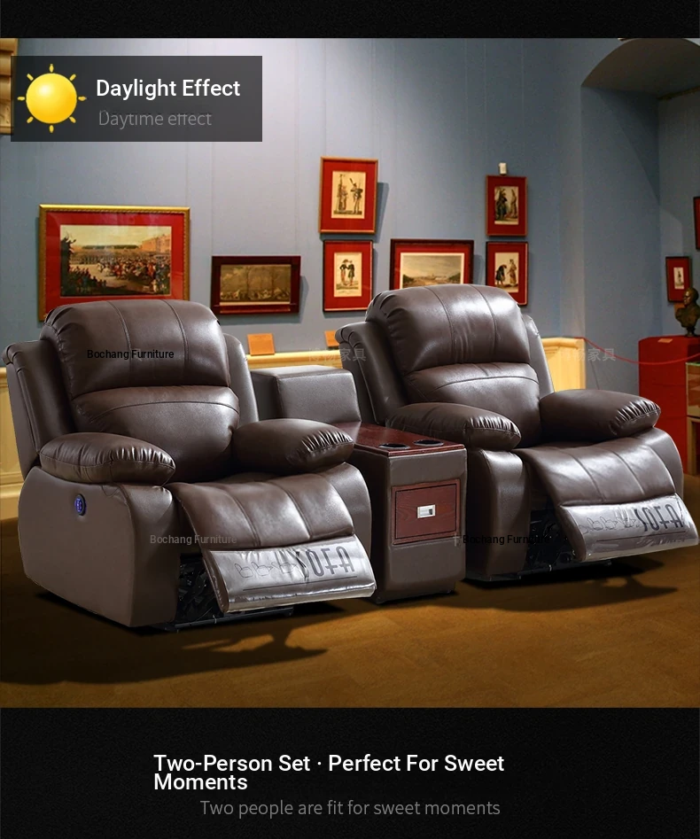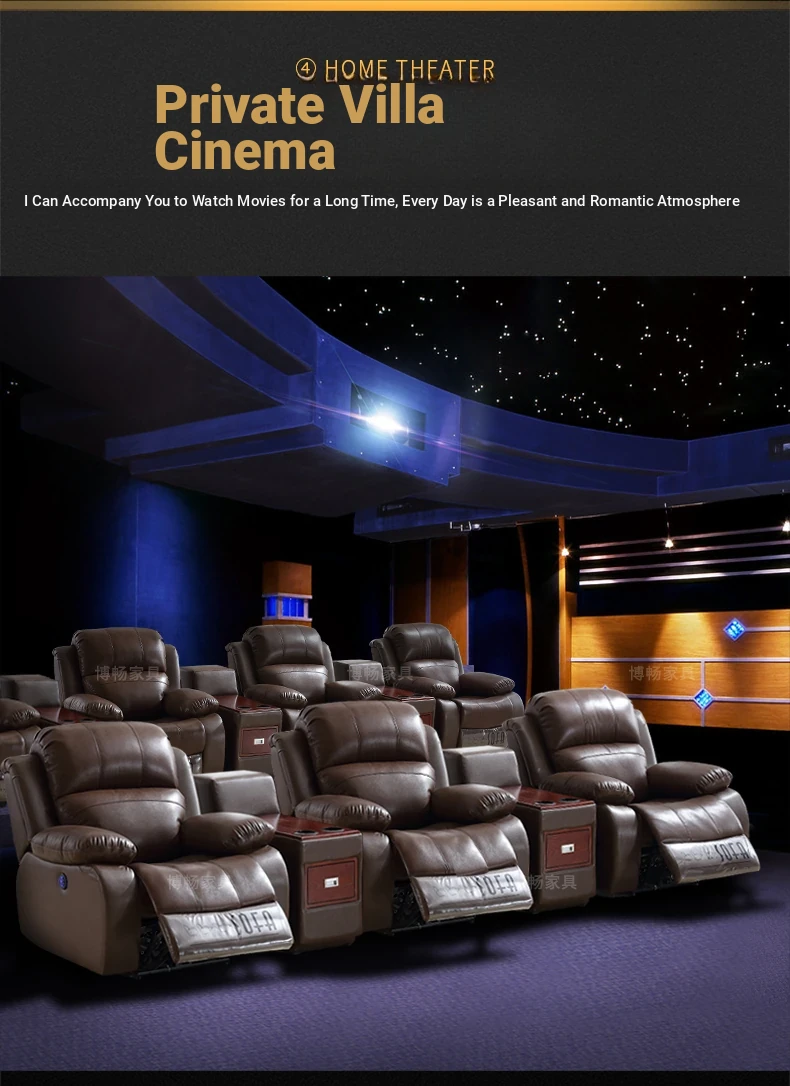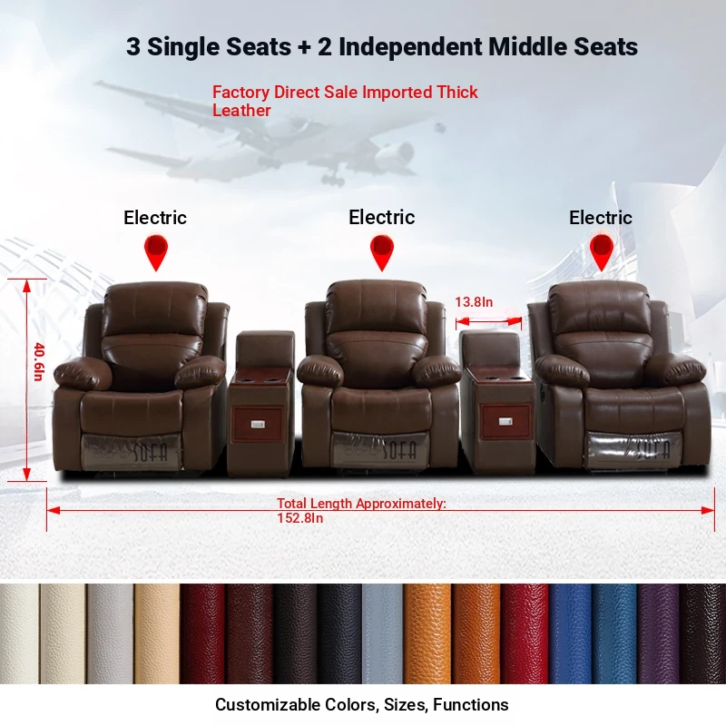 Luxury Leather Home Theater Sofa - Electric Multi-Functional Space Pod for Villa Media Room - Premium Top-Grain Cowhide for Ultimate Comfort and Style