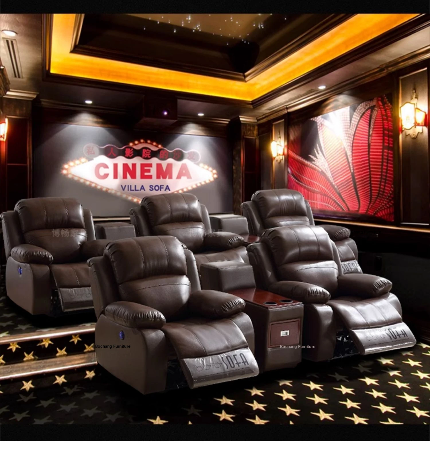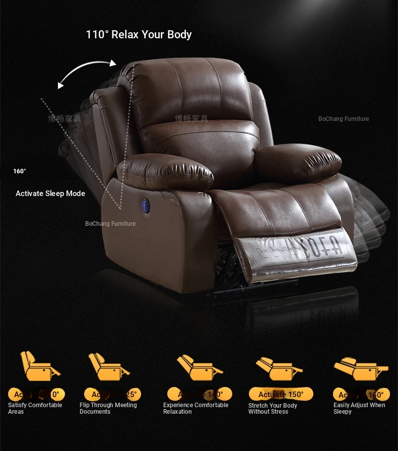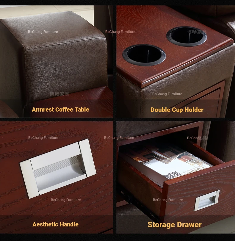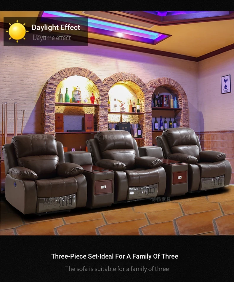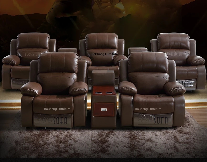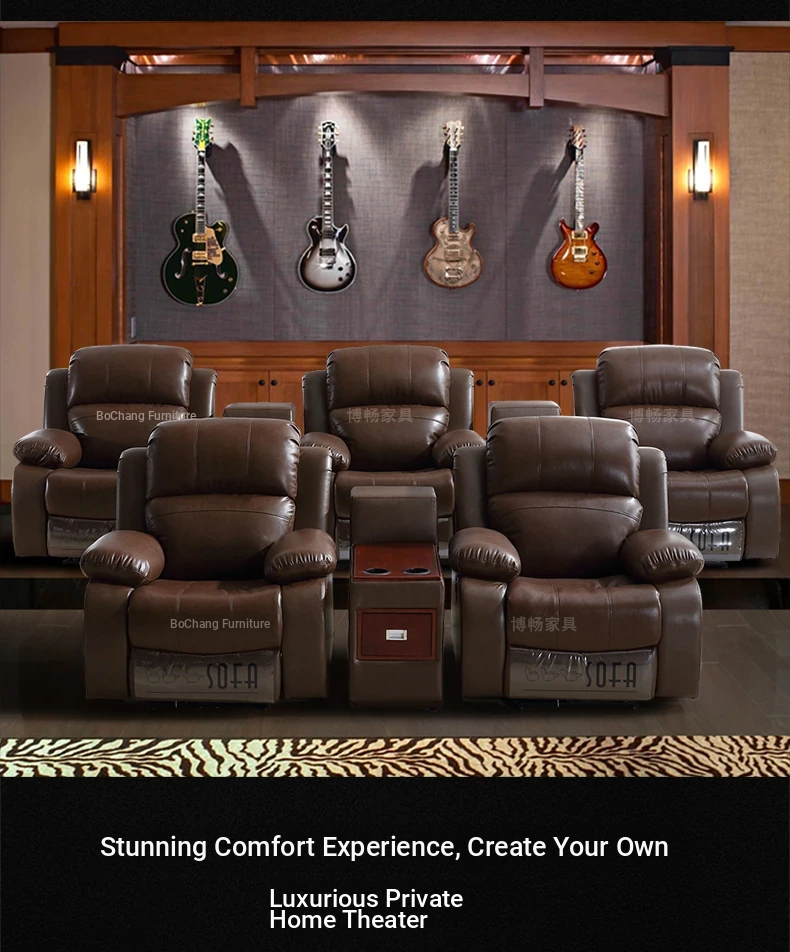 Luxury Leather Home Theater Sofa - Electric Multi-Functional Space Pod for Villa Media Room - Premium Top-Grain Cowhide for Ultimate Comfort and Style