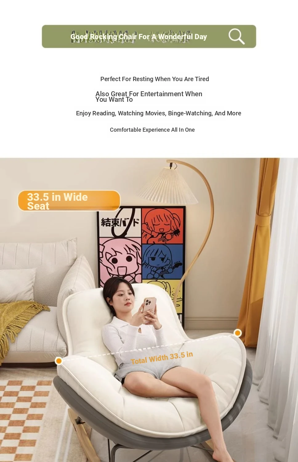 Luxury Penguin Rocking Chair - Direct Supply to Hong Kong & Macau, Perfect for Adults! Stylish Single Recliner Sofa for Home Leisure, Ideal for Bedroom Relaxation.