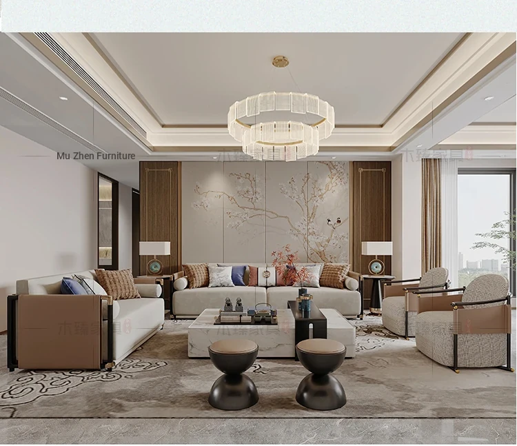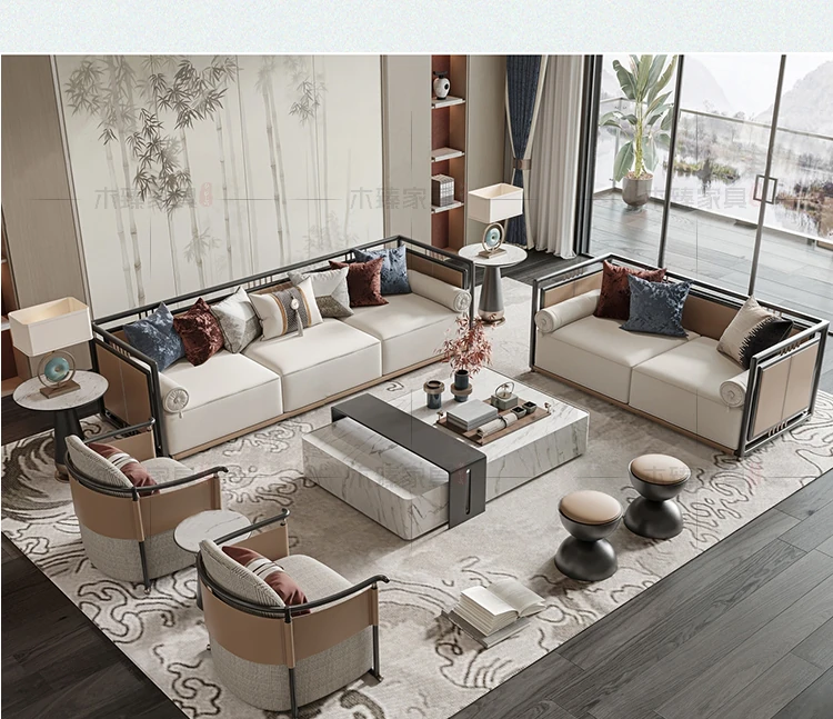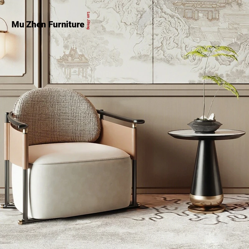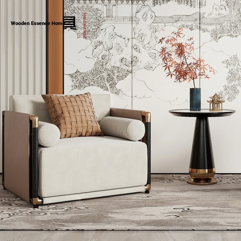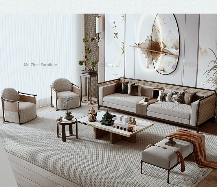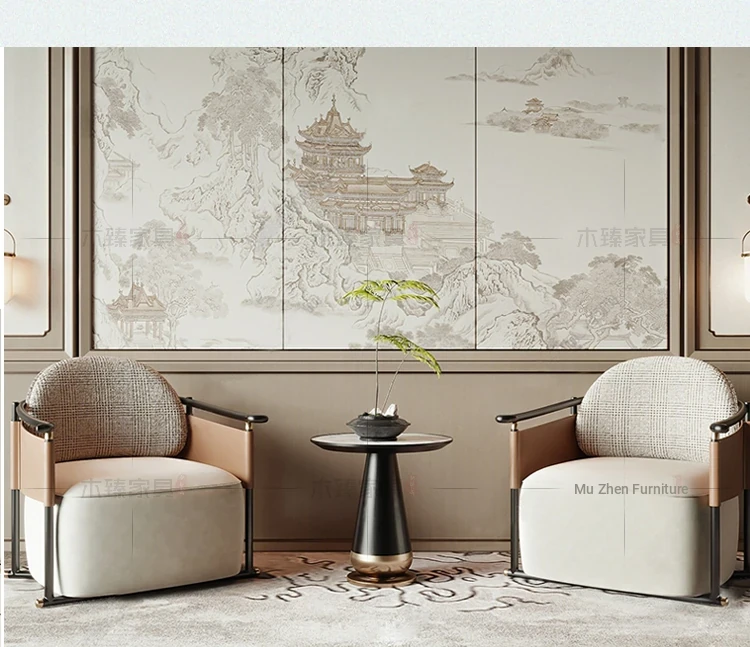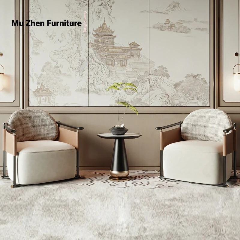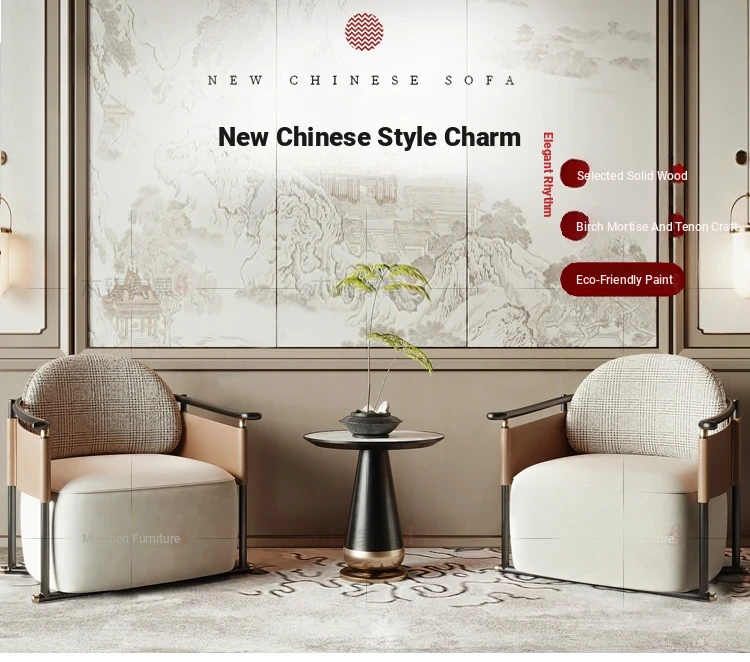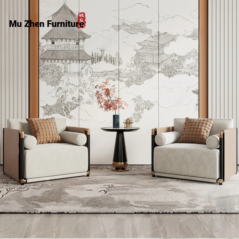 Minimalist Modern New Chinese Style Solid Wood Sofa Chair Set - Luxury Hotel Living Room Reception Lounge Chairs (3 Pieces)