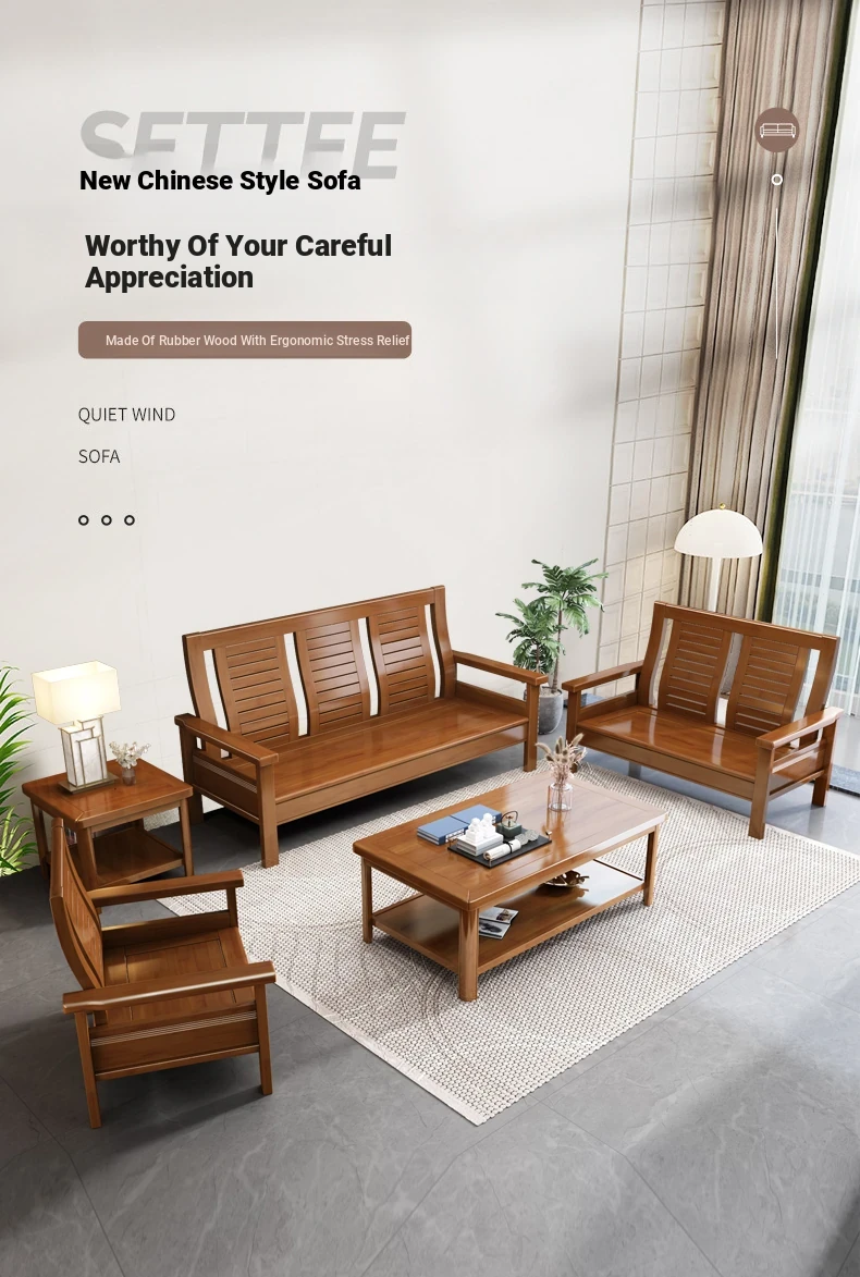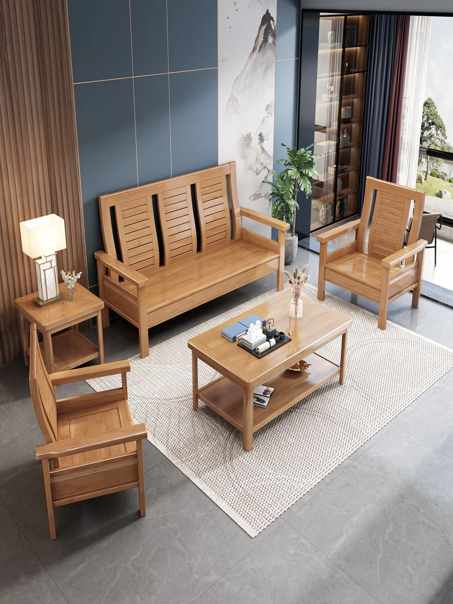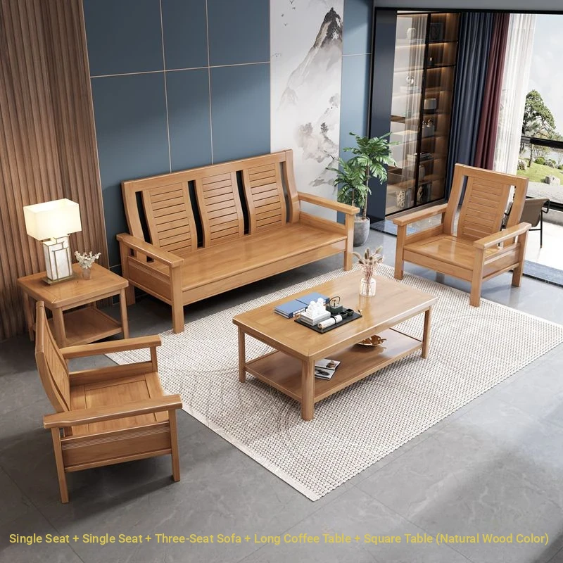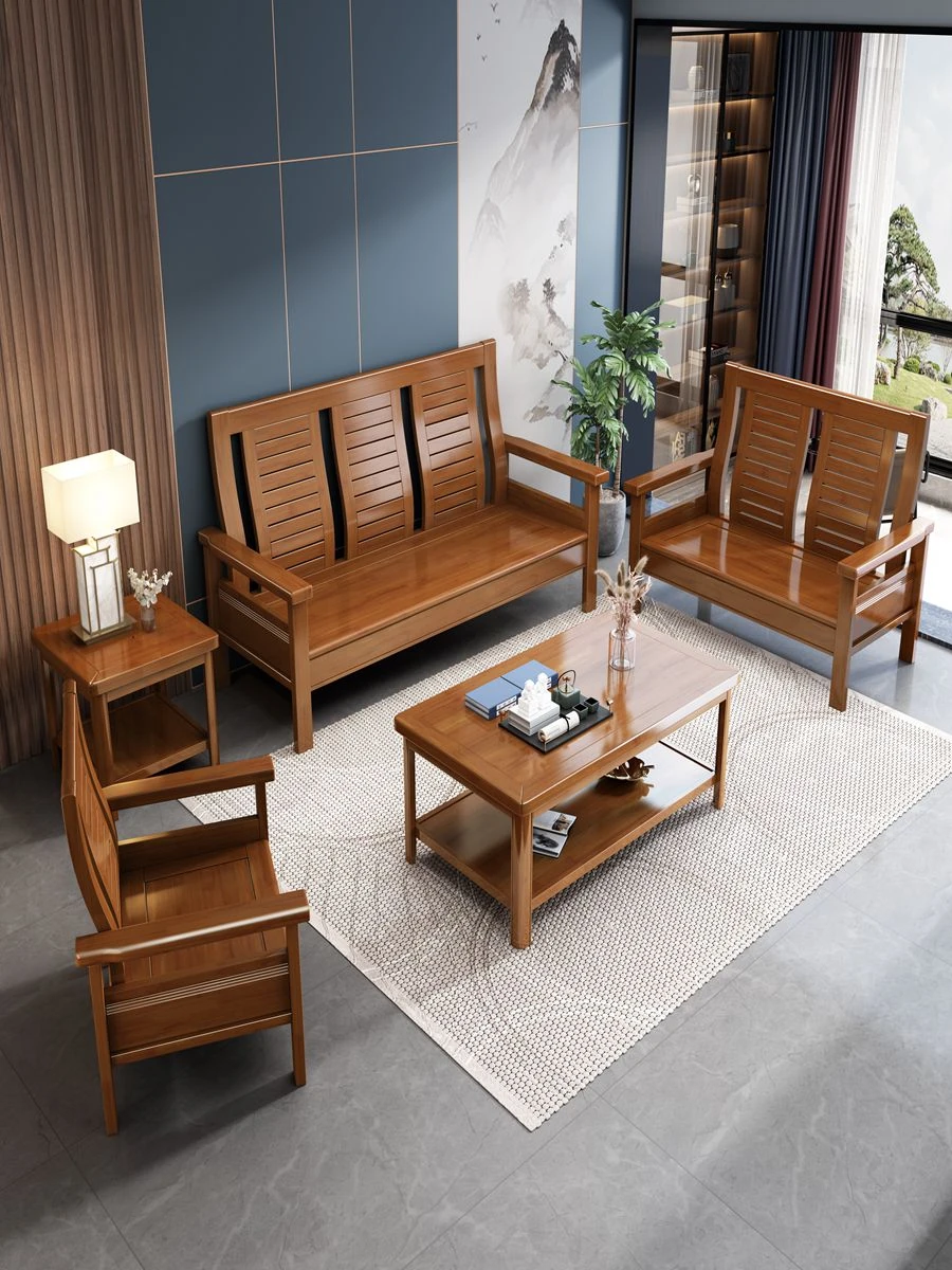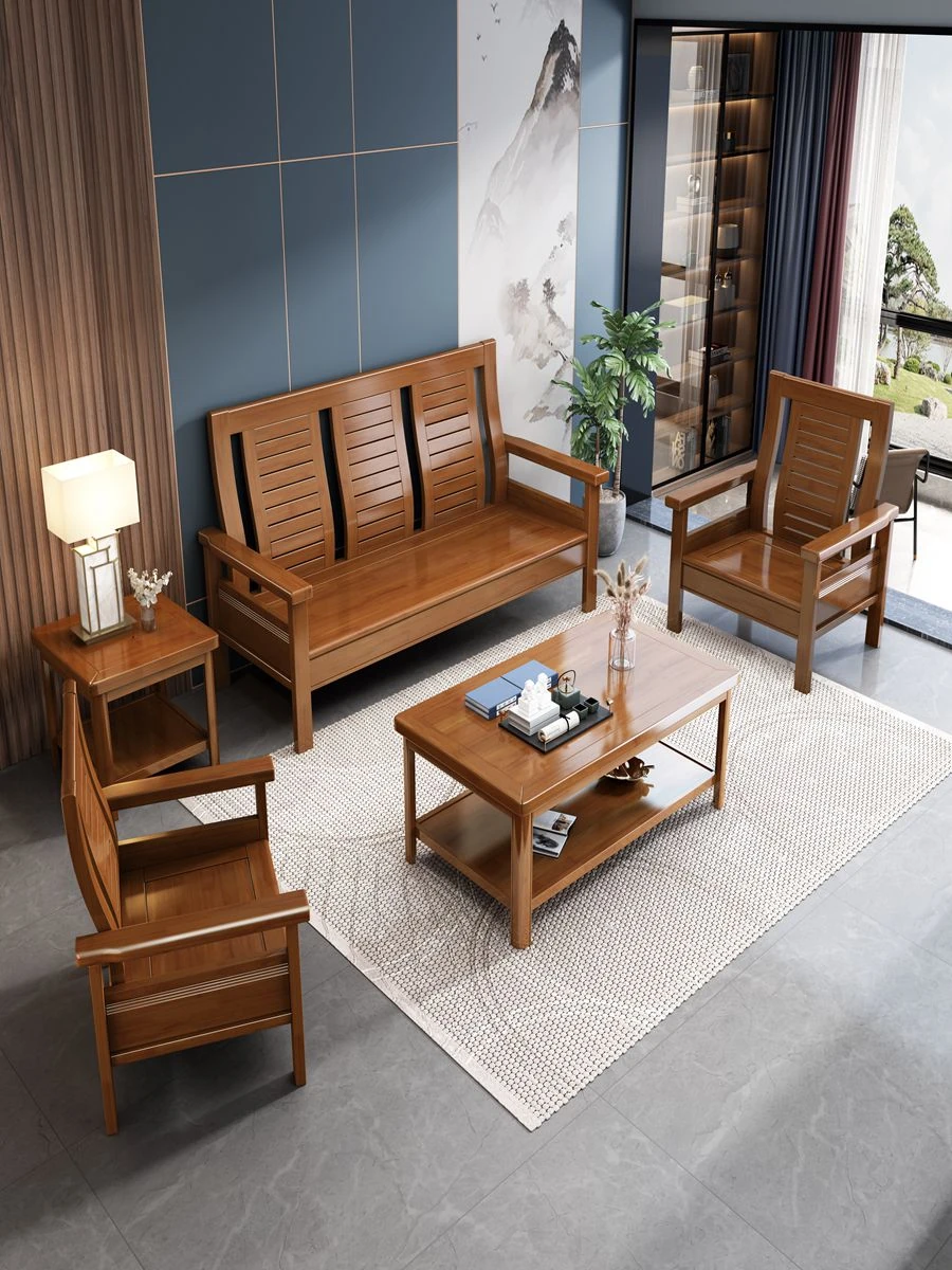 Modern Chinese Solid Wood Sofa Set for Small Living Rooms - Stylish 3-Seater, Versatile for All Seasons, Perfect for Offices and Cozy Spaces