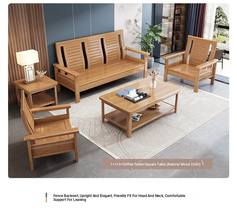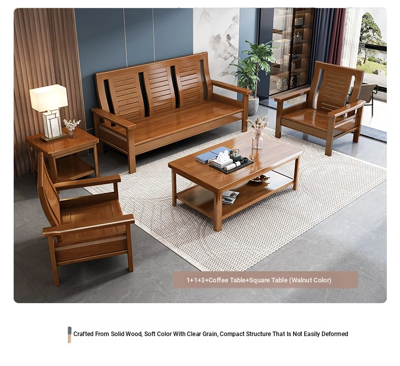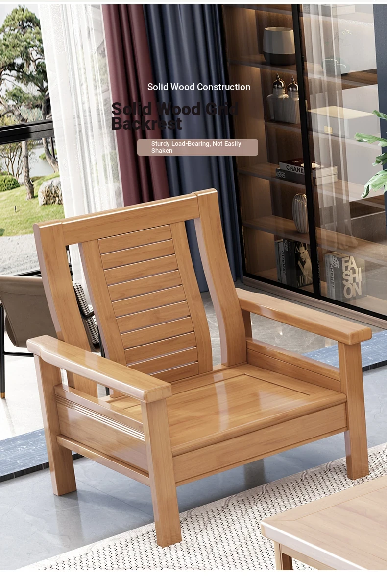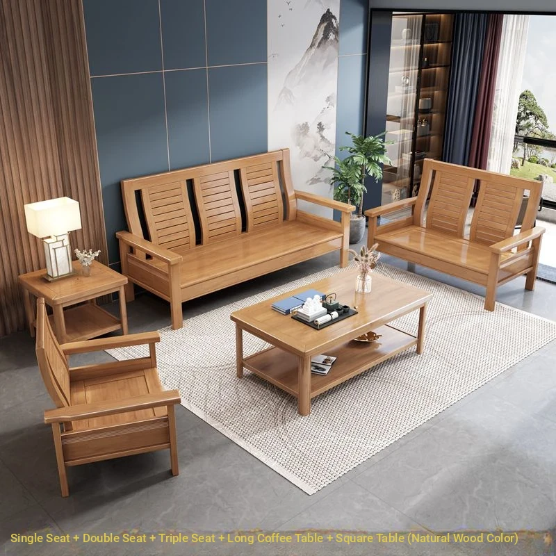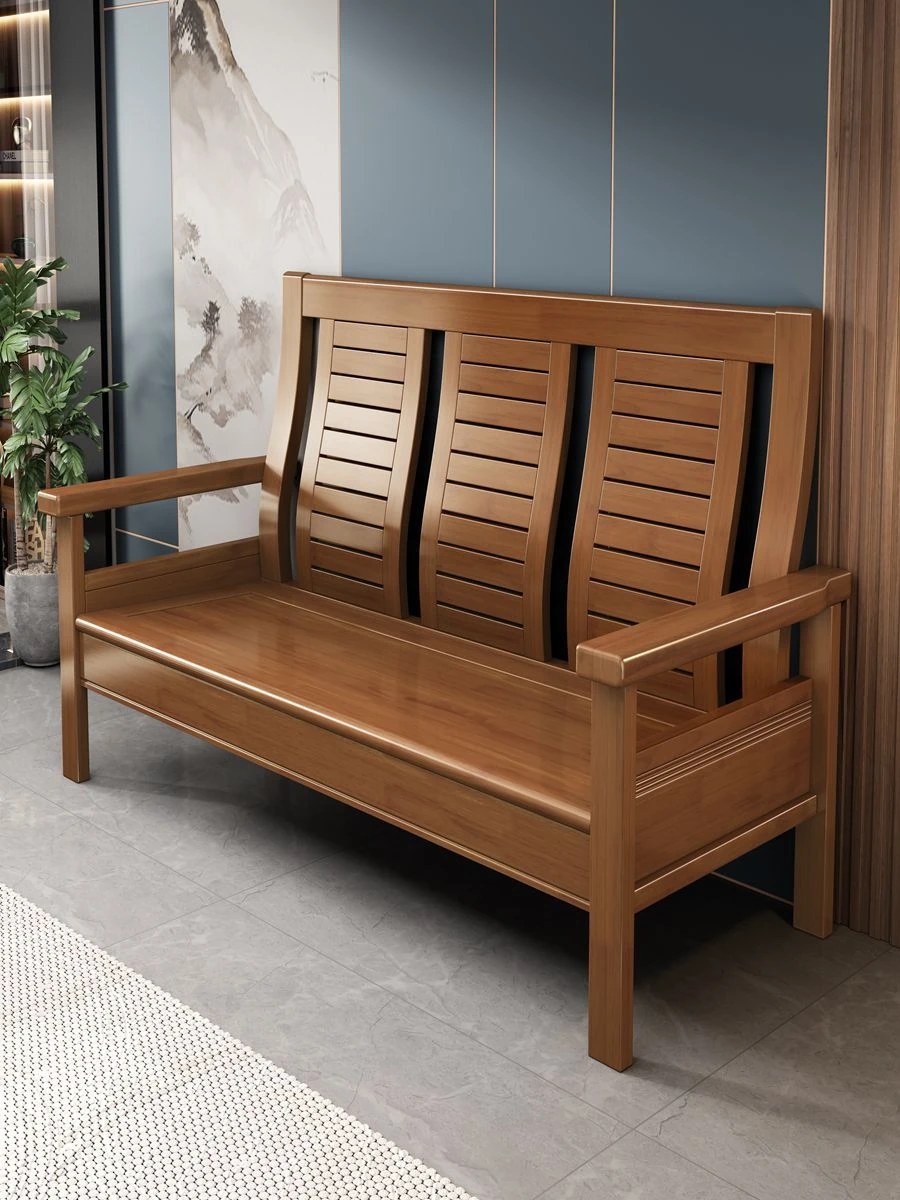 Modern Chinese Solid Wood Sofa Set for Small Living Rooms - Stylish 3-Seater, Versatile for All Seasons, Perfect for Offices and Cozy Spaces
