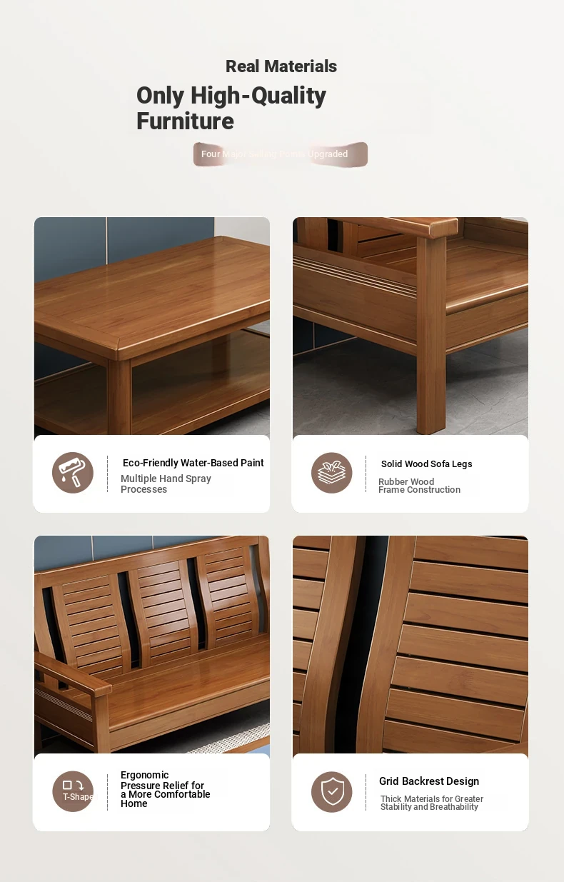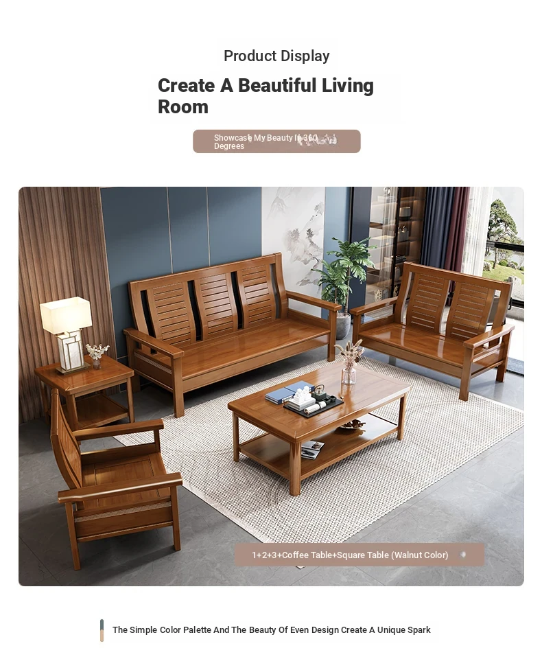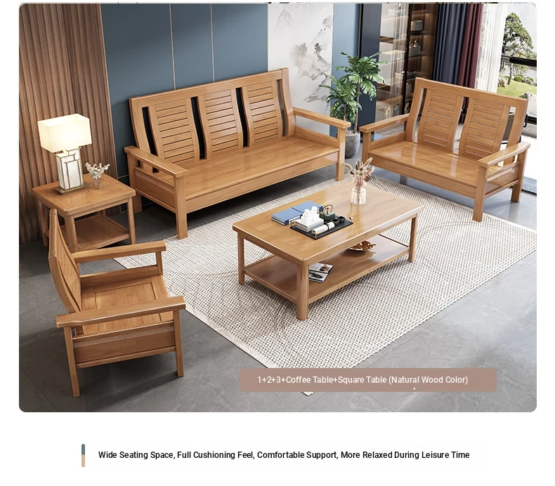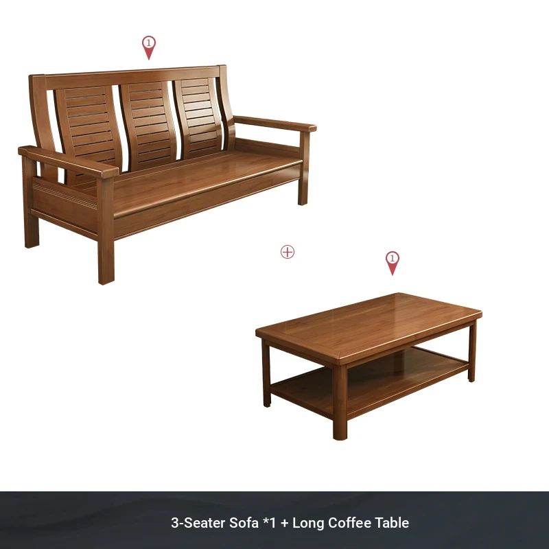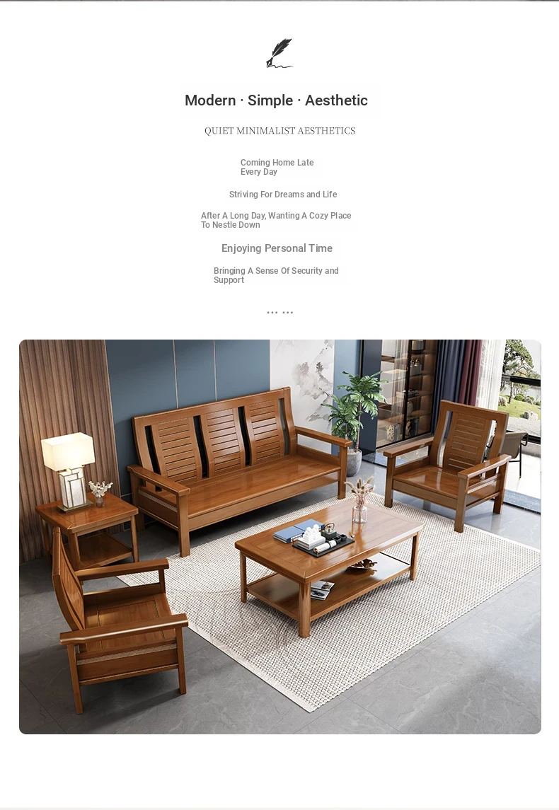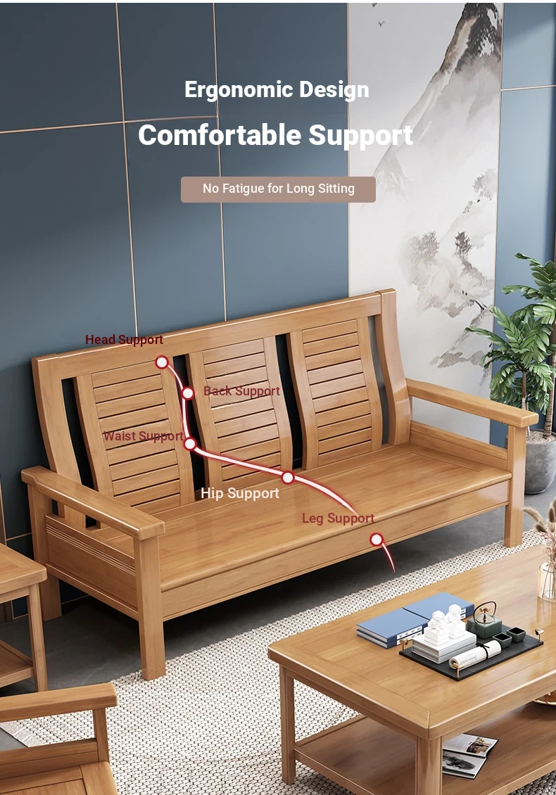 Modern Chinese Solid Wood Sofa Set for Small Living Rooms - Stylish 3-Seater, Versatile for All Seasons, Perfect for Offices and Cozy Spaces