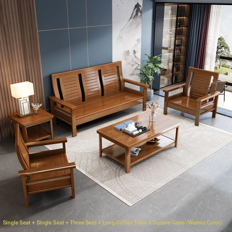 Single + Single + Three + Long Tea Table + Square Table (Walnut Color)