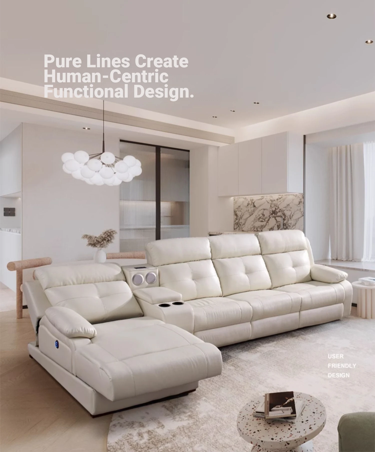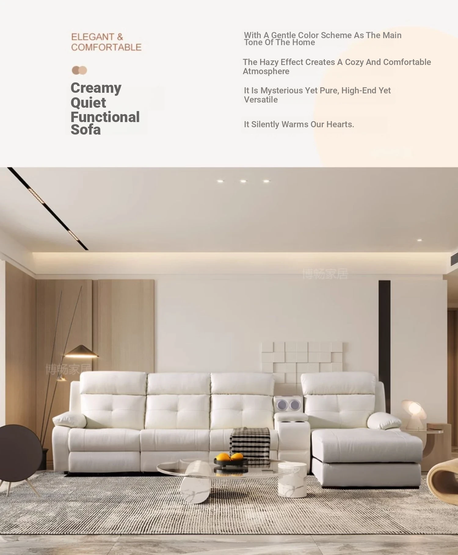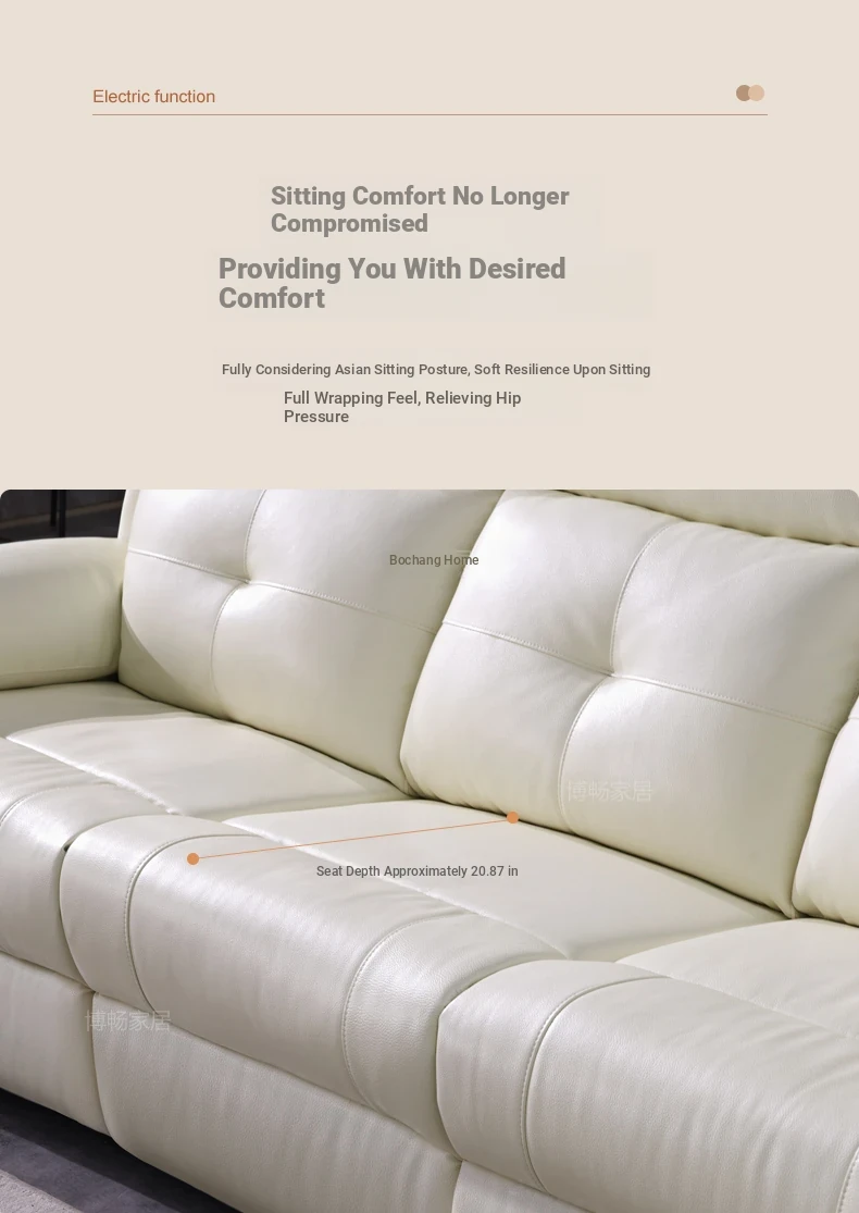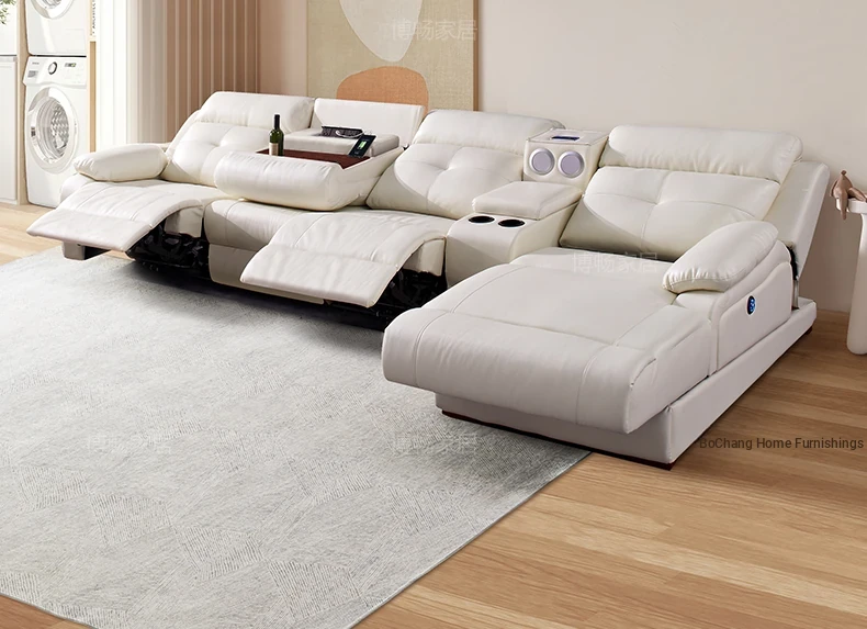 "Modern Cream-Colored Smart Multi-Functional Electric Recliner Sofa with Premium Leather - Elegant Design for Your Living Room"