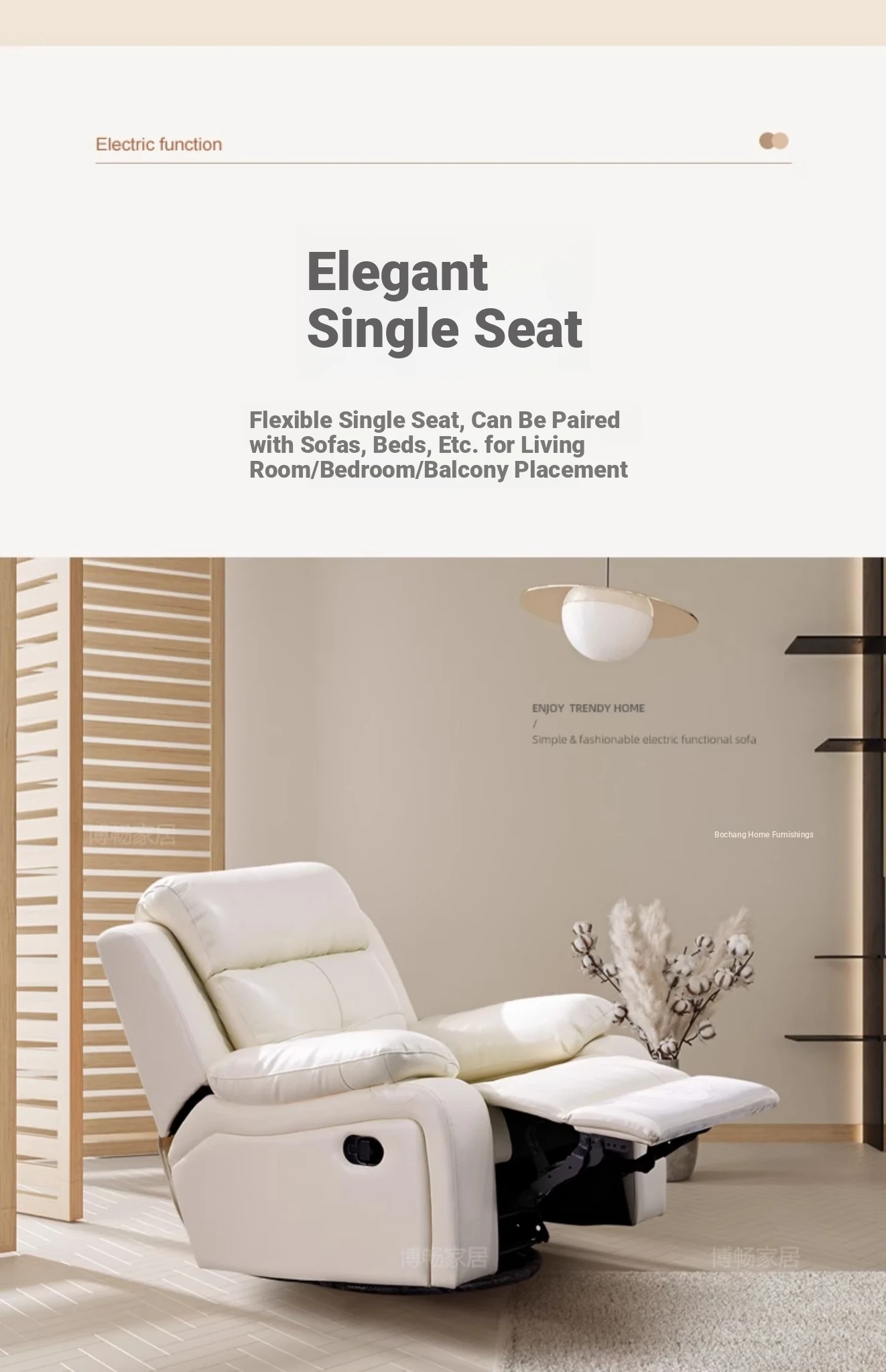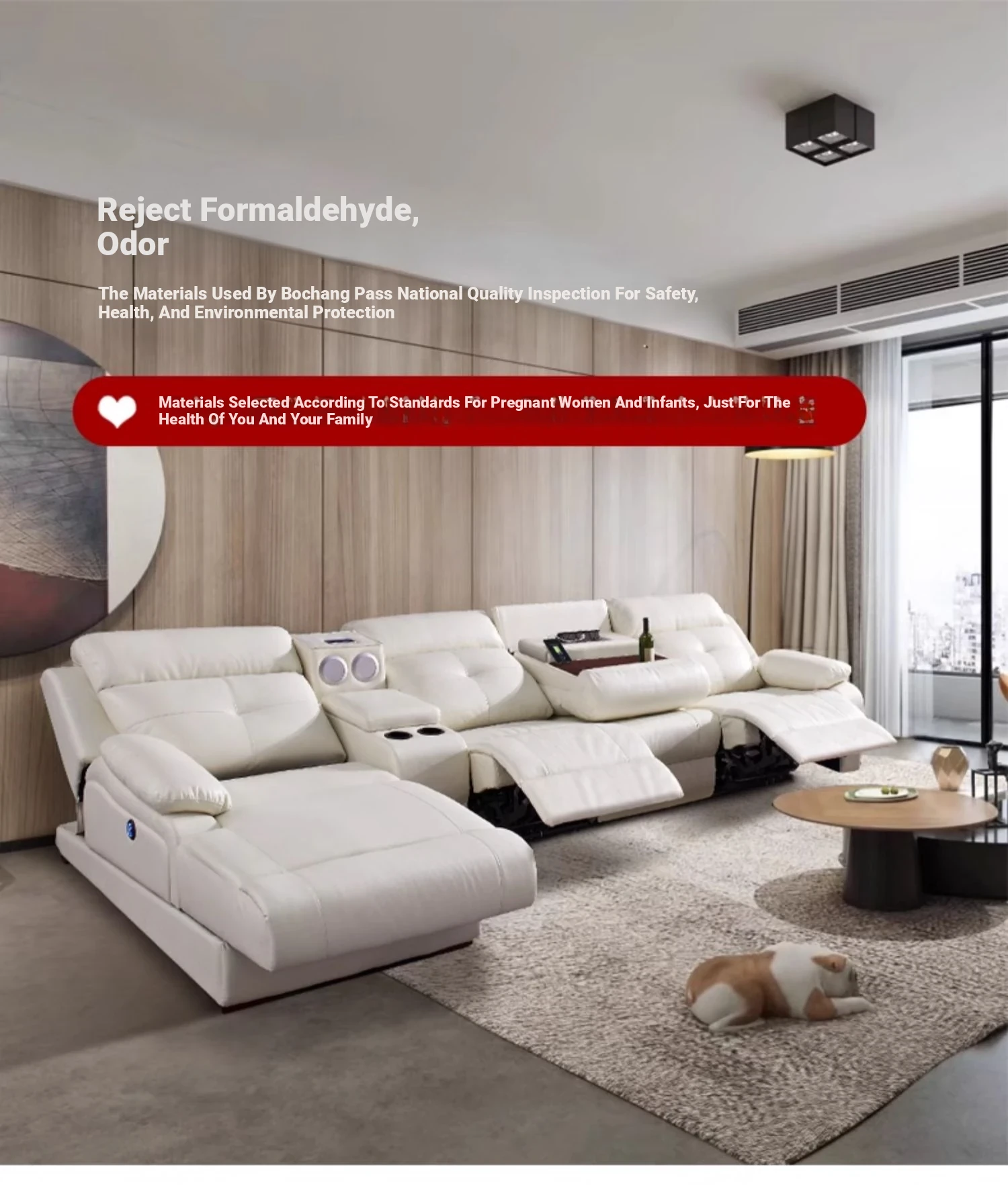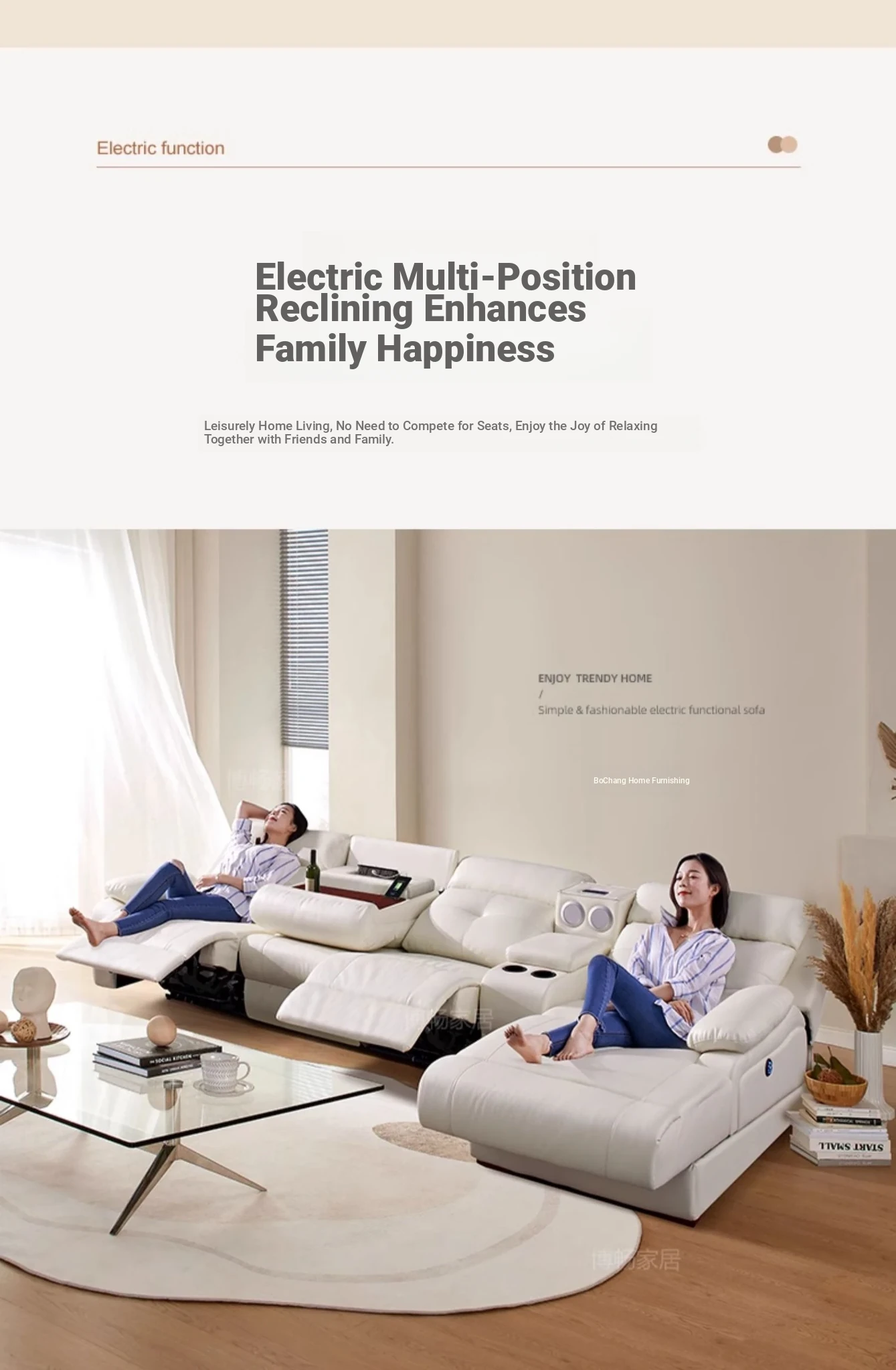 "Modern Cream-Colored Smart Multi-Functional Electric Recliner Sofa with Premium Leather - Elegant Design for Your Living Room"
