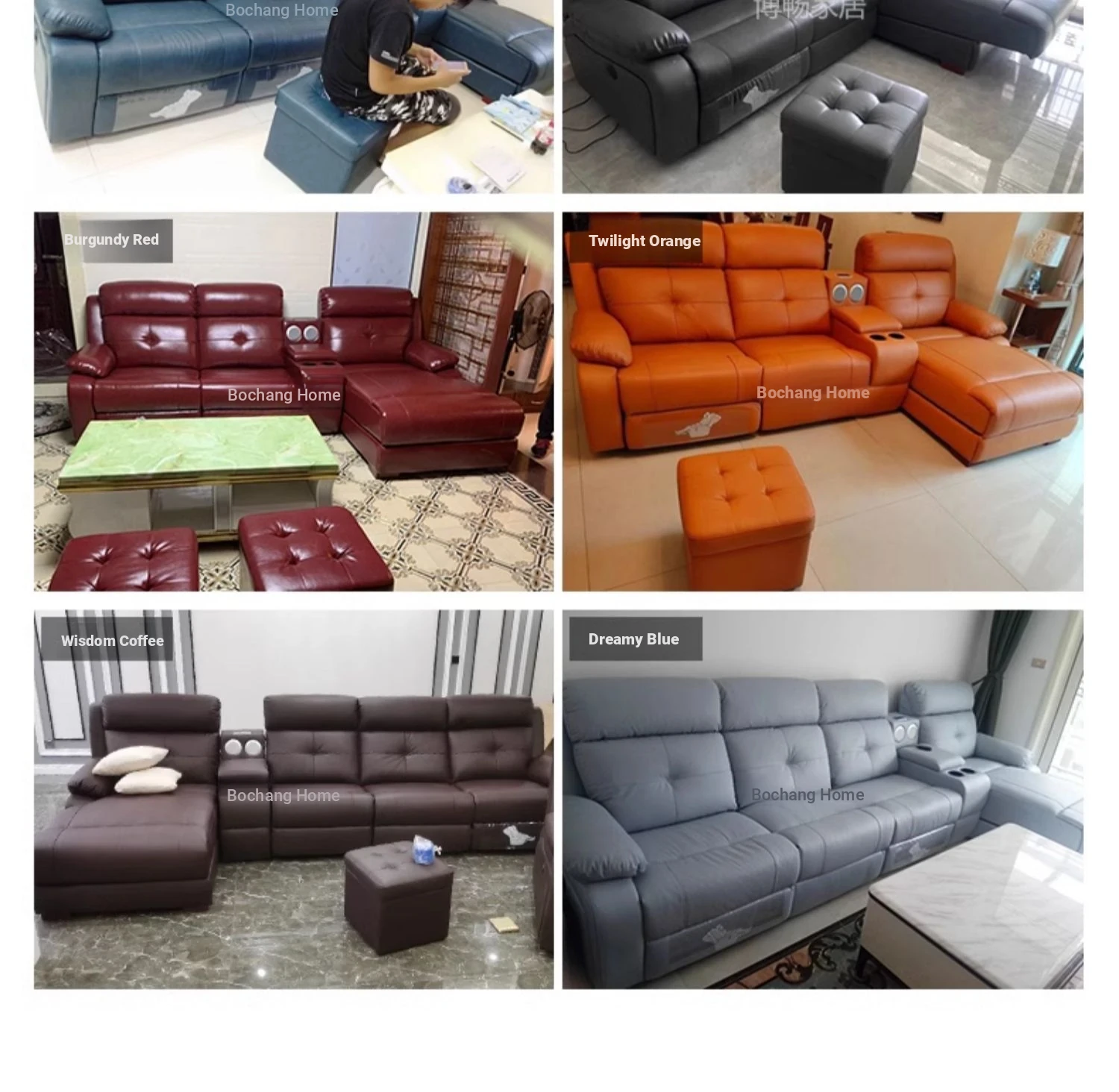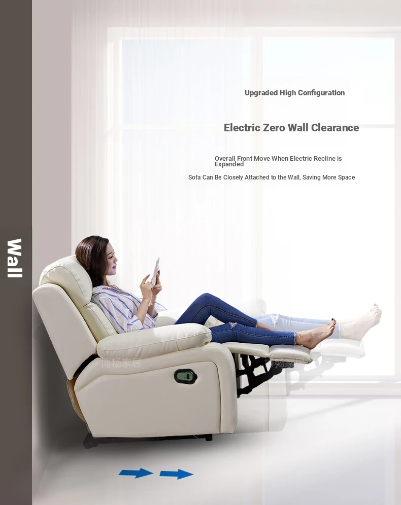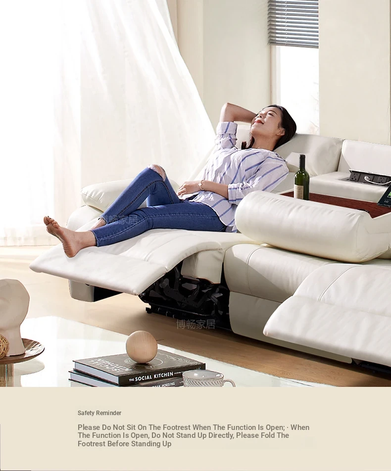 Italian cowhide [Electric + middle backrest tea table on both sides of three seats] is about 96.85 ins
