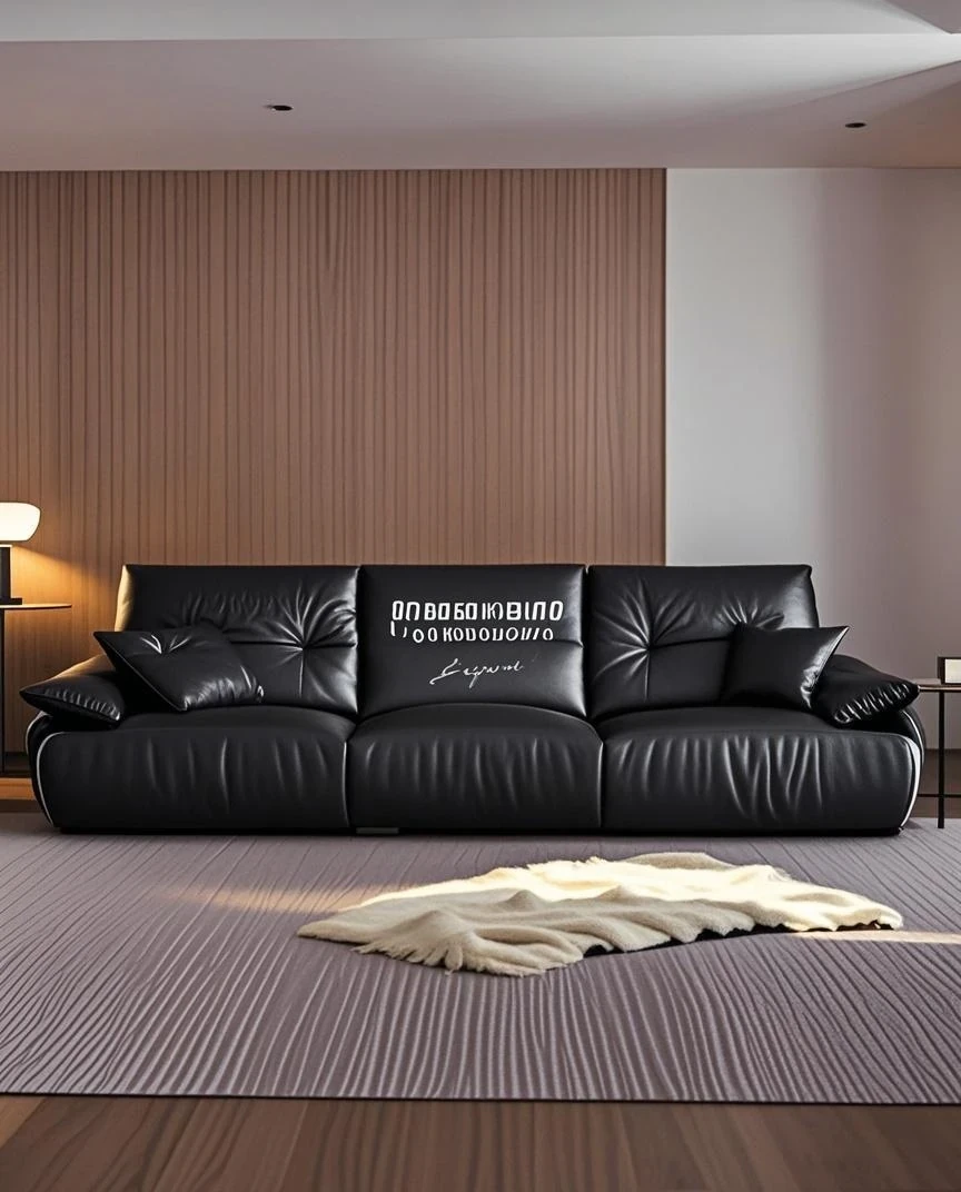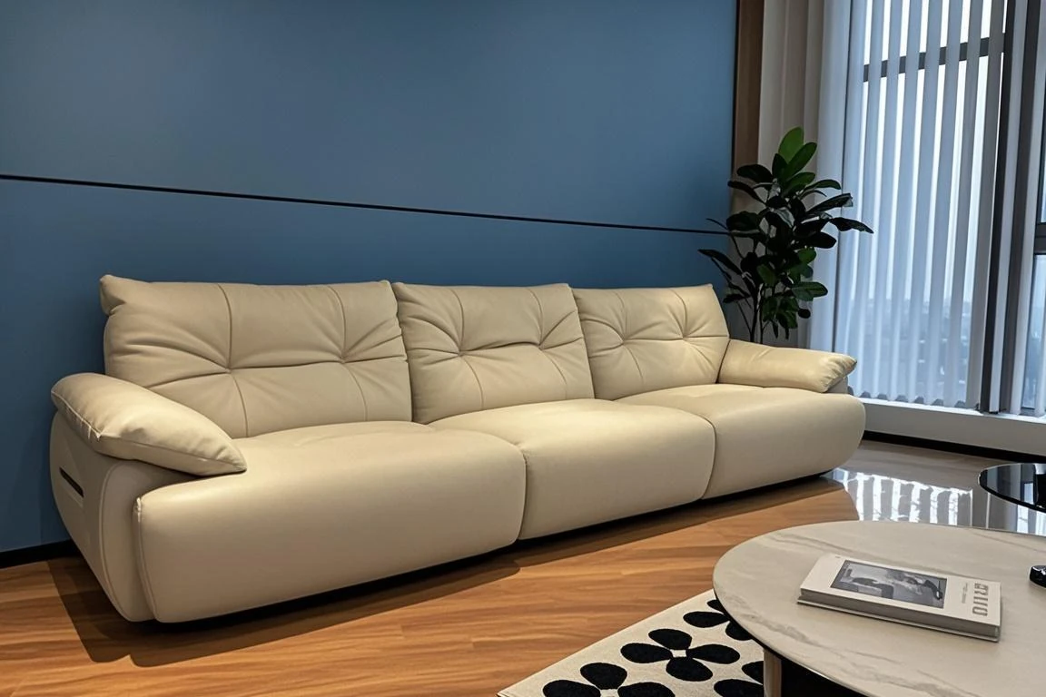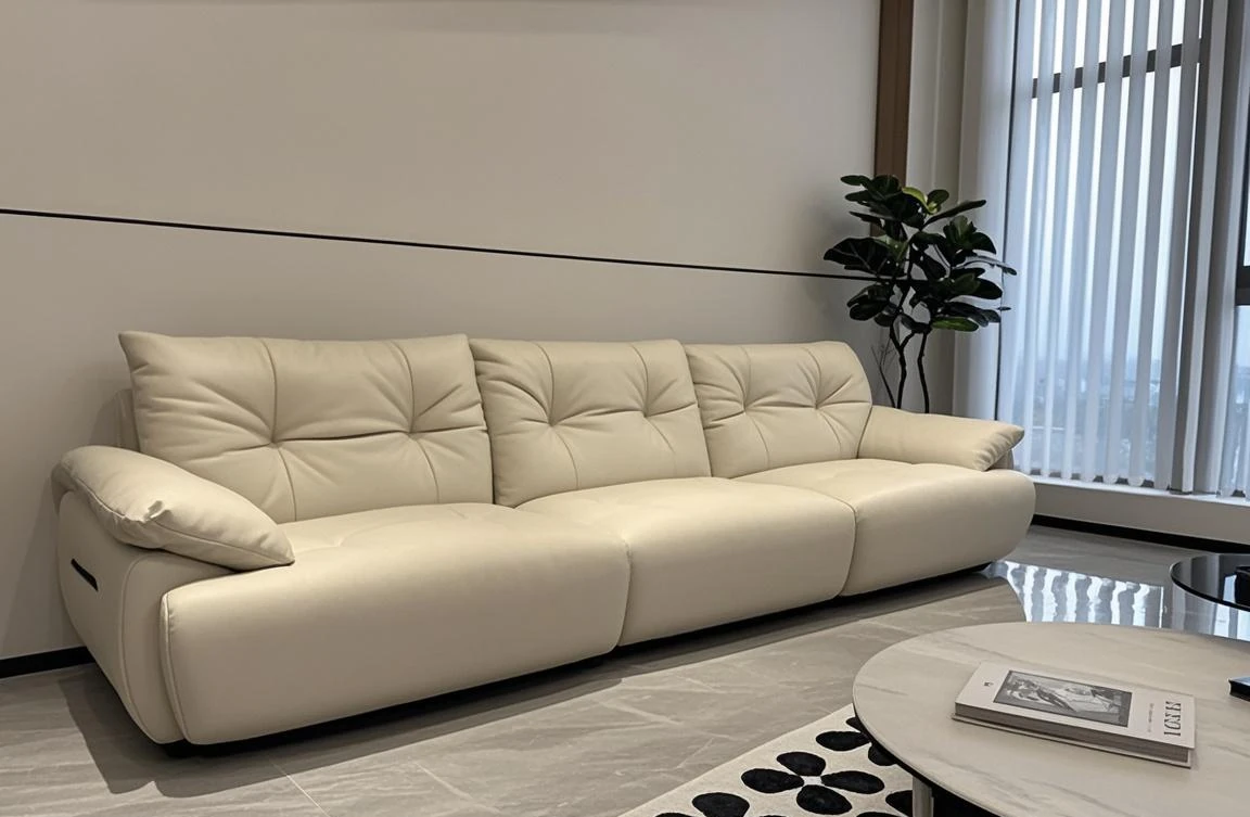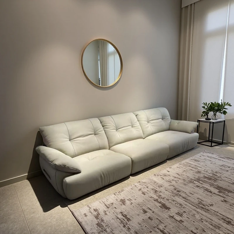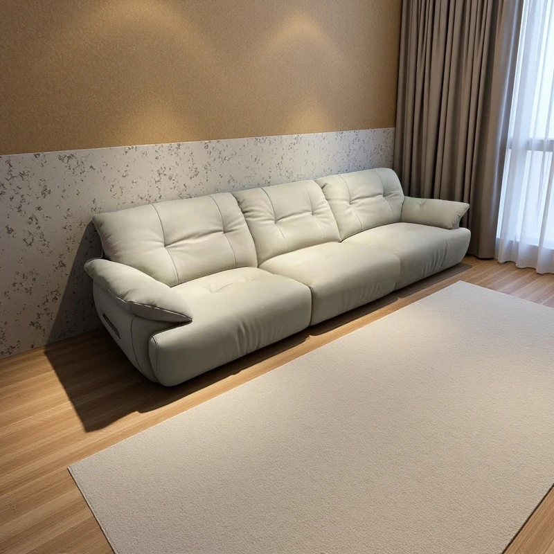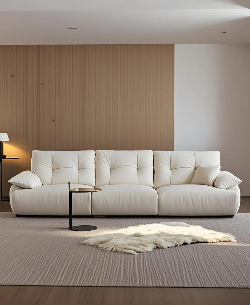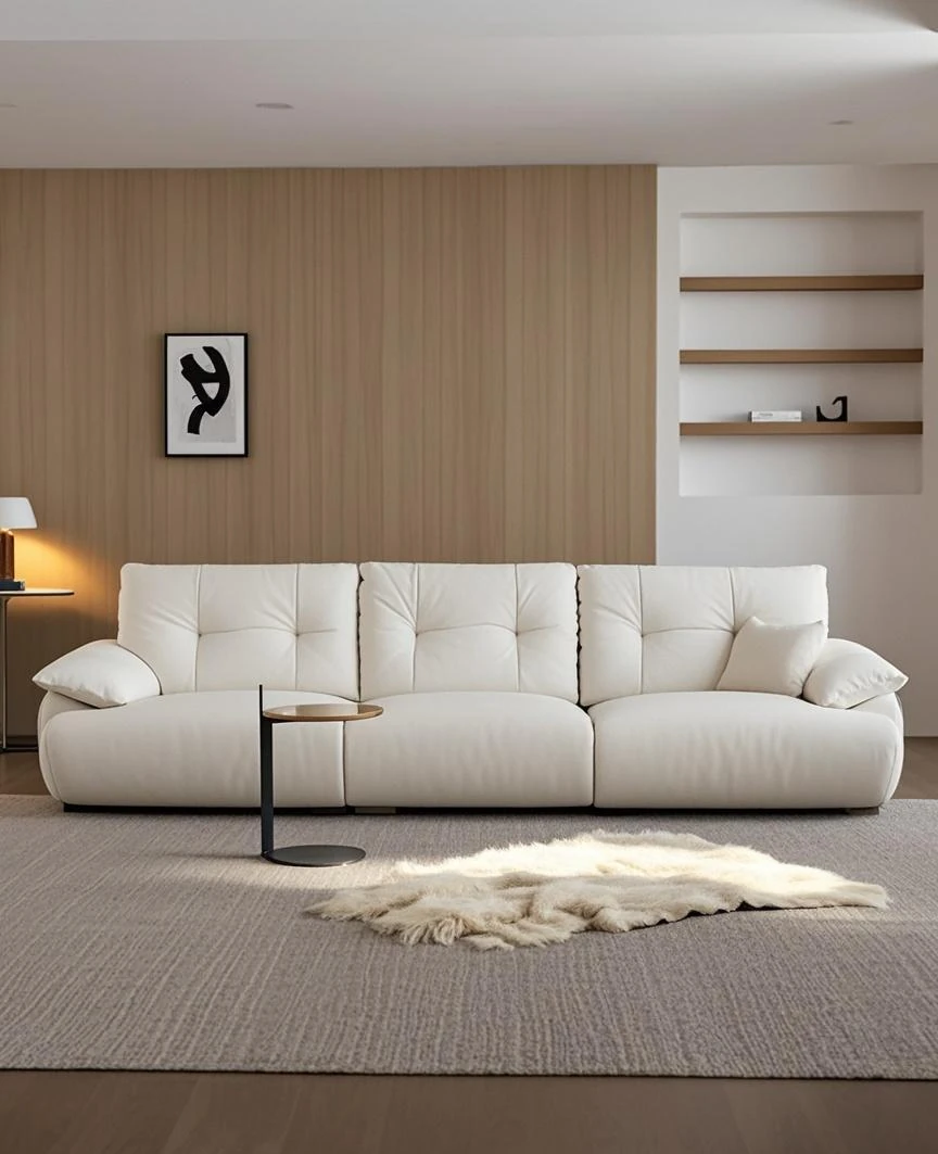 "Modern Minimalist Italian Genuine Leather Sofa - Creamy White Cloud Design for Elegant Living Rooms"