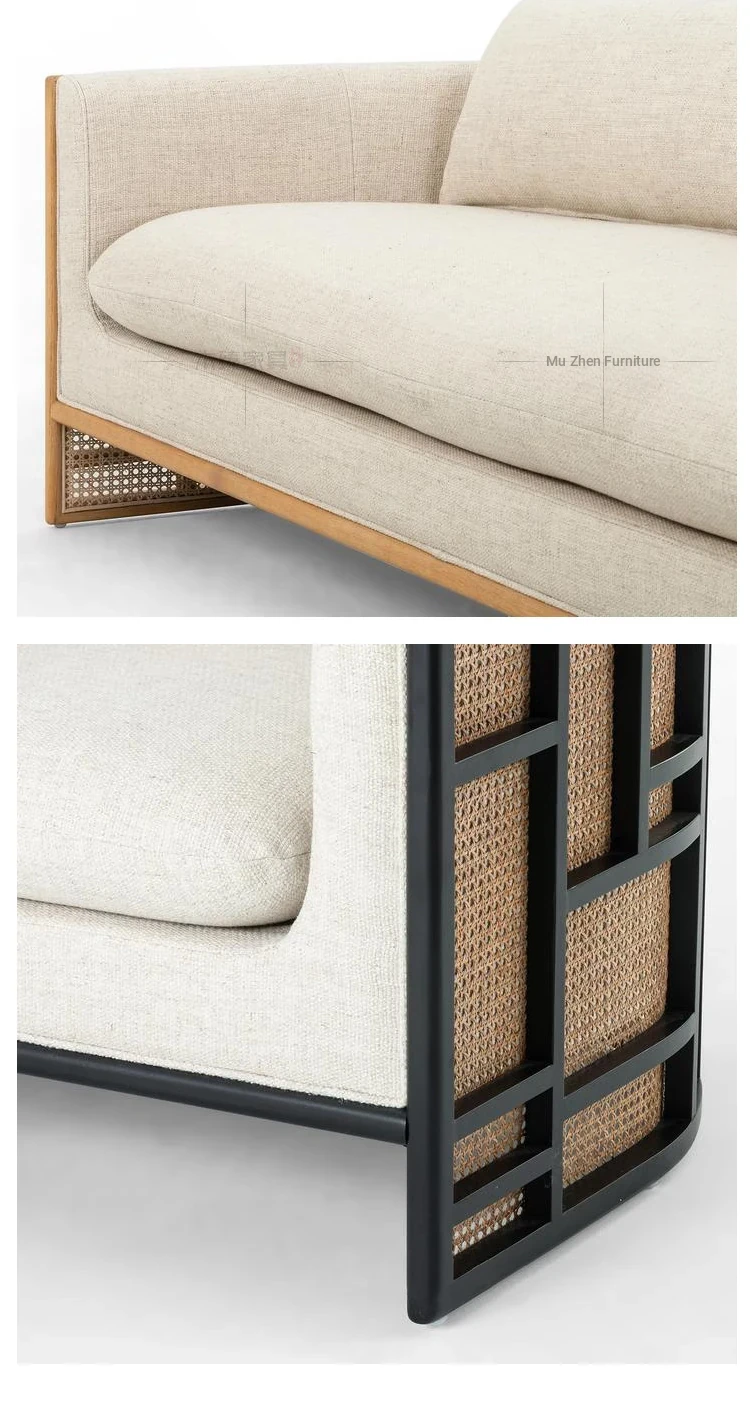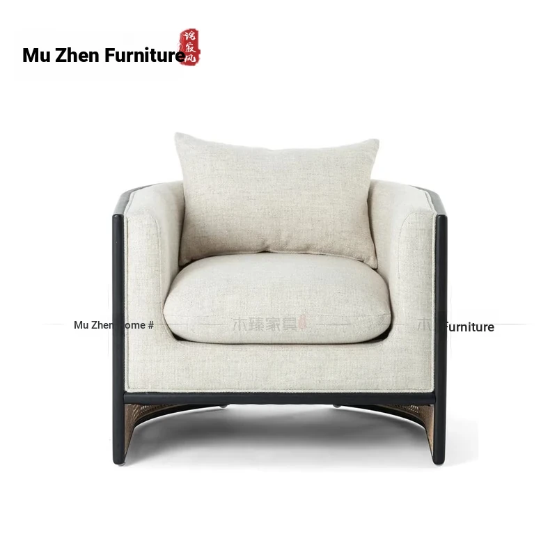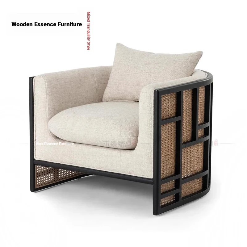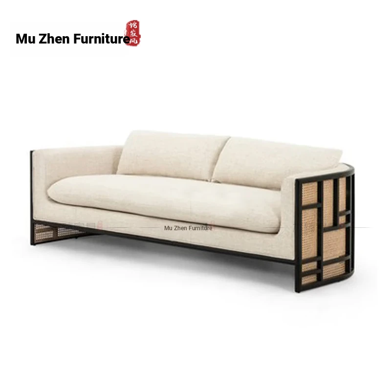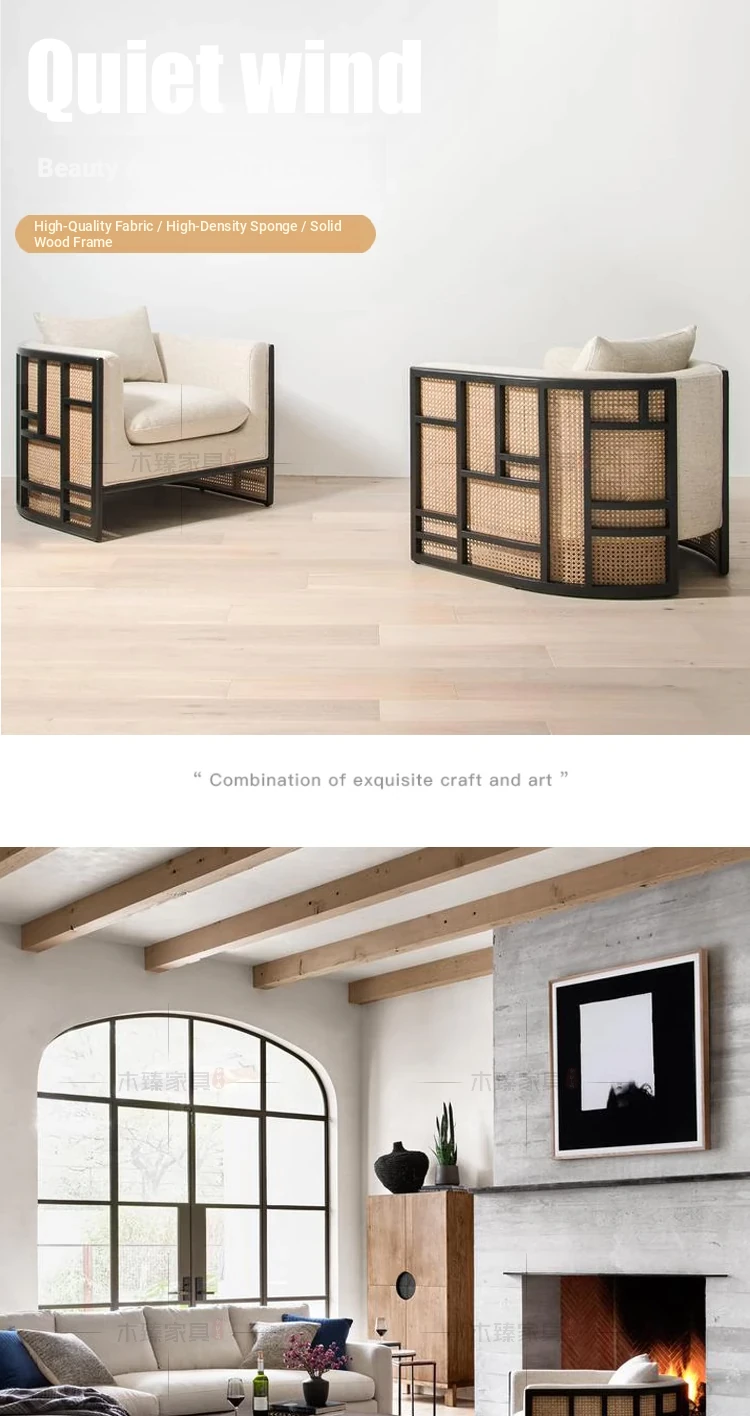 Modern Minimalist New Chinese Solid Wood Sofa Set - Perfect for Showrooms, Hotels, and Guesthouses. Southeast Asian Natural Rattan Furniture in Elegant Wood Finish.