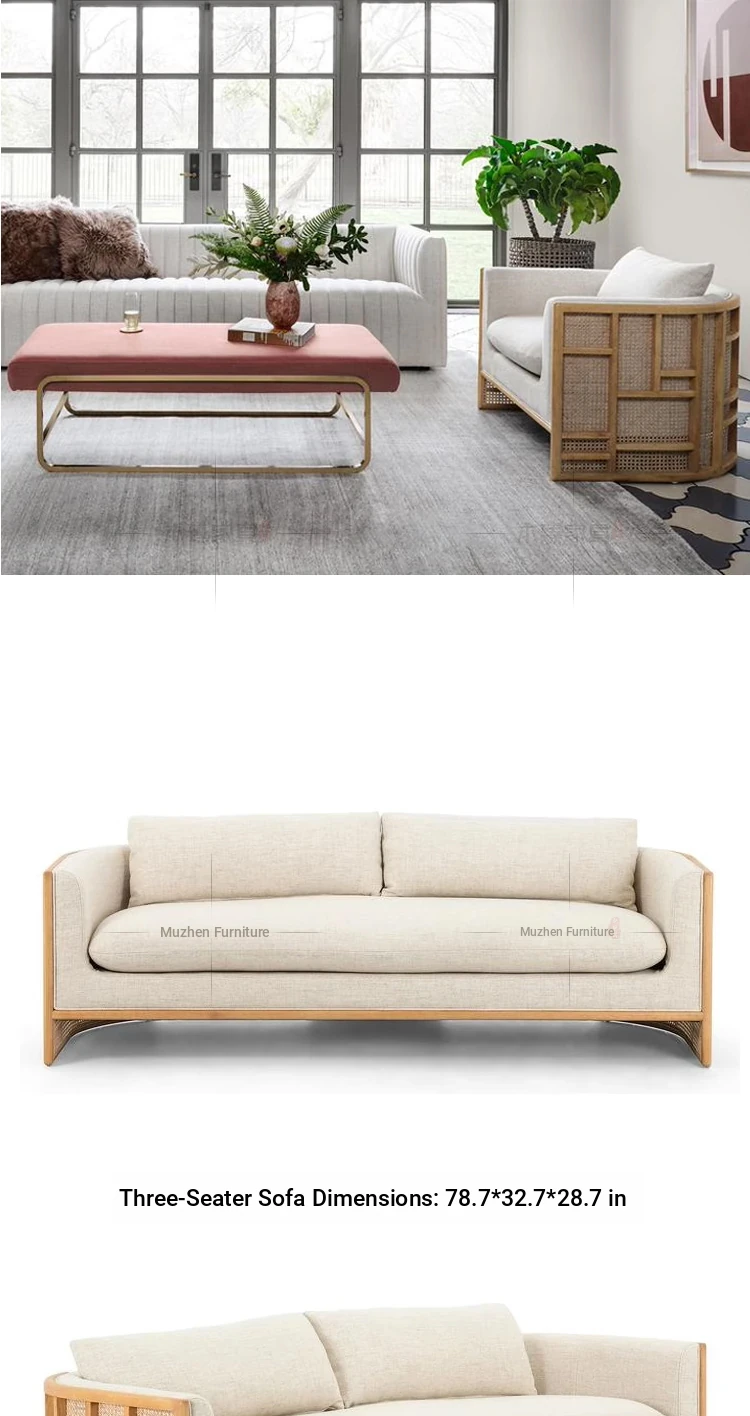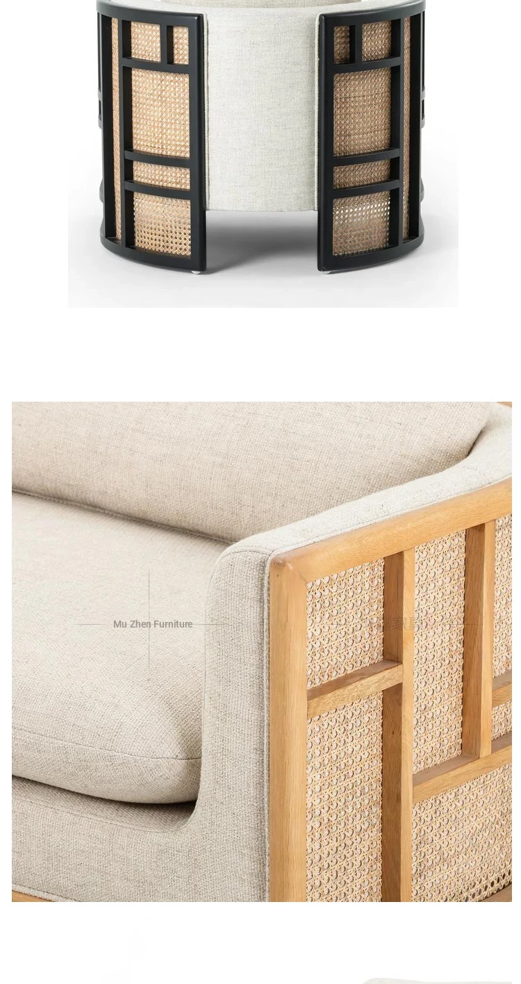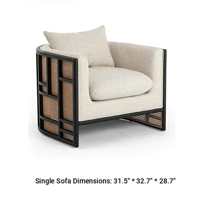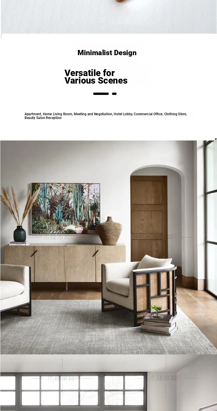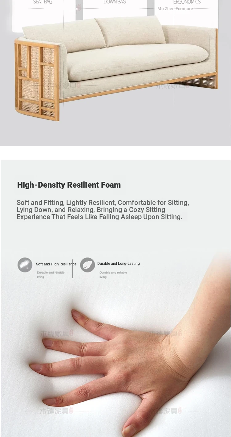 Modern Minimalist New Chinese Solid Wood Sofa Set - Perfect for Showrooms, Hotels, and Guesthouses. Southeast Asian Natural Rattan Furniture in Elegant Wood Finish.