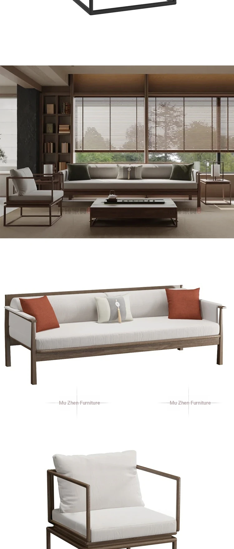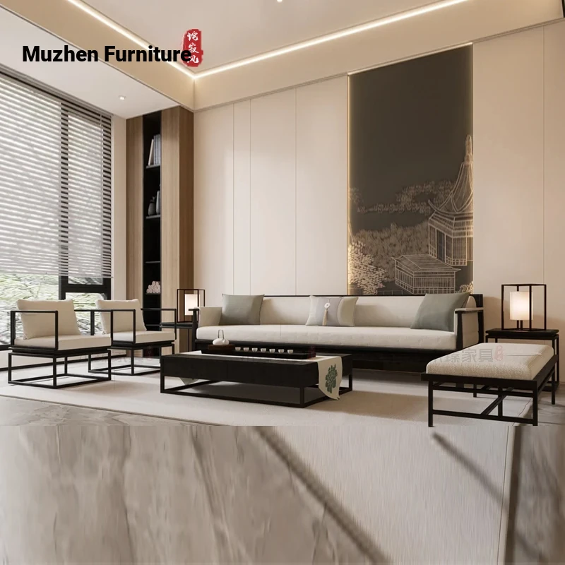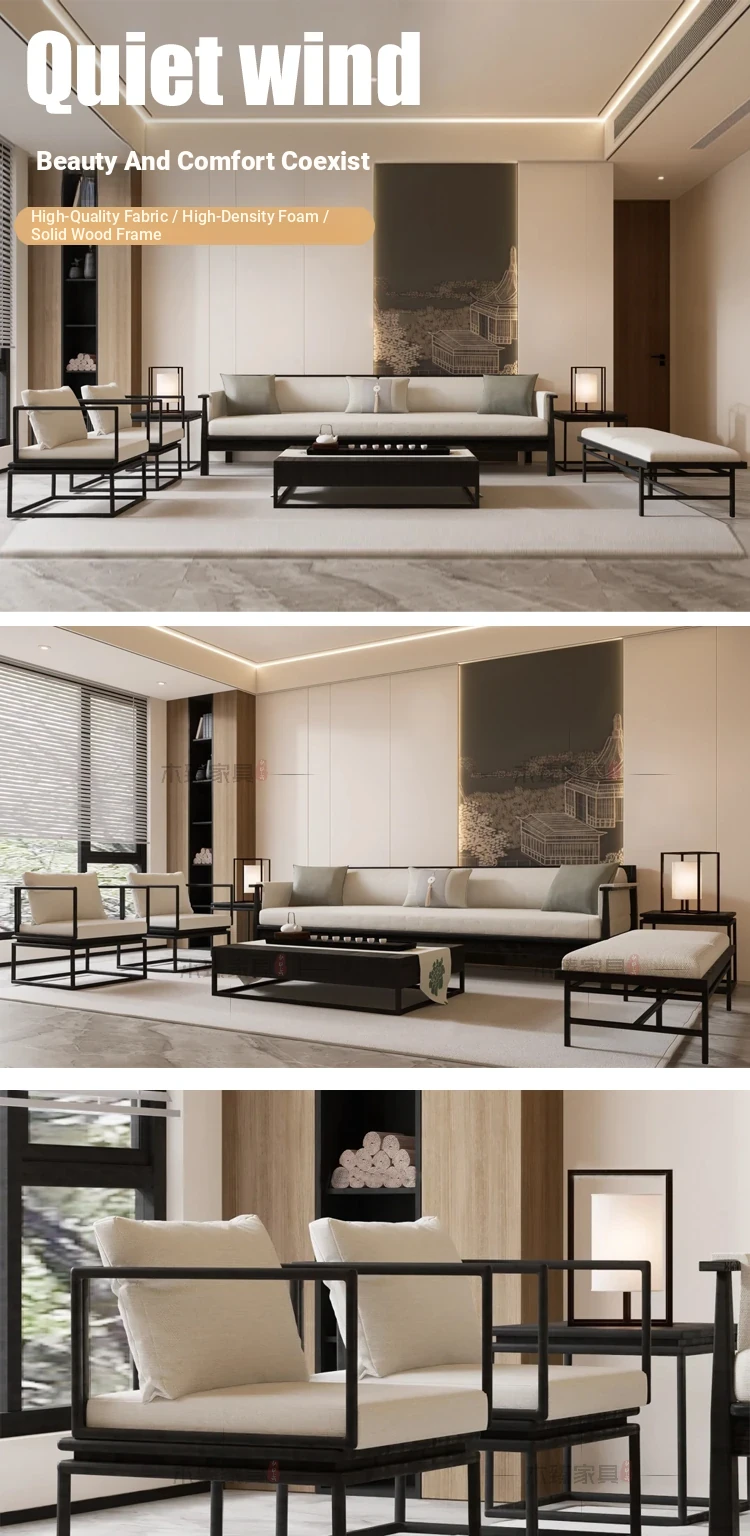 Modern Minimalist New Chinese Style Solid Wood Sofa Set – Zen-Inspired Furniture for Villas, Showrooms, Hotels, and Lounges. Perfect for Guest Reception and Elegant Living Spaces.