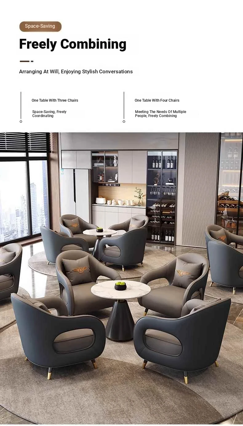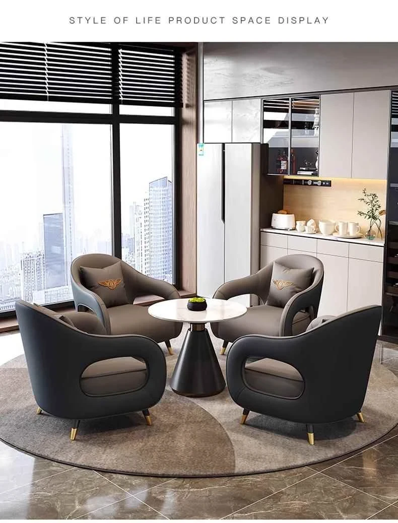 Modern Reception Sofa Set for Real Estate Sales Office – Luxurious Lounge Table and Chair Combo for Hotel Lobbies, Perfect for Negotiations with One Table and Four Chairs