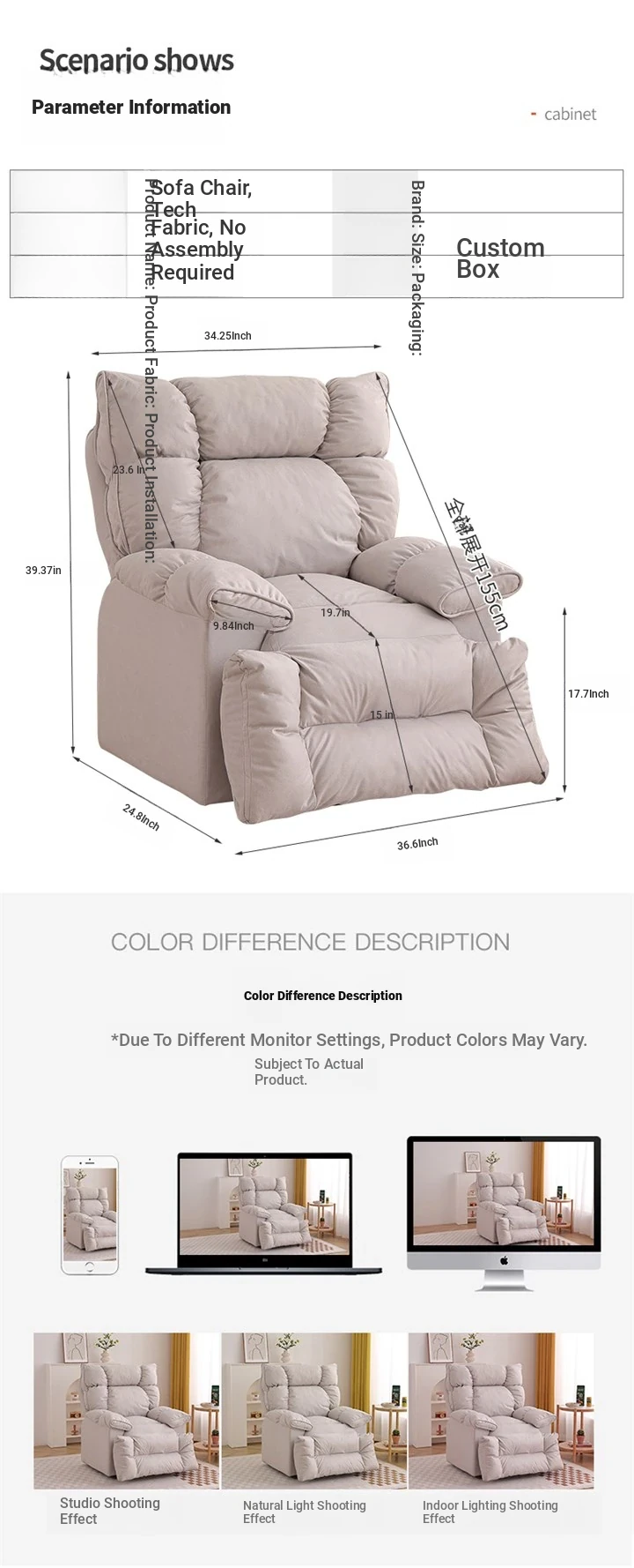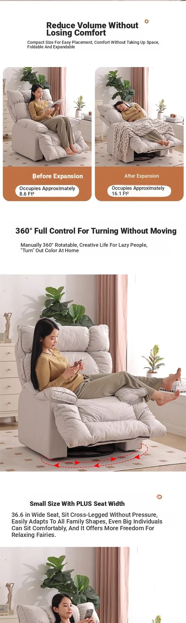 Multifunctional Lazy Sofa: Convertible Lounge Chair for Bedroom & Living Room - Single Recliner with Rotating Design, Perfect for Relaxation and Sleep!