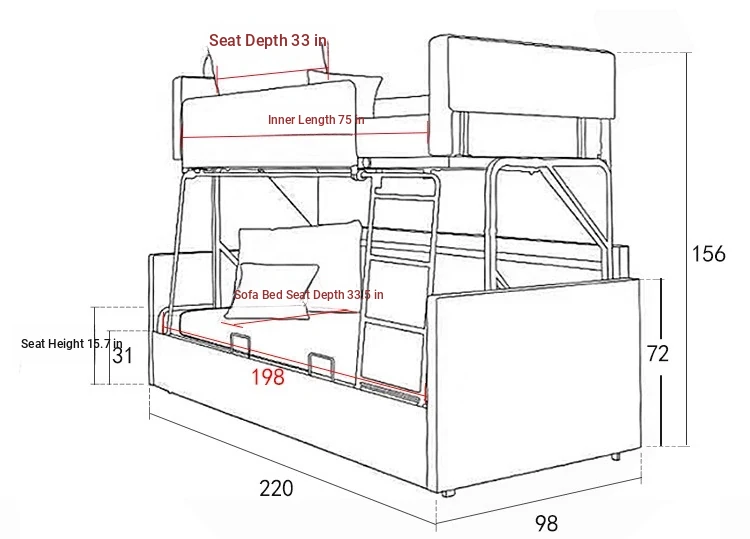 Multifunctional Sofa Bed - Stylish Foldable Bunk Bed for Living Room, Space-Saving Double-Decker Design, Perfect for Guests and Small Spaces.