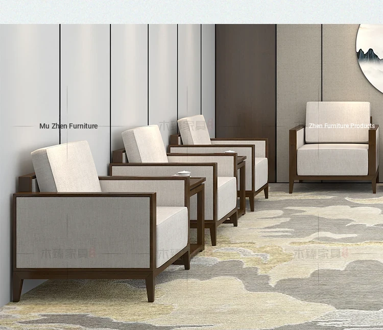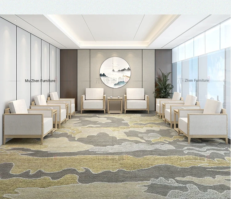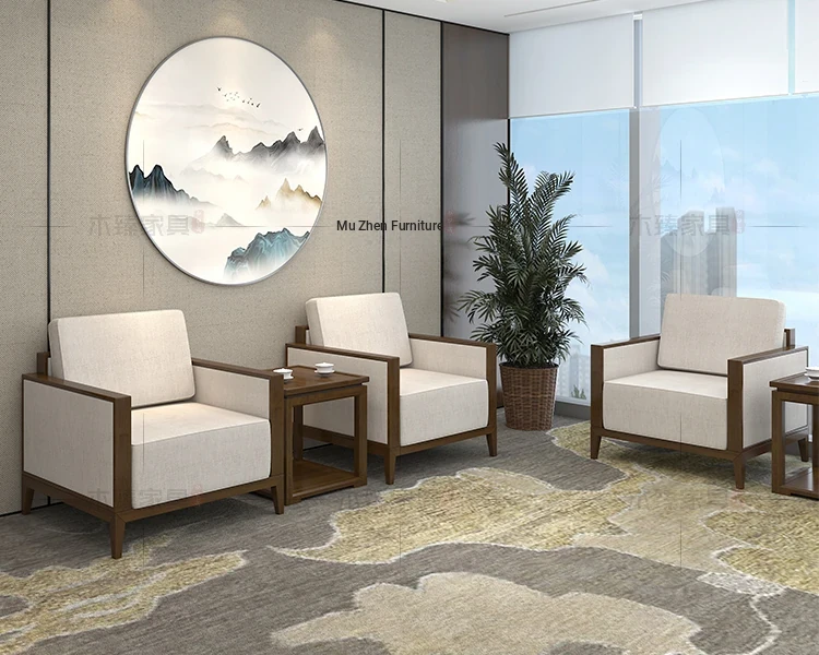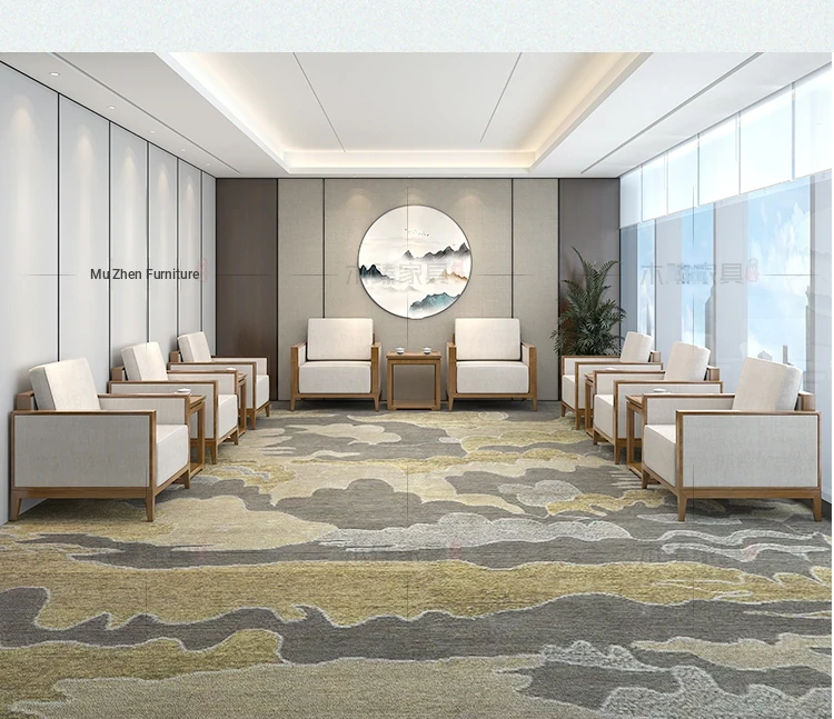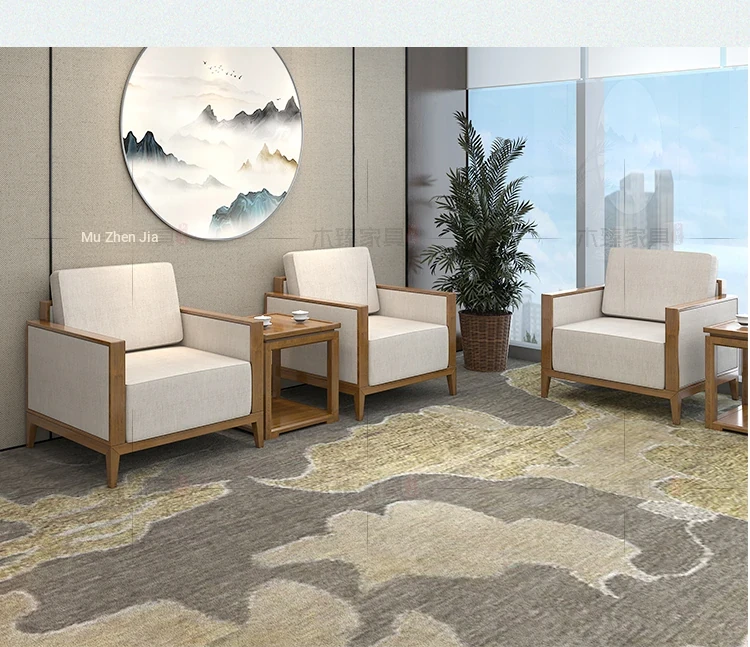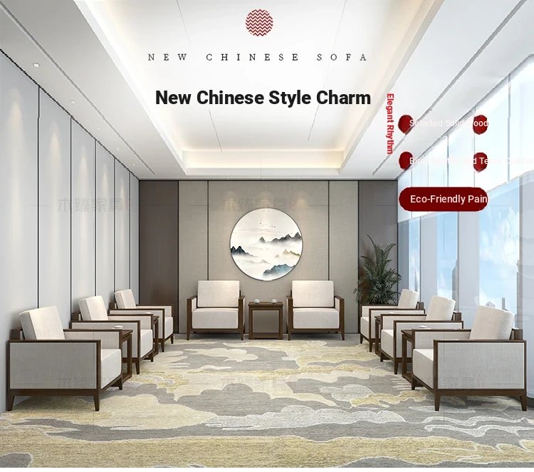 New Chinese Style Conference Room Sofa Set - 3 Pieces for Sales Office, Lobby Reception Area, Business Hotel VIP Room, and Meeting Table and Chairs. Perfect for Elegant Business Settings!