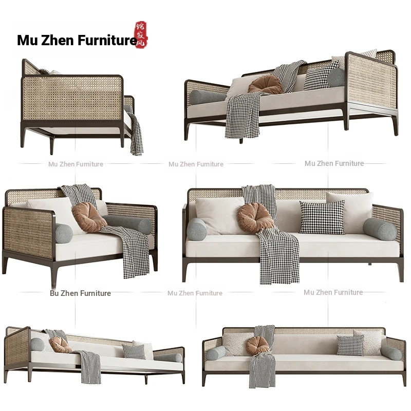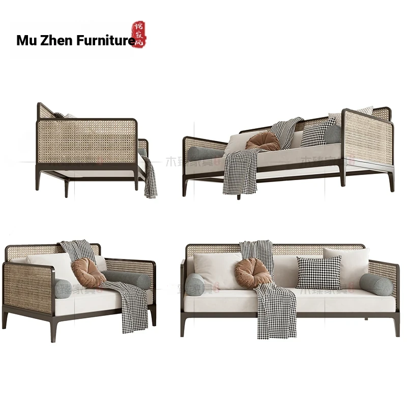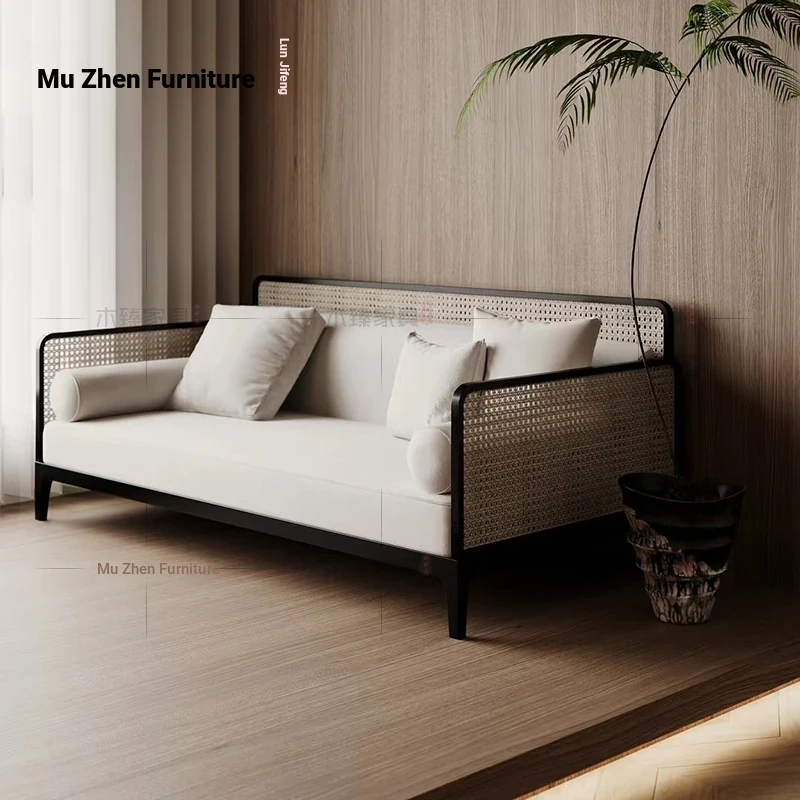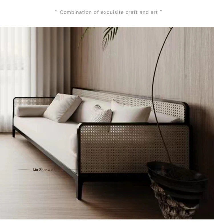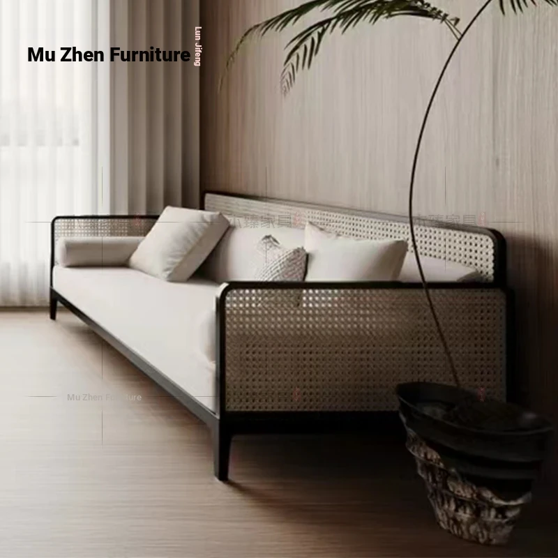 New Chinese Style Solid Wood Rattan Sofa - Nordic Modern Tea House Lounge Seating, Perfect for Hotel Lobbies and Meeting Areas